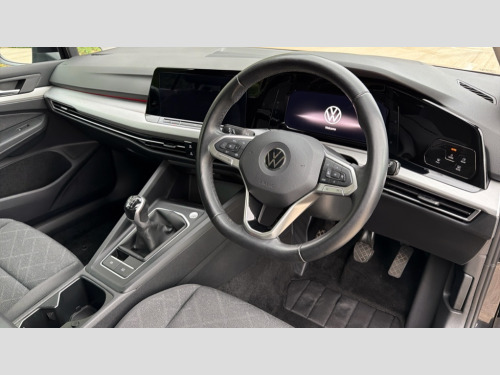 Volkswagen Golf 1.5 TSI 150 Life 5dr Adaptive cruise control (ACC) with speed limiter and front assist (reacting to vehicles pedestrians and cyclists), Car2X communication, Digital cockpit pro - 10.25" high resolution TFT dash display screen with customizable menus and information, Driver alert system, Dynamic road sign display, eCall - Emergency call service for SOS calls to emergency response, Lane assist, Mobile phone interface with wireless inductive charging function, Power assisted speed sensitive steering, Speedo, rev counter, electronic odometer, trip, service interval display, exterior temperature and fuel gauge, Start/Stop function, USB-C ports in the front and rear centre console with increased charging performance, Warning buzzer and light for front seatbelts unfastened, Wireless app connect, Petrol Particulate Filter, XDS electronic differential lock for improved traction and handling, Premium USB cable in choice of either Apple or Android smartphone compatibility, Ambient lighting, exterior illuminated styling elements at the sides, Auto dimming rear view mirror, Automatic headlamp activation with Coming home and Leaving home feature, Automatic headlights, Body colour bumpers, Body colour door handles, Body colour door mirrors with integrated indicators, Body colour rear roof spoiler, Dynamic headlight range control, Electrically heated and adjustable door mirrors with memory feature, Front and rear electric windows, Heat insulating glass windscreen, Heated rear windscreen, High level 3rd brake light, Highway light, LED daytime running lights, LED headlights incorporating turn signals, LED License plate illumination, Rain sensor, Rear fog light on one side and reversing lights on both sides, Rear lights incorporating LED technology, Rear side wing doors, Rear windscreen washer and wiper with interval delay, Welcome light, 10 colour interior ambient lighting, 12V socket in front centre console, 12V socket in luggage compartment, 3 rear head restraints, 3 seat bench in 2nd row, Drivers and front passengers sun visors with vanity mirrors, Front centre armrest with storage compartment, Front cupholders x 2, Front passenger seat, Front passenger seat lumbar adjustment, Front reading lights x 2 incorporating LED technology, Glovebox, Height adjustable passenger seat, Height and reach adjustable steering wheel, Isofix child seat preparation for 2 rear child seats and front passenger seat, Luggage compartment lighting, Maze cloth upholstery, Removable luggage compartment cover, Split folding backrest with centre armrest and unsplit rear seat bench, Storm grey roof lining in recycled material, Woven fabric storage compartments in front and rear doors, 3 point height adj front seatbelts + pretensioners, 3 rear three point seatbelts, ABS, Child locks on rear doors, Driver and front passenger airbag with front passenger airbag deactivation, Drivers and front passengers safety optimised head restraints, Electronic parking brake with auto hold, ESC (Electronic Stability Control), Extended pedestrian protection measures, Front centre airbag, Front disc brakes, Front side airbags with curtain airbags, Rear disc brakes, Two tone horn, Tyre pressure monitoring system, Alarm with interior protection and deactivation via infotainment system, Electronic engine immobiliser, High gloss black centre console, Nature cross brushed decorative inserts, Soul dashboard