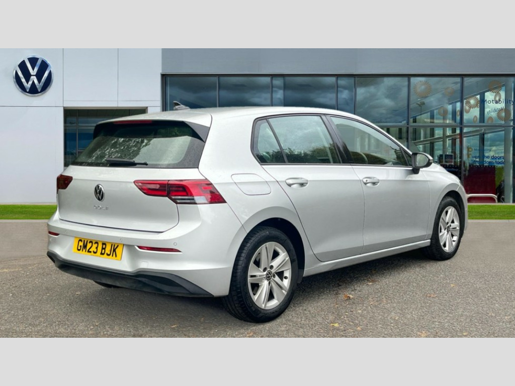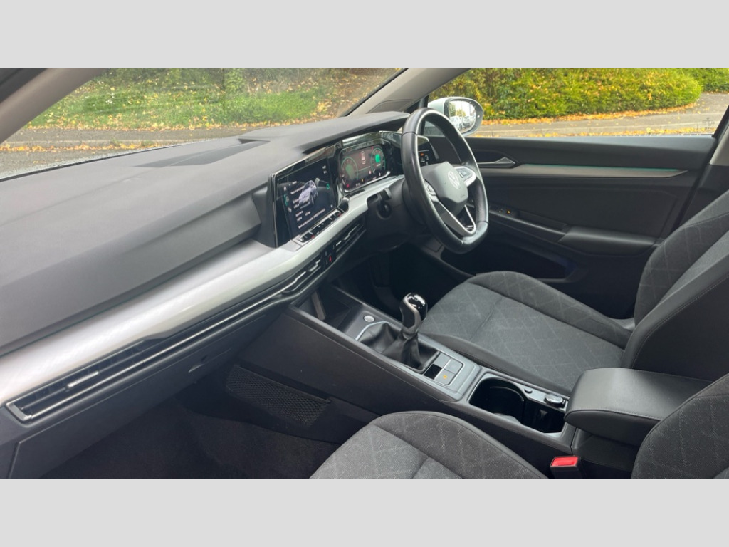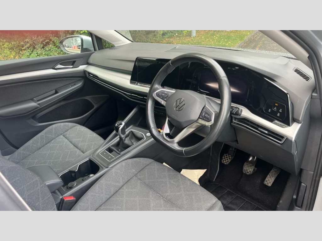 Volkswagen Golf 1.5 TSI 150 Life 5dr Adaptive cruise control (ACC) with speed limiter and front assist (reacting to vehicles pedestrians and cyclists), Car2X communication, Digital cockpit pro - 10.25" high resolution TFT dash display screen with customizable menus and information, Driver alert system, Dynamic road sign display, eCall - Emergency call service for SOS calls to emergency response, Lane assist, Mobile phone interface with wireless inductive charging function, Multifunction camera for distance control, Power assisted speed sensitive steering, Speedo, rev counter, electronic odometer, trip, service interval display, exterior temperature and fuel gauge, Start/Stop function, USB-C ports in the front and rear centre console with increased charging performance, Warning buzzer and light for front seatbelts unfastened, Wireless app connect, Petrol Particulate Filter, XDS electronic differential lock for improved traction and handling, Premium USB cable in choice of either Apple or Android smartphone compatibility, Ambient lighting, exterior illuminated styling elements at the sides, Auto dimming rear view mirror, Automatic headlamp activation with Coming home and Leaving home feature, Automatic headlights, Body colour bumpers, Body colour door handles, Body colour door mirrors with integrated indicators, Body colour rear roof spoiler, Electrically heated and adjustable door mirrors with memory feature, Front and rear electric windows, Heat insulating glass windscreen, Heated rear windscreen, High level 3rd brake light, Highway light, LED License plate illumination, Rain sensor, Rear fog light on one side and reversing lights on both sides, Rear lights incorporating LED technology, Rear side wing doors, Rear windscreen washer and wiper with interval delay, Welcome light, 10 colour interior ambient lighting, 12V socket in front centre console, 12V socket in luggage compartment, 3 rear head restraints, 3 seat bench in 2nd row, Drivers and front passengers sun visors with vanity mirrors, Front centre armrest with storage compartment, Front cupholders x 2, Front passenger seat, Front passenger seat lumbar adjustment, Front reading lights x 2 incorporating LED technology, Glovebox, Height adjustable passenger seat, Height and reach adjustable steering wheel, Isofix child seat preparation for 2 rear child seats and front passenger seat, Luggage compartment lighting, Maze cloth upholstery, Removable luggage compartment cover, Soul black instrument panel, Split folding backrest with centre armrest and unsplit rear seat bench, Storm grey roof lining in recycled material, Woven fabric storage compartments in front and rear doors, 3 point height adj front seatbelts + pretensioners, 3 rear three point seatbelts, ABS, Child locks on rear doors, Driver and front passenger airbag with front passenger airbag deactivation, Drivers and front passengers safety optimised head restraints, Electronic parking brake with auto hold, ESC (Electronic Stability Control), Extended pedestrian protection measures, Front centre airbag, Front disc brakes, Front side airbags with curtain airbags, Rear disc brakes, Two tone horn, Tyre pressure monitoring system, Alarm with interior protection and deactivation via infotainment system, Electronic engine immobiliser, High gloss black centre console, Silver silk decorative inserts in dash and front door panels, Space and weight saver spare wheel