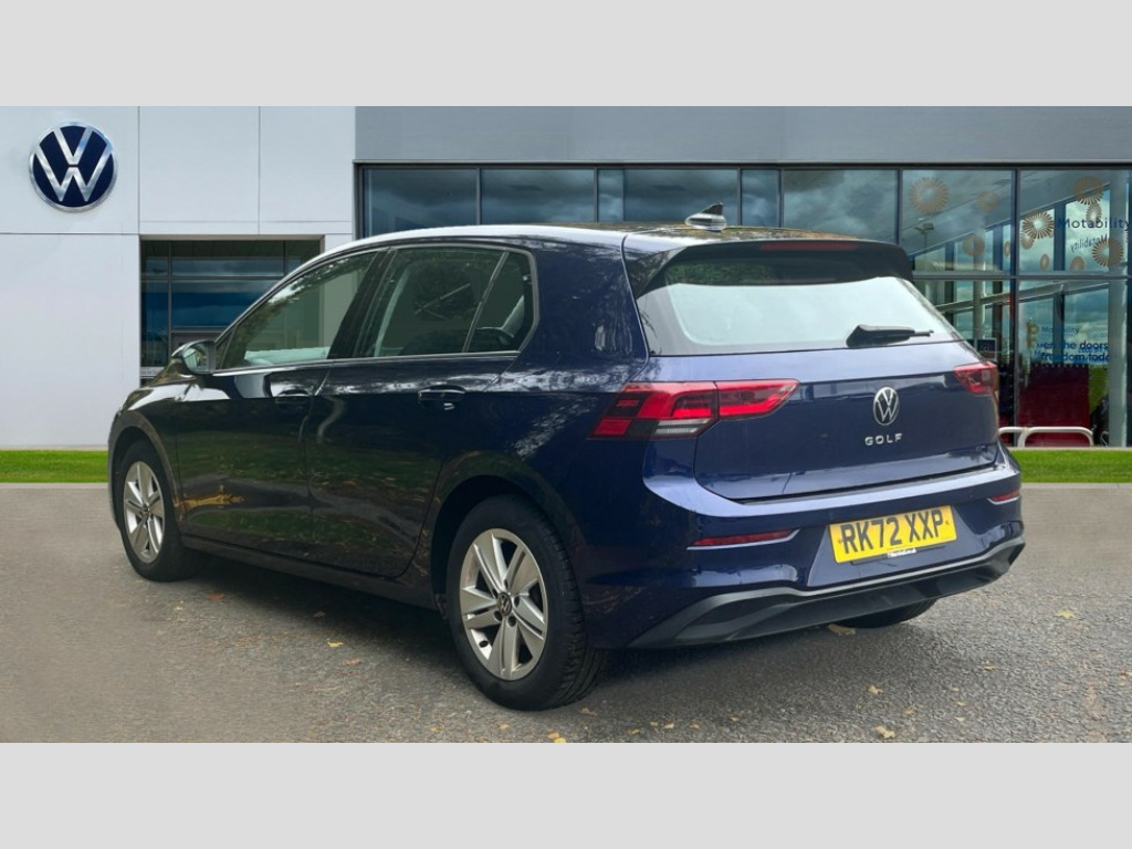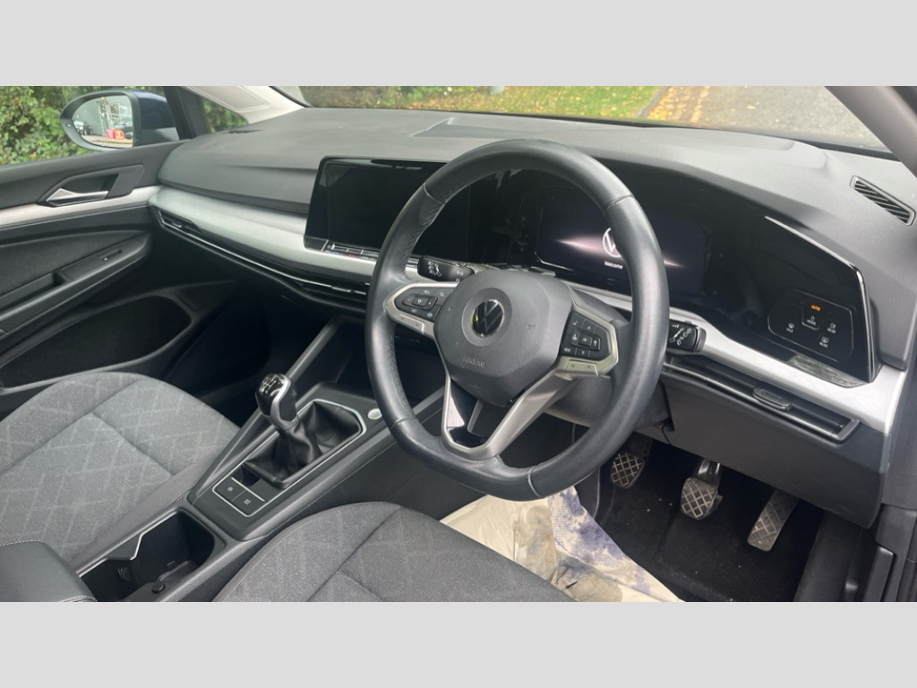 Volkswagen Golf 1.5 TSI 150 Life 5dr Adaptive cruise control (ACC) with speed limiter and front assist (reacting to vehicles pedestrians and cyclists), Car2X communication, Digital cockpit pro - 10.25" high resolution TFT dash display screen with customizable menus and information, Driver alert system, Dynamic road sign display, eCall - Emergency call service for SOS calls to emergency response, Lane assist, Mobile phone interface with wireless inductive charging function, Power assisted speed sensitive steering, Speedo, rev counter, electronic odometer, trip, service interval display, exterior temperature and fuel gauge, Start/Stop function, USB-C ports in the front and rear centre console with increased charging performance, Warning buzzer and light for front seatbelts unfastened, Wireless app connect, Petrol Particulate Filter, XDS electronic differential lock for improved traction and handling, Premium USB cable in choice of either Apple or Android smartphone compatibility, Ambient lighting, exterior illuminated styling elements at the sides, Auto dimming rear view mirror, Automatic headlamp activation with Coming home and Leaving home feature, Automatic headlights, Body colour bumpers, Body colour door handles, Body colour door mirrors with integrated indicators, Body colour rear roof spoiler, Dynamic headlight range control, Electrically heated and adjustable door mirrors with memory feature, Front and rear electric windows, Heat insulating glass windscreen, Heated rear windscreen, High level 3rd brake light, Highway light, LED daytime running lights, LED headlights incorporating turn signals, LED License plate illumination, Rain sensor, Rear fog light on one side and reversing lights on both sides, Rear lights incorporating LED technology, Rear side wing doors, Rear windscreen washer and wiper with interval delay, Welcome light, 10 colour interior ambient lighting, 12V socket in front centre console, 12V socket in luggage compartment, 3 rear head restraints, 3 seat bench in 2nd row, Drivers and front passengers sun visors with vanity mirrors, Front centre armrest with storage compartment, Front cupholders x 2, Front passenger seat, Front passenger seat lumbar adjustment, Front reading lights x 2 incorporating LED technology, Glovebox, Height adjustable passenger seat, Height and reach adjustable steering wheel, Isofix child seat preparation for 2 rear child seats and front passenger seat, Luggage compartment lighting, Maze cloth upholstery, Removable luggage compartment cover, Split folding backrest with centre armrest and unsplit rear seat bench, Storm grey roof lining in recycled material, Woven fabric storage compartments in front and rear doors, 3 point height adj front seatbelts + pretensioners, 3 rear three point seatbelts, ABS, Child locks on rear doors, Driver and front passenger airbag with front passenger airbag deactivation, Drivers and front passengers safety optimised head restraints, Electronic parking brake with auto hold, ESC (Electronic Stability Control), Extended pedestrian protection measures, Front centre airbag, Front disc brakes, Front side airbags with curtain airbags, Rear disc brakes, Two tone horn, Tyre pressure monitoring system, Alarm with interior protection and deactivation via infotainment system, Electronic engine immobiliser, High gloss black centre console, Nature cross brushed decorative inserts, Soul dashboard