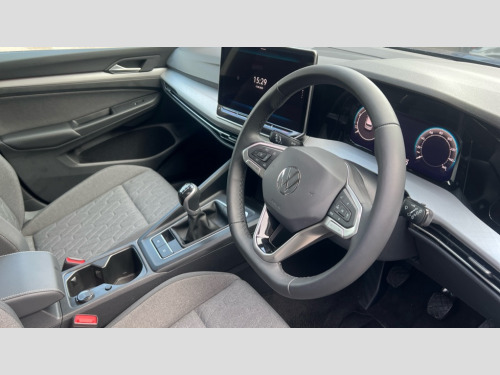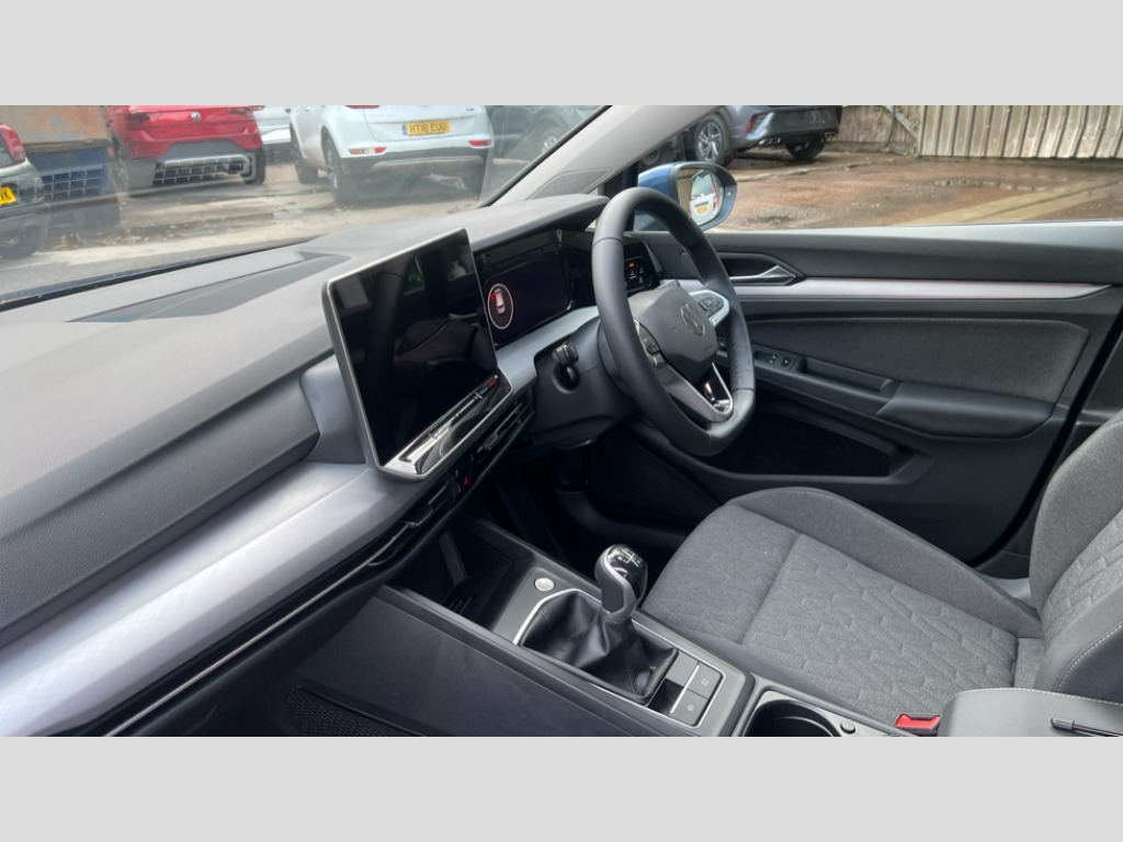 Volkswagen Golf 1.5 TSI 150 Match 5dr Activated carbon canister, Adaptive cruise control (ACC), Advanced driver attention and drowsiness monitor, Dynamic road sign display, E-Sim card for online connectivity, eCall emergency call system, Multi-color Digital cockpit pro, selection of different info profile possible, Multifunction front facing camera for distance control, Navigation system, Oncoming vehicle braking when turning including swerve support, Preparation for light assist system, Speed limiter, Speedo, rev counter, electronic odometer, trip, service interval display, exterior temperature and fuel gauge, Voice enhancer and voice control, Warning signal and warning light for front and rear seatbelts not fastened, We connect plus preparation, We connect preparation, Wireless app connect, Petrol Particulate Filter, Start-stop system with battery regeneration (recuperation - energy recovery during braking), XDS electronic differential lock for improved traction and handling, 2 USB C ports in front, 2 USB charging sockets on the centre console in the rear charging capacity upto 45W, Comfort telephony + wireless charging, without wireless aerial connection, Digital radio reception (DAB), Diversity antenna for FM reception, Gaming platform via car app, Infotainment system with 12.9" display, Mobile phone interface with inductive charging feature, 3rd brake light, Auto dimming rear view mirror, Auto headlights, Automatic headlamp activation with Coming home and Leaving home feature, Body colour door handles, Body colour door mirrors, Exterior ambient lighting with illuminated door handles, Exterior mirrors convex on the left and aspherical on the right, Front and rear electric windows, Heat insulating windshield made of laminated glass, LED daytime running lights, Rain sensor, Rear exhaust tailpipe, Rear fog light on one side and reversing lights on both sides, Rear side wing doors, Rear tinted glass 65% light absorbing from B pillar backwards, Rear windscreen washer and wiper with interval delay, Remote electrically foldable door mirrors, puddle lights and reverse activated passenger's door mirror, Standard bumpers, Welcome light with surround lighting, 12V socket in front centre console, 12V socket in luggage compartment, 3 rear head restraints, 3 seat bench in 2nd row, Chrome plated radiator grille inserts, air vent surrounds and light switch surrounds, Front centre armrest, Front head restraints, ISOFIX anchors for child seats on outer rear bench seats and on front passanger seat compatible for i-Size, Leather gearshift handle, Luggage compartment lighting, Rear cupholder and loadthough, Single front passenger seat, Soul black instrument panel, Split folding backrest with centre armrest and unsplit rear seat bench, Standard pedal cluster, Storm grey roof lining, Sun visors with illuminated vanity mirrors, Parking and comfort pack - Golf Estate/Hatchback, 3 point height adj front seatbelts + pretensioners, 3 rear three point seatbelts, ABS, Autonomous emergency braking front assist with pedestrian and cyclist monitoring, Child locks on rear doors, Driver and front passenger airbag with front passenger airbag deactivation, Electronic parking brake with auto hold, ESC (Electronic Stability Control), Extended pedestrian protection measures, Rear disc brakes, Two tone horn, Tyre pressure loss indicator, Volkswagen roadside assistance, Alarm with interior protection, Anti theft wheel bolts, Keyless start with SAFE lock, Preparation for alcohol interlock, Nature cross brushed decorative inserts for dashboard and front door panels