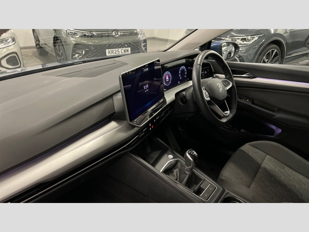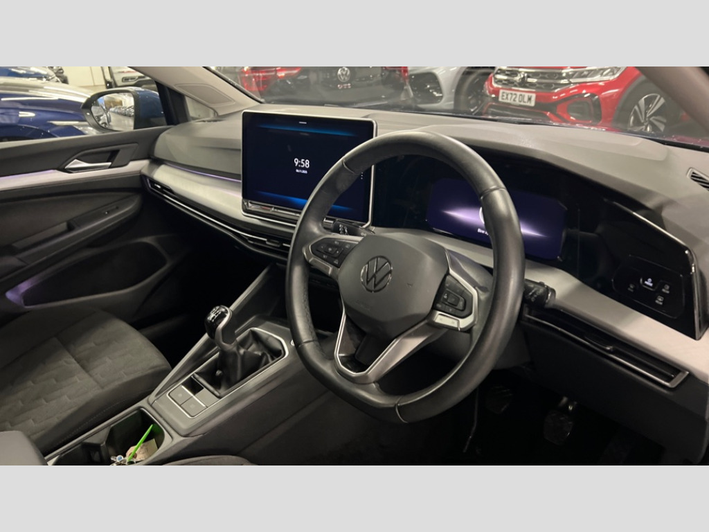 Volkswagen Golf 1.5 TSI 150 Match 5dr Activated carbon canister, Adaptive cruise control (ACC) with speed limiter and front assist (reacting to vehicles pedestrians and cyclists), Advanced driver attention and drowsiness monitor, Driver alert system, Dynamic road sign display, E-Sim card for online connectivity, eCall emergency call system, Multi-color Digital cockpit pro, selection of different info profile possible, Multifunction camera for distance control, Navigation system, Oncoming vehicle braking when turning including swerve support, Power assisted speed sensitive steering, Preparation for light assist system, Speedo, rev counter, electronic odometer, trip, service interval display, exterior temperature and fuel gauge, Voice Control with voice enhancement, Warning signal and warning light for front and rear seatbelts not fastened, We connect plus preparation, We connect preparation, Wireless app connect, Petrol Particulate Filter, Start-stop system with battery regeneration (recuperation - energy recovery during braking), XDS electronic differential lock for improved traction and handling, 2 USB C ports in front, 2 USB charging sockets on the centre console in the rear charging capacity upto 45W, Comfort telephony + wireless charging, without wireless aerial connection, Digital radio reception (DAB), Diversity antenna for FM reception, Infotainment system with 12.9" display, 3rd brake light, Auto headlights, Automatic headlamp activation with Coming home and Leaving home feature, Body colour door handles, Body colour door mirrors, Chrome plated radiator grille inserts and light switch surrounds, Dynamic headlight range control, Exterior mirrors convex on the left and aspherical on the right, Front and rear electric windows, Heat insulating windshield made of laminated glass, LED daytime running lights, LED rear combination lights, Rear exhaust tailpipe, Rear fog light on one side and reversing lights on both sides, Rear side wing doors, Rear tinted glass 65% light absorbing from B pillar backwards, Rear windscreen washer and wiper with interval delay, Remote electrically foldable door mirrors, puddle lights and reverse activated passenger's door mirror, Standard bumpers, Welcome light with surround lighting, 12V socket in front centre console, 12V socket in luggage compartment, 3 rear head restraints, 3 seat bench in 2nd row, Front centre armrest, Front head restraints, Front passenger seat, ISOFIX anchors for child seats on outer rear bench seats and on front passanger seat compatible for i-Size, Leather gearshift handle, Luggage compartment lighting, Rear cupholder and loadthough, Soul black instrument panel, Split folding backrest with centre armrest and unsplit rear seat bench, Standard pedal cluster, Storm grey roof lining, Sun visors with illuminated vanity mirrors, 3 point height adj front seatbelts + pretensioners, 3 rear three point seatbelts, ABS, Autonomous emergency braking front assist with pedestrian and cyclist monitoring, Child locks on rear doors, Driver and front passenger airbag with front passenger airbag deactivation, Electronic parking brake with auto hold, ESC (Electronic Stability Control), Extended pedestrian protection measures, Rear disc brakes, Two tone horn, Tyre pressure monitoring system, Volkswagen roadside assistance, Anti theft wheel bolts, Preparation for alcohol interlock, Nature cross brushed decorative inserts for dashboard and front door panels