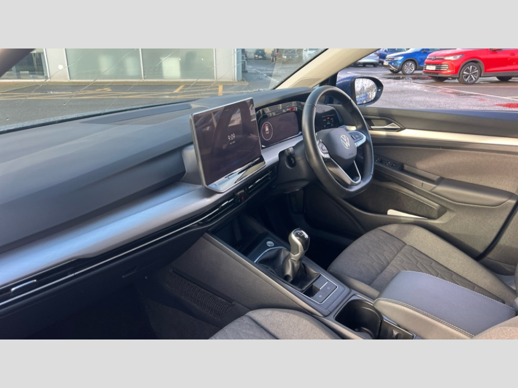 Volkswagen Golf 1.5 TSI 150 Match 5dr Activated carbon canister, Adaptive cruise control (ACC) with speed limiter and front assist (reacting to vehicles pedestrians and cyclists), Advanced driver attention and drowsiness monitor, Driver alert system, Dynamic road sign display, E-Sim card for online connectivity, eCall emergency call system, Multi-color Digital cockpit pro, selection of different info profile possible, Multifunction camera for distance control, Navigation system, Oncoming vehicle braking when turning including swerve support, Power assisted speed sensitive steering, Preparation for light assist system, Speedo, rev counter, electronic odometer, trip, service interval display, exterior temperature and fuel gauge, Voice Control with voice enhancement, Warning signal and warning light for front and rear seatbelts not fastened, We connect plus preparation, We connect preparation, Wireless app connect, Petrol Particulate Filter, Start-stop system with battery regeneration (recuperation - energy recovery during braking), XDS electronic differential lock for improved traction and handling, 2 USB C ports in front, 2 USB charging sockets on the centre console in the rear charging capacity upto 45W, Comfort telephony + wireless charging, without wireless aerial connection, Digital radio reception (DAB), Diversity antenna for FM reception, Infotainment system with 12.9" display, 3rd brake light, Auto headlights, Automatic headlamp activation with Coming home and Leaving home feature, Body colour door handles, Body colour door mirrors, Chrome plated radiator grille inserts and light switch surrounds, Dynamic headlight range control, Exterior mirrors convex on the left and aspherical on the right, Front and rear electric windows, Heat insulating windshield made of laminated glass, LED daytime running lights, LED rear combination lights, Rear exhaust tailpipe, Rear fog light on one side and reversing lights on both sides, Rear side wing doors, Rear tinted glass 65% light absorbing from B pillar backwards, Rear windscreen washer and wiper with interval delay, Remote electrically foldable door mirrors, puddle lights and reverse activated passenger's door mirror, Standard bumpers, Welcome light with surround lighting, 12V socket in front centre console, 12V socket in luggage compartment, 3 rear head restraints, 3 seat bench in 2nd row, Front centre armrest, Front head restraints, Front passenger seat, ISOFIX anchors for child seats on outer rear bench seats and on front passanger seat compatible for i-Size, Leather gearshift handle, Luggage compartment lighting, Rear cupholder and loadthough, Soul black instrument panel, Split folding backrest with centre armrest and unsplit rear seat bench, Standard pedal cluster, Storm grey roof lining, Sun visors with illuminated vanity mirrors, 3 point height adj front seatbelts + pretensioners, 3 rear three point seatbelts, ABS, Autonomous emergency braking front assist with pedestrian and cyclist monitoring, Child locks on rear doors, Driver and front passenger airbag with front passenger airbag deactivation, Electronic parking brake with auto hold, ESC (Electronic Stability Control), Extended pedestrian protection measures, Rear disc brakes, Two tone horn, Tyre pressure monitoring system, Volkswagen roadside assistance, Anti theft wheel bolts, Preparation for alcohol interlock, Nature cross brushed decorative inserts for dashboard and front door panels