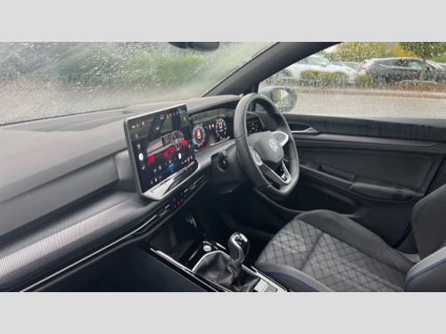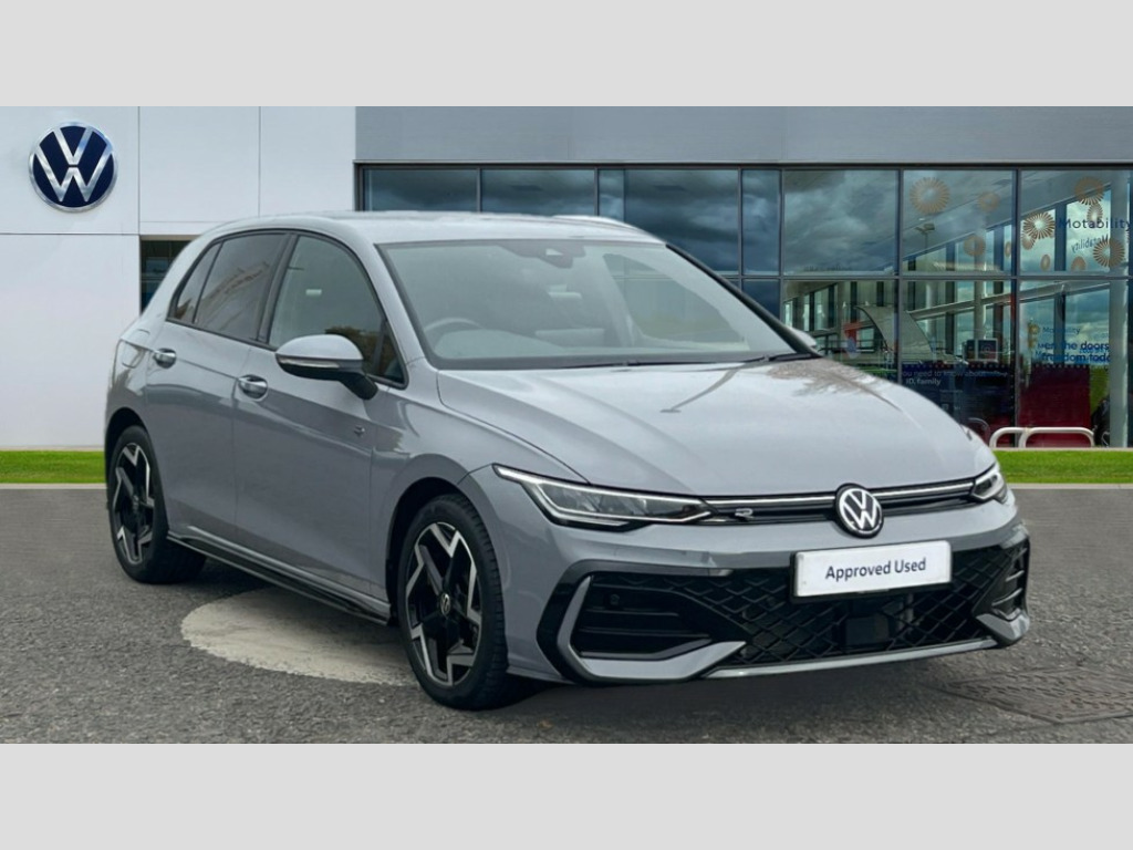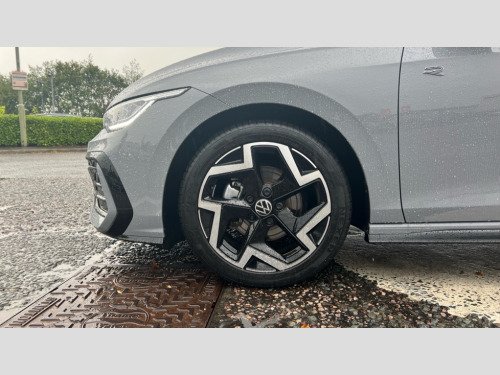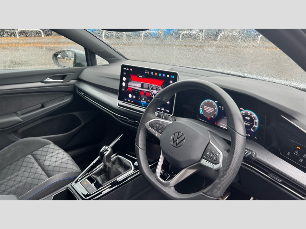 Volkswagen Golf 1.5 TSI 150 R-Line 5dr Activated carbon canister, Adaptive cruise control (ACC), Advanced driver attention and drowsiness monitor, Dynamic road sign display, Dynamic steering, E-Sim card for online connectivity, eCall emergency call system, Multi-color Digital cockpit pro, selection of different info profile possible, Multifunction front facing camera for distance control, Navigation system, Oncoming vehicle braking when turning including swerve support, Preparation for light assist system, Speed limiter, Speedo, rev counter, electronic odometer, trip, service interval display, exterior temperature and fuel gauge, Traffic jam assist, Voice enhancer and voice control, Warning signal and warning light for front and rear seatbelts not fastened, We connect plus preparation, We connect preparation, Wireless app connect, Petrol Particulate Filter, Start-stop system with battery regeneration (recuperation - energy recovery during braking), XDS electronic differential lock for improved traction and handling, 2 USB C ports in front, 2 USB charging sockets on the centre console in the rear charging capacity upto 45W, Comfort telephony + wireless charging, without wireless aerial connection, Digital radio reception (DAB), Diversity antenna for FM reception, Gaming platform via car app, Infotainment system with 12.9" display, Mobile phone interface with inductive charging feature, 3rd brake light, Auto headlights, Automatic headlamp activation with Coming home and Leaving home feature, Body colored bumpers in R-Line style, Body colour door handles, Exterior ambient lighting with illuminated door handles, Exterior mirrors convex on the left and aspherical on the right, Front and rear electric windows, Heat insulating windshield made of laminated glass, LED daytime running lights, Rear exhaust tailpipe, Rear fog light on one side and reversing lights on both sides, Rear side wing doors, Rear windscreen washer and wiper with interval delay, Remote electrically foldable door mirrors, puddle lights and reverse activated passenger's door mirror, Welcome light with surround lighting, 12V socket in front centre console, 12V socket in luggage compartment, 3 rear head restraints, 3 seat bench in 2nd row, Ambient lighting with 30 colour including LED light unit in front footwell with selectable light colour, Brushed stainless steel pedals, Carpet mats, front and rear, Chrome plated radiator grille inserts, air vent surrounds and light switch surrounds, Front centre armrest, Integrated front head restraints, ISOFIX anchors for child seats on outer rear bench seats and on front passanger seat compatible for i-Size, Leather gearshift handle, Luggage compartment lighting, Premium sports seats in front, Rear cupholder and loadthough, Single front passenger seat, Soul black instrument panel, Split folding backrest with centre armrest and unsplit rear seat bench, Storm grey roof lining, Sun visors with illuminated vanity mirrors, 3 point height adj front seatbelts + pretensioners, 3 rear three point seatbelts, ABS, Autonomous emergency braking front assist with pedestrian and cyclist monitoring, Child locks on rear doors, Driver and front passenger airbag with front passenger airbag deactivation, Electronic parking brake with auto hold, ESC (Electronic Stability Control), Extended pedestrian protection measures, Rear disc brakes, Two tone horn, Tyre pressure loss indicator, Volkswagen roadside assistance, Anti theft wheel bolts, Preparation for alcohol interlock, Decorative inserts carbon grey for dashboard and front door trim panels
