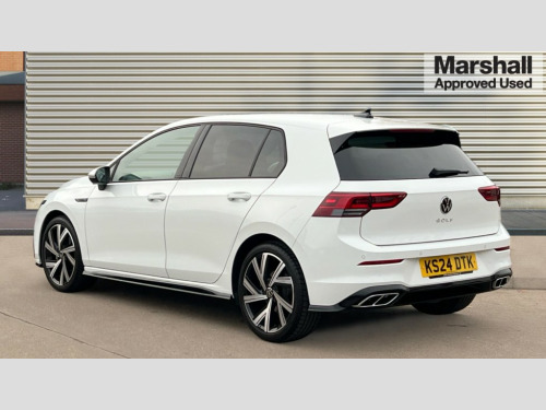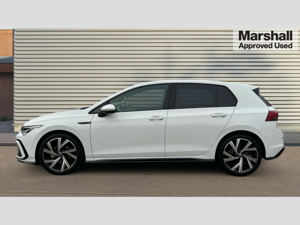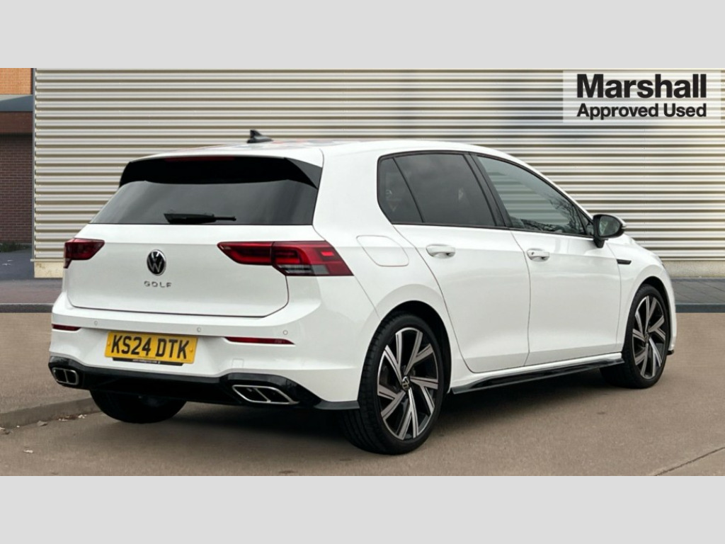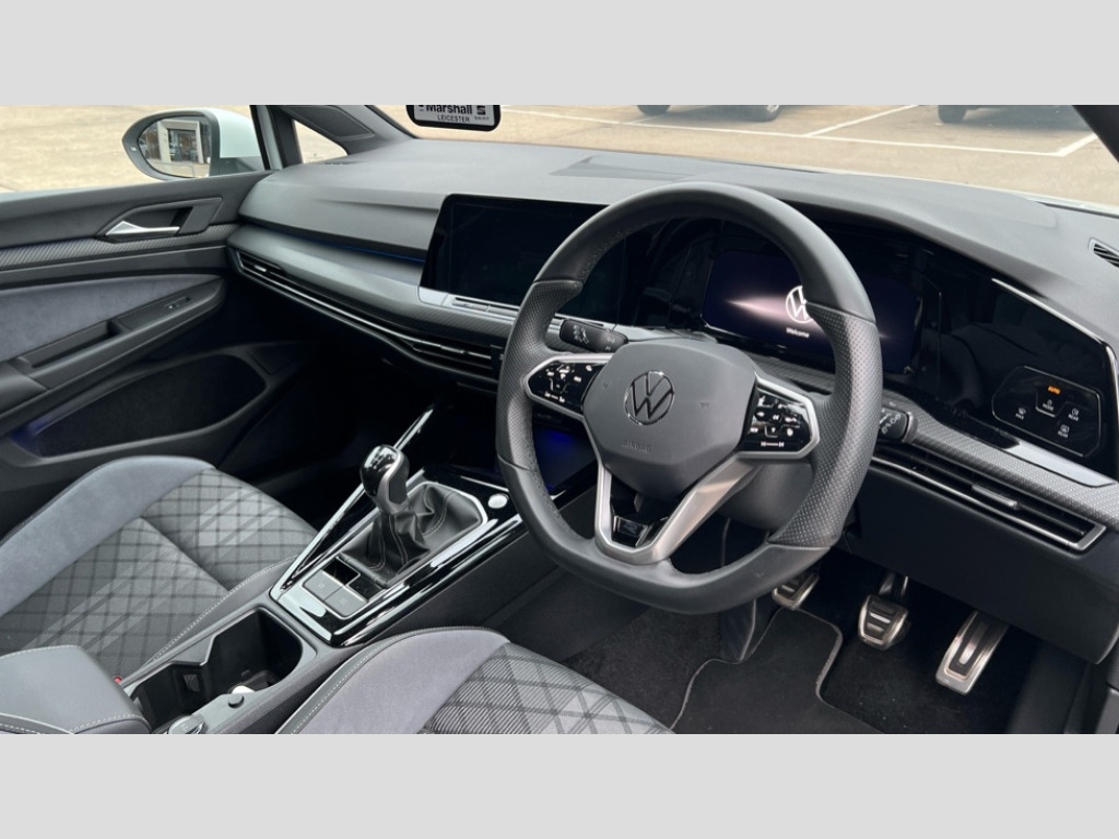 Volkswagen Golf 1.5 TSI 150 R-Line 5dr Adaptive cruise control (ACC) with speed limiter and front assist (reacting to vehicles pedestrians and cyclists), Car2X communication, Digital cockpit pro - 10.25" high resolution TFT dash display screen with customizable menus and information, Driver alert system, Dynamic road sign display, eCall - Emergency call service for SOS calls to emergency response, Lane assist, Mobile phone interface with wireless inductive charging function, Multifunction camera for distance control, PAS, Speedo, rev counter, electronic odometer, trip, service interval display, exterior temperature and fuel gauge, Start/Stop function, USB-C ports in the front and rear centre console with increased charging performance, Warning buzzer and light for front seatbelts unfastened, Wireless app connect, Petrol Particulate Filter, XDS electronic differential lock for improved traction and handling, Premium USB cable in choice of either Apple or Android smartphone compatibility, Ambient lighting, exterior illuminated styling elements at the sides, Auto dimming rear view mirror, Automatic headlamp activation with Coming home and Leaving home feature, Automatic headlights, Body colour door handles, Body colour door mirrors with integrated indicators, Body colour rear roof spoiler, Electrically heated and adjustable door mirrors with memory feature, Front and rear electric windows, Heat insulating glass windscreen, Heated rear windscreen, High level 3rd brake light, Highway light, LED License plate illumination, R Line body coloured bumpers, Rain sensor, Rear fog light on one side and reversing lights on both sides, Rear lights incorporating LED technology, Rear side wing doors, Rear tinted glass 65% light absorbing from B pillar backwards, Rear windscreen washer and wiper with interval delay, Welcome light, 12V socket in front centre console, 12V socket in luggage compartment, 3 rear head restraints, 3 seat bench in 2nd row, Ambient lighting - Customisable 30 colour ambient lighting, Black roof lining, Brushed stainless steel pedals, Chrome plated surround to electric mirror button, window switch and air vent surrounds, Drivers and front passengers sun visors with vanity mirrors, Front + rear carpet mats, Front centre armrest with storage compartment, Front cupholders x 2, Front passenger seat, Front reading lights x 2 incorporating LED technology, Front seat lumbar support adjuster, Front sports seats, Glovebox, Height adjustable front seats, Height and reach adjustable steering wheel, Isofix child seat preparation for 2 rear child seats and front passenger seat, Luggage compartment lighting, R Line door and side trim panel, R Line front seats integrated head restraints, R-Line leather wrapped multi function sports heated steering wheel, Removable luggage compartment cover, Sardegna cloth upholstery with front and outer rear seats Art Velour inner sides of bolsters, Split folding backrest with centre armrest and unsplit rear seat bench, Titanium black instrument panel, Woven fabric storage compartments in front and rear doors, 3 point height adj front seatbelts + pretensioners, 3 rear three point seatbelts, ABS, Child locks on rear doors, Driver and front passenger airbag with front passenger airbag deactivation, Drivers and front passengers safety optimised head restraints, Electronic parking brake with auto hold, ESC (Electronic Stability Control), Extended pedestrian protection measures, Front and rear passengers curtain airbag system including front side airbags, Front centre airbag, Front disc brakes, Front side airbags with curtain airbags, Rear disc brakes, Two tone horn, Tyre pressure monitoring system, Alarm with interior protection and deactivation via infotainment system, Electronic engine immobiliser, Carbon grey decorative inserts in dash and front door trim panels, High gloss black centre console, Space and weight saver spare wheel