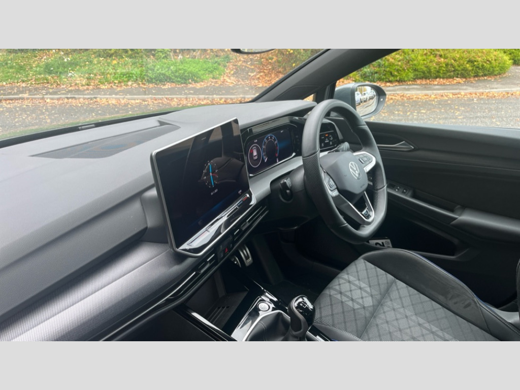 Volkswagen Golf 1.5 TSI 150 R-Line 5dr Activated carbon canister, Adaptive cruise control (ACC), Advanced driver attention and drowsiness monitor, Dynamic road sign display, Dynamic steering, E-Sim card for online connectivity, eCall emergency call system, Multi-color Digital cockpit pro, selection of different info profile possible, Multifunction front facing camera for distance control, Navigation system, Oncoming vehicle braking when turning including swerve support, Preparation for light assist system, Speed limiter, Speedo, rev counter, electronic odometer, trip, service interval display, exterior temperature and fuel gauge, Traffic jam assist, Voice enhancer and voice control, Warning signal and warning light for front and rear seatbelts not fastened, We connect plus preparation, We connect preparation, Wireless app connect, Petrol Particulate Filter, Start-stop system with battery regeneration (recuperation - energy recovery during braking), XDS electronic differential lock for improved traction and handling, 2 USB C ports in front, 2 USB charging sockets on the centre console in the rear charging capacity upto 45W, Comfort telephony + wireless charging, without wireless aerial connection, Digital radio reception (DAB), Diversity antenna for FM reception, Gaming platform via car app, Infotainment system with 12.9" display, Mobile phone interface with inductive charging feature, 3rd brake light, Auto headlights, Automatic headlamp activation with Coming home and Leaving home feature, Body colored bumpers in R-Line style, Body colour door handles, Exterior ambient lighting with illuminated door handles, Exterior mirrors convex on the left and aspherical on the right, Front and rear electric windows, Heat insulating windshield made of laminated glass, LED daytime running lights, Rear exhaust tailpipe, Rear fog light on one side and reversing lights on both sides, Rear side wing doors, Rear windscreen washer and wiper with interval delay, Remote electrically foldable door mirrors, puddle lights and reverse activated passenger's door mirror, Welcome light with surround lighting, 12V socket in front centre console, 12V socket in luggage compartment, 3 rear head restraints, 3 seat bench in 2nd row, Ambient lighting with 30 colour including LED light unit in front footwell with selectable light colour, Brushed stainless steel pedals, Carpet mats, front and rear, Chrome plated radiator grille inserts, air vent surrounds and light switch surrounds, Front centre armrest, Integrated front head restraints, ISOFIX anchors for child seats on outer rear bench seats and on front passanger seat compatible for i-Size, Leather gearshift handle, Luggage compartment lighting, Premium sports seats in front, Rear cupholder and loadthough, Single front passenger seat, Soul black instrument panel, Split folding backrest with centre armrest and unsplit rear seat bench, Storm grey roof lining, Sun visors with illuminated vanity mirrors, 3 point height adj front seatbelts + pretensioners, 3 rear three point seatbelts, ABS, Autonomous emergency braking front assist with pedestrian and cyclist monitoring, Child locks on rear doors, Driver and front passenger airbag with front passenger airbag deactivation, Electronic parking brake with auto hold, ESC (Electronic Stability Control), Extended pedestrian protection measures, Rear disc brakes, Two tone horn, Tyre pressure loss indicator, Volkswagen roadside assistance, Anti theft wheel bolts, Preparation for alcohol interlock, Decorative inserts carbon grey for dashboard and front door trim panels