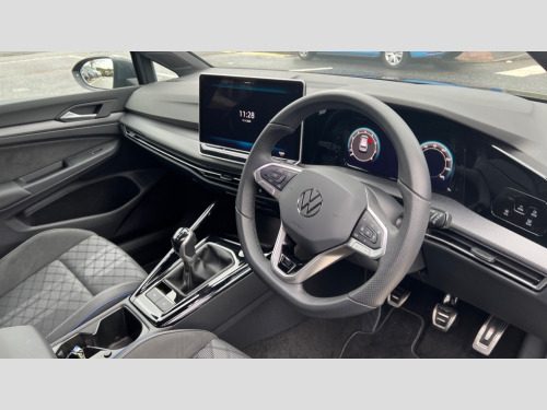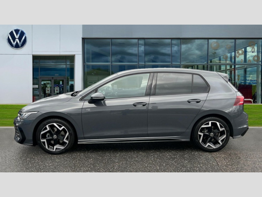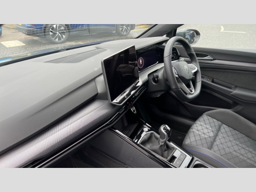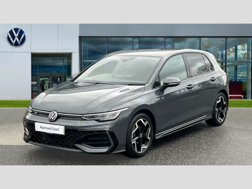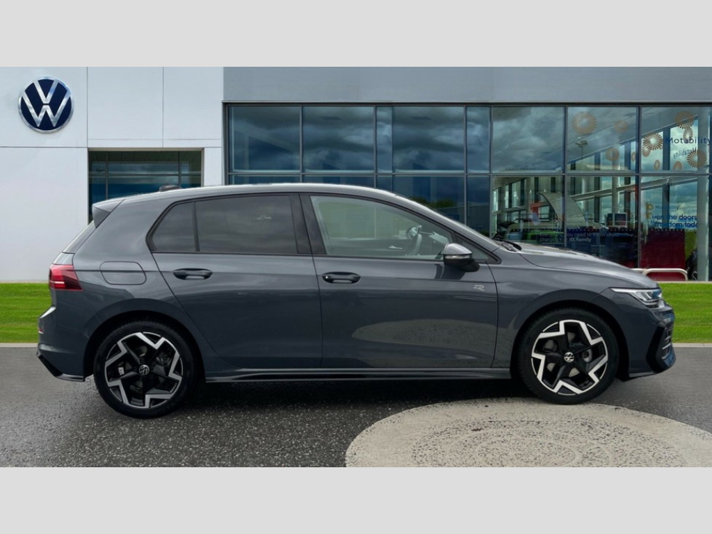 Volkswagen Golf 1.5 TSI 150 R-Line 5dr Activated carbon canister, Adaptive cruise control (ACC), Advanced driver attention and drowsiness monitor, Dynamic road sign display, Dynamic steering, E-Sim card for online connectivity, eCall emergency call system, Multi-color Digital cockpit pro, selection of different info profile possible, Multifunction front facing camera for distance control, Navigation system, Oncoming vehicle braking when turning including swerve support, Preparation for light assist system, Speed limiter, Speedo, rev counter, electronic odometer, trip, service interval display, exterior temperature and fuel gauge, Traffic jam assist, Voice enhancer and voice control, Warning signal and warning light for front and rear seatbelts not fastened, We connect plus preparation, We connect preparation, Wireless app connect, Petrol Particulate Filter, Start-stop system with battery regeneration (recuperation - energy recovery during braking), XDS electronic differential lock for improved traction and handling, 2 USB C ports in front, 2 USB charging sockets on the centre console in the rear charging capacity upto 45W, Comfort telephony + wireless charging, without wireless aerial connection, Digital radio reception (DAB), Diversity antenna for FM reception, Gaming platform via car app, Infotainment system with 12.9" display, Mobile phone interface with inductive charging feature, 3rd brake light, Auto headlights, Automatic headlamp activation with Coming home and Leaving home feature, Body colored bumpers in R-Line style, Body colour door handles, Exterior ambient lighting with illuminated door handles, Exterior mirrors convex on the left and aspherical on the right, Front and rear electric windows, Heat insulating windshield made of laminated glass, LED daytime running lights, Rear exhaust tailpipe, Rear fog light on one side and reversing lights on both sides, Rear side wing doors, Rear windscreen washer and wiper with interval delay, Remote electrically foldable door mirrors, puddle lights and reverse activated passenger's door mirror, Welcome light with surround lighting, 12V socket in front centre console, 12V socket in luggage compartment, 3 rear head restraints, 3 seat bench in 2nd row, Ambient lighting with 30 colour including LED light unit in front footwell with selectable light colour, Brushed stainless steel pedals, Carpet mats, front and rear, Chrome plated radiator grille inserts, air vent surrounds and light switch surrounds, Front centre armrest, Integrated front head restraints, ISOFIX anchors for child seats on outer rear bench seats and on front passanger seat compatible for i-Size, Leather gearshift handle, Luggage compartment lighting, Premium sports seats in front, Rear cupholder and loadthough, Single front passenger seat, Soul black instrument panel, Split folding backrest with centre armrest and unsplit rear seat bench, Storm grey roof lining, Sun visors with illuminated vanity mirrors, 3 point height adj front seatbelts + pretensioners, 3 rear three point seatbelts, ABS, Autonomous emergency braking front assist with pedestrian and cyclist monitoring, Child locks on rear doors, Driver and front passenger airbag with front passenger airbag deactivation, Electronic parking brake with auto hold, ESC (Electronic Stability Control), Extended pedestrian protection measures, Rear disc brakes, Two tone horn, Tyre pressure loss indicator, Volkswagen roadside assistance, Anti theft wheel bolts, Preparation for alcohol interlock, Decorative inserts carbon grey for dashboard and front door trim panels