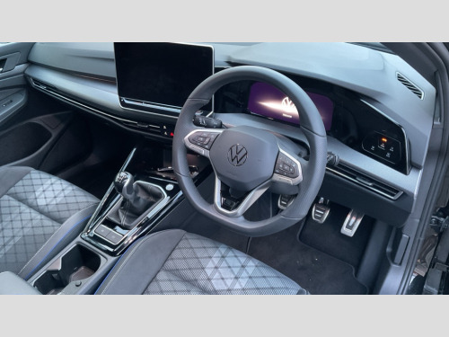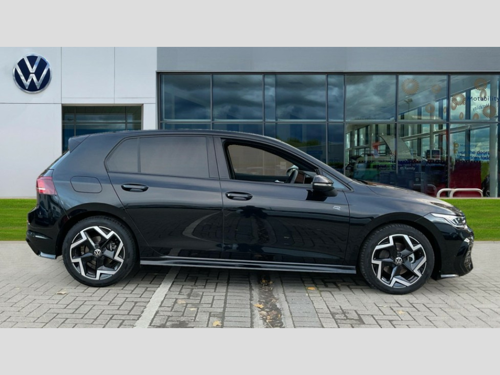 Volkswagen Golf 1.5 TSI 150 R-Line 5dr Activated carbon canister, Adaptive cruise control (ACC), Advanced driver attention and drowsiness monitor, Dynamic road sign display, Dynamic steering, E-Sim card for online connectivity, eCall emergency call system, Multi-color Digital cockpit pro, selection of different info profile possible, Multifunction front facing camera for distance control, Navigation system, Oncoming vehicle braking when turning including swerve support, Preparation for light assist system, Speed limiter, Speedo, rev counter, electronic odometer, trip, service interval display, exterior temperature and fuel gauge, Traffic jam assist, Voice enhancer and voice control, Warning signal and warning light for front and rear seatbelts not fastened, We connect plus preparation, We connect preparation, Wireless app connect, Petrol Particulate Filter, Start-stop system with battery regeneration (recuperation - energy recovery during braking), XDS electronic differential lock for improved traction and handling, 2 USB C ports in front, 2 USB charging sockets on the centre console in the rear charging capacity upto 45W, Comfort telephony + wireless charging, without wireless aerial connection, Digital radio reception (DAB), Diversity antenna for FM reception, Gaming platform via car app, Infotainment system with 12.9" display, Mobile phone interface with inductive charging feature, 3rd brake light, Auto headlights, Automatic headlamp activation with Coming home and Leaving home feature, Body colored bumpers in R-Line style, Body colour door handles, Exterior ambient lighting with illuminated door handles, Exterior mirrors convex on the left and aspherical on the right, Front and rear electric windows, Heat insulating windshield made of laminated glass, LED daytime running lights, Rear exhaust tailpipe, Rear fog light on one side and reversing lights on both sides, Rear side wing doors, Rear windscreen washer and wiper with interval delay, Remote electrically foldable door mirrors, puddle lights and reverse activated passenger's door mirror, Welcome light with surround lighting, 12V socket in front centre console, 12V socket in luggage compartment, 3 rear head restraints, 3 seat bench in 2nd row, Ambient lighting with 30 colour including LED light unit in front footwell with selectable light colour, Brushed stainless steel pedals, Carpet mats, front and rear, Chrome plated radiator grille inserts, air vent surrounds and light switch surrounds, Front centre armrest, Integrated front head restraints, ISOFIX anchors for child seats on outer rear bench seats and on front passanger seat compatible for i-Size, Leather gearshift handle, Luggage compartment lighting, Premium sports seats in front, Rear cupholder and loadthough, Single front passenger seat, Soul black instrument panel, Split folding backrest with centre armrest and unsplit rear seat bench, Storm grey roof lining, Sun visors with illuminated vanity mirrors, 3 point height adj front seatbelts + pretensioners, 3 rear three point seatbelts, ABS, Autonomous emergency braking front assist with pedestrian and cyclist monitoring, Child locks on rear doors, Driver and front passenger airbag with front passenger airbag deactivation, Electronic parking brake with auto hold, ESC (Electronic Stability Control), Extended pedestrian protection measures, Rear disc brakes, Two tone horn, Tyre pressure loss indicator, Volkswagen roadside assistance, Anti theft wheel bolts, Preparation for alcohol interlock, Decorative inserts carbon grey for dashboard and front door trim panels