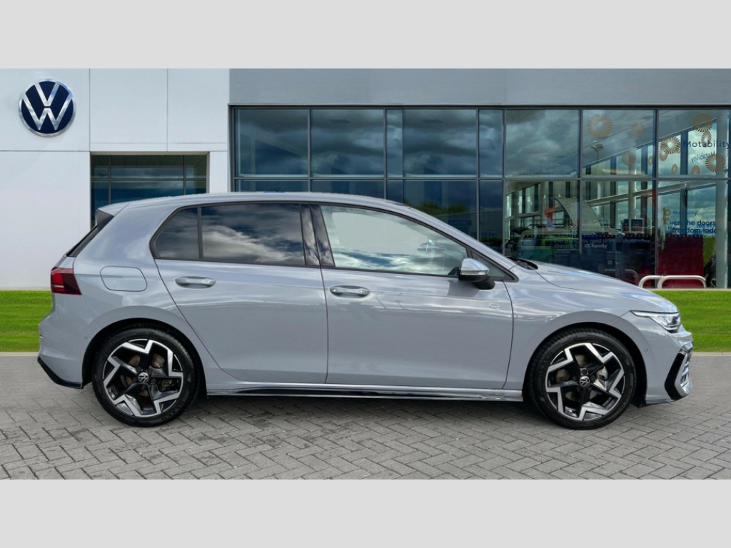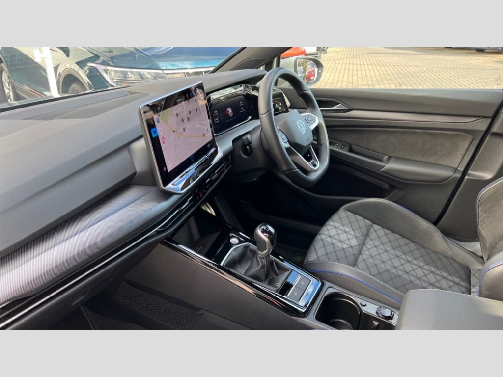 Volkswagen Golf 1.5 TSI 150 R-Line 5dr Activated carbon canister, Adaptive cruise control (ACC), Advanced driver attention and drowsiness monitor, Dynamic road sign display, Dynamic steering, E-Sim card for online connectivity, eCall emergency call system, Multi-color Digital cockpit pro, selection of different info profile possible, Multifunction front facing camera for distance control, Navigation system, Oncoming vehicle braking when turning including swerve support, Preparation for light assist system, Speed limiter, Speedo, rev counter, electronic odometer, trip, service interval display, exterior temperature and fuel gauge, Traffic jam assist, Voice enhancer and voice control, Warning signal and warning light for front and rear seatbelts not fastened, We connect plus preparation, We connect preparation, Wireless app connect, Petrol Particulate Filter, Start-stop system with battery regeneration (recuperation - energy recovery during braking), XDS electronic differential lock for improved traction and handling, 2 USB C ports in front, 2 USB charging sockets on the centre console in the rear charging capacity upto 45W, Comfort telephony + wireless charging, without wireless aerial connection, Digital radio reception (DAB), Diversity antenna for FM reception, Gaming platform via car app, Infotainment system with 12.9" display, Mobile phone interface with inductive charging feature, 3rd brake light, Auto headlights, Automatic headlamp activation with Coming home and Leaving home feature, Body colored bumpers in R-Line style, Body colour door handles, Exterior ambient lighting with illuminated door handles, Exterior mirrors convex on the left and aspherical on the right, Front and rear electric windows, Heat insulating windshield made of laminated glass, LED daytime running lights, Rear exhaust tailpipe, Rear fog light on one side and reversing lights on both sides, Rear side wing doors, Rear windscreen washer and wiper with interval delay, Remote electrically foldable door mirrors, puddle lights and reverse activated passenger's door mirror, Welcome light with surround lighting, 12V socket in front centre console, 12V socket in luggage compartment, 3 rear head restraints, 3 seat bench in 2nd row, Ambient lighting with 30 colour including LED light unit in front footwell with selectable light colour, Brushed stainless steel pedals, Carpet mats, front and rear, Chrome plated radiator grille inserts, air vent surrounds and light switch surrounds, Front centre armrest, Integrated front head restraints, ISOFIX anchors for child seats on outer rear bench seats and on front passanger seat compatible for i-Size, Leather gearshift handle, Luggage compartment lighting, Premium sports seats in front, Rear cupholder and loadthough, Single front passenger seat, Soul black instrument panel, Split folding backrest with centre armrest and unsplit rear seat bench, Storm grey roof lining, Sun visors with illuminated vanity mirrors, 3 point height adj front seatbelts + pretensioners, 3 rear three point seatbelts, ABS, Autonomous emergency braking front assist with pedestrian and cyclist monitoring, Child locks on rear doors, Driver and front passenger airbag with front passenger airbag deactivation, Electronic parking brake with auto hold, ESC (Electronic Stability Control), Extended pedestrian protection measures, Rear disc brakes, Two tone horn, Tyre pressure loss indicator, Volkswagen roadside assistance, Anti theft wheel bolts, Preparation for alcohol interlock, Decorative inserts carbon grey for dashboard and front door trim panels