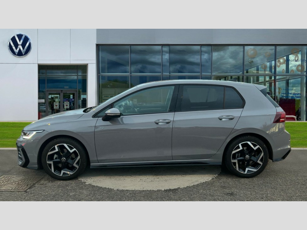 Volkswagen Golf 1.5 TSI 150 R-Line 5dr Activated carbon canister, Adaptive cruise control (ACC), Advanced driver attention and drowsiness monitor, Dynamic road sign display, Dynamic steering, E-Sim card for online connectivity, eCall emergency call system, Multi-color Digital cockpit pro, selection of different info profile possible, Multifunction front facing camera for distance control, Navigation system, Oncoming vehicle braking when turning including swerve support, Preparation for light assist system, Speed limiter, Speedo, rev counter, electronic odometer, trip, service interval display, exterior temperature and fuel gauge, Traffic jam assist, Voice enhancer and voice control, Warning signal and warning light for front and rear seatbelts not fastened, We connect plus preparation, We connect preparation, Wireless app connect, Petrol Particulate Filter, Start-stop system with battery regeneration (recuperation - energy recovery during braking), XDS electronic differential lock for improved traction and handling, 2 USB C ports in front, 2 USB charging sockets on the centre console in the rear charging capacity upto 45W, Comfort telephony + wireless charging, without wireless aerial connection, Digital radio reception (DAB), Diversity antenna for FM reception, Gaming platform via car app, Infotainment system with 12.9" display, Mobile phone interface with inductive charging feature, 3rd brake light, Auto headlights, Automatic headlamp activation with Coming home and Leaving home feature, Body colored bumpers in R-Line style, Body colour door handles, Exterior ambient lighting with illuminated door handles, Exterior mirrors convex on the left and aspherical on the right, Front and rear electric windows, Heat insulating windshield made of laminated glass, LED daytime running lights, Rear exhaust tailpipe, Rear fog light on one side and reversing lights on both sides, Rear side wing doors, Rear windscreen washer and wiper with interval delay, Remote electrically foldable door mirrors, puddle lights and reverse activated passenger's door mirror, Welcome light with surround lighting, 12V socket in front centre console, 12V socket in luggage compartment, 3 rear head restraints, 3 seat bench in 2nd row, Ambient lighting with 30 colour including LED light unit in front footwell with selectable light colour, Brushed stainless steel pedals, Carpet mats, front and rear, Chrome plated radiator grille inserts, air vent surrounds and light switch surrounds, Front centre armrest, Integrated front head restraints, ISOFIX anchors for child seats on outer rear bench seats and on front passanger seat compatible for i-Size, Leather gearshift handle, Luggage compartment lighting, Premium sports seats in front, Rear cupholder and loadthough, Single front passenger seat, Soul black instrument panel, Split folding backrest with centre armrest and unsplit rear seat bench, Storm grey roof lining, Sun visors with illuminated vanity mirrors, 3 point height adj front seatbelts + pretensioners, 3 rear three point seatbelts, ABS, Autonomous emergency braking front assist with pedestrian and cyclist monitoring, Child locks on rear doors, Driver and front passenger airbag with front passenger airbag deactivation, Electronic parking brake with auto hold, ESC (Electronic Stability Control), Extended pedestrian protection measures, Rear disc brakes, Two tone horn, Tyre pressure loss indicator, Volkswagen roadside assistance, Anti theft wheel bolts, Preparation for alcohol interlock, Decorative inserts carbon grey for dashboard and front door trim panels