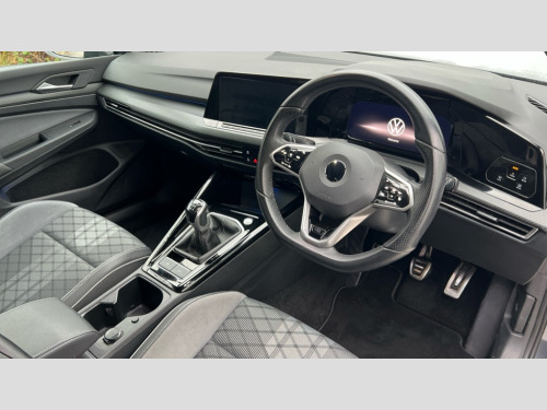 Volkswagen Golf 1.5 TSI 150 R-Line 5dr Adaptive cruise control (ACC) with speed limiter and front assist (reacting to vehicles pedestrians and cyclists), Car2X communication, Digital cockpit pro - 10.25" high resolution TFT dash display screen with customizable menus and information, Driver alert system, Dynamic road sign display, eCall - Emergency call service for SOS calls to emergency response, Lane assist, Mobile phone interface with wireless inductive charging function, PAS, Speedo, rev counter, electronic odometer, trip, service interval display, exterior temperature and fuel gauge, Start/Stop function, USB-C ports in the front and rear centre console with increased charging performance, Warning buzzer and light for front seatbelts unfastened, Wireless app connect, Petrol Particulate Filter, XDS electronic differential lock for improved traction and handling, Premium USB cable in choice of either Apple or Android smartphone compatibility, Ambient lighting, exterior illuminated styling elements at the sides, Auto dimming rear view mirror, Automatic headlamp activation with Coming home and Leaving home feature, Automatic headlights, Body colour door handles, Body colour door mirrors with integrated indicators, Body colour rear roof spoiler, Dynamic headlight range control, Electrically heated and adjustable door mirrors with memory feature, Front and rear electric windows, Heat insulating glass windscreen, Heated rear windscreen, High level 3rd brake light, Highway light, LED daytime running lights, LED headlights incorporating turn signals, LED License plate illumination, R Line body coloured bumpers, Rain sensor, Rear fog light on one side and reversing lights on both sides, Rear lights incorporating LED technology, Rear side wing doors, Rear tinted glass 65% light absorbing from B pillar backwards, Rear windscreen washer and wiper with interval delay, Welcome light, 12V socket in front centre console, 12V socket in luggage compartment, 3 rear head restraints, 3 seat bench in 2nd row, Ambient lighting - Customisable 30 colour ambient lighting, Black roof lining, Brushed stainless steel pedals, Chrome plated surround to electric mirror button, window switch and air vent surrounds, Drivers and front passengers sun visors with vanity mirrors, Front + rear carpet mats in recycled material, Front centre armrest with storage compartment, Front cupholders x 2, Front passenger seat, Front reading lights x 2 incorporating LED technology, Front seat lumbar support adjuster, Front sports seats, Glovebox, Height adjustable front seats, Height and reach adjustable steering wheel, Isofix child seat preparation for 2 rear child seats and front passenger seat, Luggage compartment lighting, R Line door and side trim panel, R Line front seats integrated head restraints, R-Line leather wrapped multi function sports heated steering wheel, Removable luggage compartment cover, Sardegna cloth upholstery with front and outer rear seats Art Velour inner sides of bolsters, Split folding backrest with centre armrest and unsplit rear seat bench, Woven fabric storage compartments in front and rear doors, 3 point height adj front seatbelts + pretensioners, 3 rear three point seatbelts, ABS, Child locks on rear doors, Driver and front passenger airbag with front passenger airbag deactivation, Drivers and front passengers safety optimised head restraints, Electronic parking brake with auto hold, ESC (Electronic Stability Control), Extended pedestrian protection measures, Front and rear passengers curtain airbag system including front side airbags, Front disc brakes, Rear disc brakes, Two tone horn, Tyre pressure monitoring system, Alarm with interior protection and deactivation via infotainment system, Electronic engine immobiliser, Carbon grey decorative inserts in dash and front door trim panels, High gloss black centre console, Soul dashboard