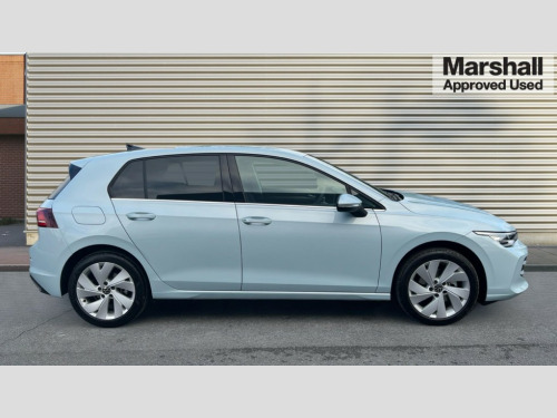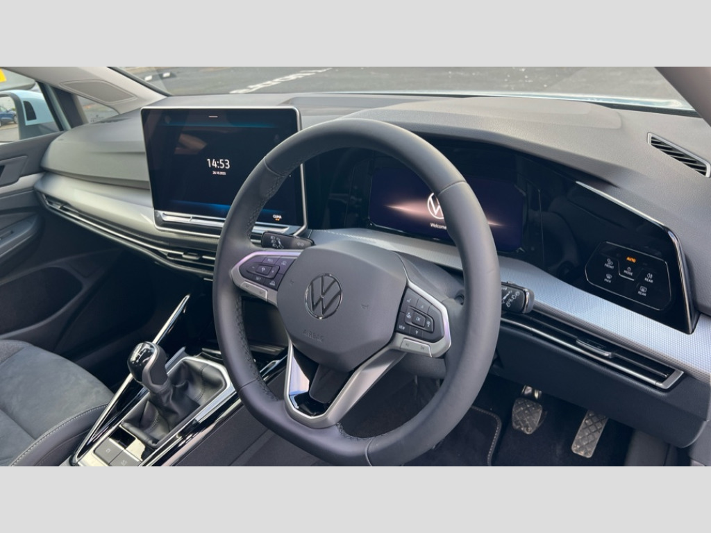 Volkswagen Golf 1.5 TSI 150 Style 5dr Activated carbon canister, Adaptive cruise control (ACC), Advanced driver attention and drowsiness monitor, Dynamic road sign display, E-Sim card for online connectivity, eCall emergency call system, Multi-color Digital cockpit pro, selection of different info profile possible, Multifunction front facing camera for distance control, Navigation system, Oncoming vehicle braking when turning including swerve support, Side assist blind spot lane change system, rear traffic alert and exit warning system, Speed limiter, Speedo, rev counter, electronic odometer, trip, service interval display, exterior temperature and fuel gauge, Voice enhancer and voice control, Warning signal and warning light for front and rear seatbelts not fastened, We connect plus preparation, We connect preparation, Wireless app connect, Petrol Particulate Filter, Start-stop system with battery regeneration (recuperation - energy recovery during braking), XDS electronic differential lock for improved traction and handling, 2 USB C ports in front, 2 USB charging sockets on the centre console in the rear charging capacity upto 45W, Digital radio reception (DAB), Diversity antenna for FM reception, Gaming platform via car app, Infotainment system with 12.9" display, Mobile phone interface with inductive charging feature, 3rd brake light, Automatic headlamp activation with Coming home and Leaving home feature, Body colour bumpers, Body colour door handles, Body colour door mirrors, Chrome trimmed front air intake surrounds, Chrome trims on the side window bottom, Exterior mirrors convex on the left and aspherical on the right, Front and rear electric windows, Heat insulating windshield made of laminated glass, LED separate daytime running light, Rear exhaust tailpipe, Rear fog light on one side and reversing lights on both sides, Rear side wing doors, Rear windscreen washer and wiper with interval delay, Remote electrically foldable door mirrors, puddle lights and reverse activated passenger's door mirror, Welcome light with surround lighting, 12V socket in front centre console, 12V socket in luggage compartment, 3 rear head restraints, 3 seat bench in 2nd row, Air care climatronic 3 Zone automatic climate control with rear air conditioning control panel, Ambient lighting with 30 colour including LED light unit in front footwell with selectable light colour, Chrome plated radiator grille inserts, air vent surrounds and light switch surrounds, Front + rear black carpet mats, Front centre armrest, ISOFIX anchors for child seats on outer rear bench seats and on front passanger seat compatible for i-Size, Leather gearshift handle, Luggage compartment lighting, Rear cupholder and loadthough, Single front passenger seat, Soul black instrument panel, Split folding backrest with centre armrest and unsplit rear seat bench, Standard pedal cluster, Storm grey roof lining, Sun visors with illuminated vanity mirrors, Driver assistance pack - Golf Estate/Hatchback Manual, 3 point height adj front seatbelts + pretensioners, 3 rear three point seatbelts, ABS, Autonomous emergency braking front assist with pedestrian and cyclist monitoring, Child locks on rear doors, Driver and front passenger airbag with front passenger airbag deactivation, Electronic parking brake with auto hold, ESC (Electronic Stability Control), Extended pedestrian protection measures, Rear disc brakes, Two tone horn, Tyre pressure loss indicator, Volkswagen roadside assistance, Anti theft wheel bolts, Preparation for alcohol interlock, New brushed dark metal decorative inserts for dashboard and front door panels