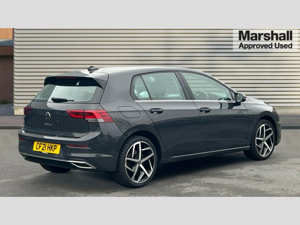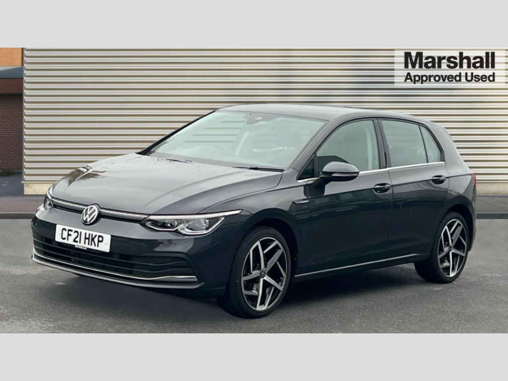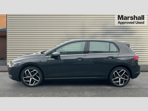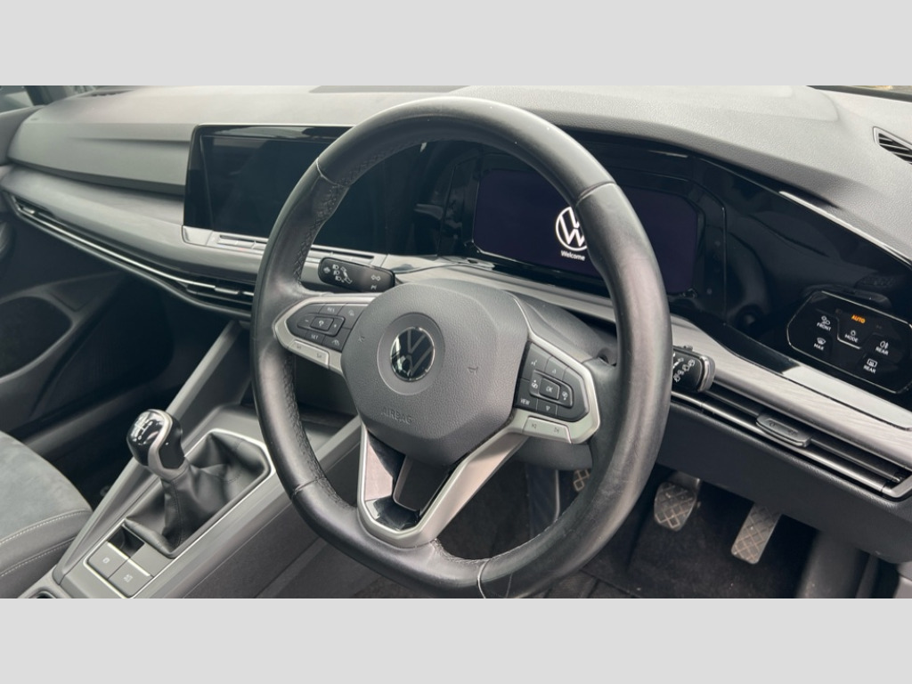 Volkswagen Golf 1.5 TSI 150 Style 5dr Adaptive cruise control (ACC) with speed limiter and front assist (reacting to vehicles pedestrians and cyclists), Car2X communication, Digital cockpit pro - 10.25" high resolution TFT dash display screen with customizable menus and information, Driver alert system, Dynamic road sign display, eCall - Emergency call service for SOS calls to emergency response, Lane assist, Lane change assistant, Mobile phone interface with wireless inductive charging function, Power assisted speed sensitive steering, Speedo, rev counter, electronic odometer, trip, service interval display, exterior temperature and fuel gauge, Start/Stop function, Travel assist including side assist with electrically foldable door mirrors, Warning buzzer and light for front seatbelts unfastened, Wireless app connect, Petrol Particulate Filter, XDS electronic differential lock for improved traction and handling, Premium USB cable in choice of either Apple or Android smartphone compatibility, Ambient lighting, exterior illuminated styling elements at the sides, Auto dimming rear view mirror, Automatic headlamp activation with Coming home and Leaving home feature, Body colour bumpers, Body colour door handles, Body colour door mirrors with integrated indicators, Body colour rear roof spoiler, Front and rear electric windows, Front fog lights with static cornering function and poor weather lighting, Heat insulating glass windscreen, Heated rear windscreen, High level 3rd brake light, Highway light, Illuminated front grille, LED License plate illumination, Rain sensor, Rear fog light on one side and reversing lights on both sides, Rear lights incorporating LED technology, Rear windscreen washer and wiper with interval delay, Remote electrically heated, adjustable and foldable door mirrors, including door mirror puddle lights and reverse activated kerb-view adjustment on pa, Welcome light, 12V socket in front centre console, 12V socket in luggage compartment, 3 rear head restraints, 3 zone climate with controls in the rear, Ambient lighting - Customisable 30 colour ambient lighting, Art Velour cloth upholstery + front sports comfort seats with Microfibre sides of bolsters, Centre console, Drivers and front passengers sun visors with vanity mirrors, Dust/pollen filter, Front + rear carpet mats, Front and rear foot well interior light, Front centre armrest with storage compartment, Front cupholders x 2, Front passenger seat lumbar adjustment, Front reading lights x 2 incorporating LED technology, Glovebox, Height adjustable passenger seat, Height and reach adjustable steering wheel, Isofix child seat preparation for 2 rear child seats and front passenger seat, Luggage compartment lighting, Removable luggage compartment cover, Split folding backrest with centre armrest and unsplit rear seat bench, Storm grey roof lining, Woven fabric storage compartments in front and rear doors, 3 point height adj front seatbelts + pretensioners, 3 rear three point seatbelts, ABS, Driver and front passenger airbag with front passenger airbag deactivation, Drivers and front passengers safety optimised head restraints, Electronic parking brake with auto hold, ESC (Electronic Stability Control), Extended pedestrian protection measures, Front and rear passengers curtain airbag system including front side airbags, Front disc brakes, Rear disc brakes, Two tone horn, Tyre pressure monitoring system, Alarm with interior protection and deactivation via infotainment system, Electronic engine immobiliser, Luxury brown wood decorative inserts, Soul dashboard