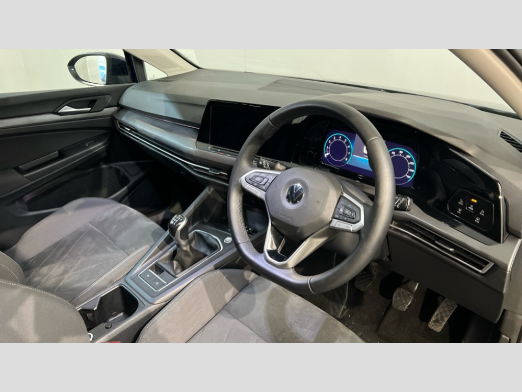 Volkswagen Golf 1.5 TSI 150 Style 5dr Adaptive cruise control (ACC) with speed limiter and front assist (reacting to vehicles pedestrians and cyclists), Car2X communication, Digital cockpit, Driver alert system, Dynamic road sign display, eCall - Emergency call service for SOS calls to emergency response, Lane assist, Mobile phone interface with wireless inductive charging function, Speedo, rev counter, electronic odometer, trip, service interval display, exterior temperature and fuel gauge, Start/Stop function, Travel assist including side assist with electrically foldable door mirrors, Warning buzzer and light for front seatbelts unfastened, Wireless app connect, Petrol Particulate Filter, XDS electronic differential lock for improved traction and handling, Premium USB cable in choice of either Apple or Android smartphone compatibility, Auto dimming rear view mirror, Automatic headlamp activation with Coming home and Leaving home feature, Body colour bumpers, Body colour door handles, Body colour door mirrors with integrated indicators, Body colour rear roof spoiler, Electrically heated and adjustable door mirrors with memory feature, Front and rear electric windows, Front fog lights with static cornering function and poor weather lighting, Heat insulating glass windscreen, Heated rear windscreen, High level 3rd brake light, Highway light, Illuminated front grille, LED License plate illumination, Rain sensor, Rear fog light on one side and reversing lights on both sides, Rear lights incorporating LED technology, Rear windscreen washer and wiper with interval delay, Welcome light, 12V socket in front centre console, 12V socket in luggage compartment, 3 rear head restraints, Ambient lighting - Customisable 30 colour ambient lighting, Art Velour cloth upholstery + front sports comfort seats with Microfibre sides of bolsters, Centre console, Climate control - 3 Zone electronic air conditioning with automatic air recirculation, Drivers and front passengers sun visors with vanity mirrors, Dust/pollen filter, Front + rear carpet mats, Front and rear foot well interior light, Front centre armrest with storage compartment, Front cupholders x 2, Front seat lumbar support adjuster, Glovebox, Height adjustable front seats, Height and reach adjustable steering wheel, Isofix child seat preparation for 2 rear child seats and front passenger seat, LED front reading lights X 2, Luggage compartment lighting, Removable luggage compartment cover, Split folding backrest with centre armrest and unsplit rear seat bench, Storm grey roof lining, Woven fabric storage compartments in front and rear doors, 3 point height adj front seatbelts + pretensioners, 3 rear three point seatbelts, ABS, Driver and front passenger airbag with front passenger airbag deactivation, Drivers and front passengers safety optimised head restraints, Electronic parking brake with auto hold, ESC (Electronic Stability Control), Extended pedestrian protection measures, Front and rear passengers curtain airbag system including front side airbags, Front disc brakes, Rear disc brakes, Two tone horn, Tyre pressure monitoring system, Alarm with interior protection and deactivation via infotainment system, Electronic engine immobiliser, Luxury brown wood decorative inserts, Soul dashboard
