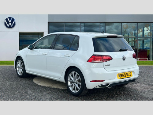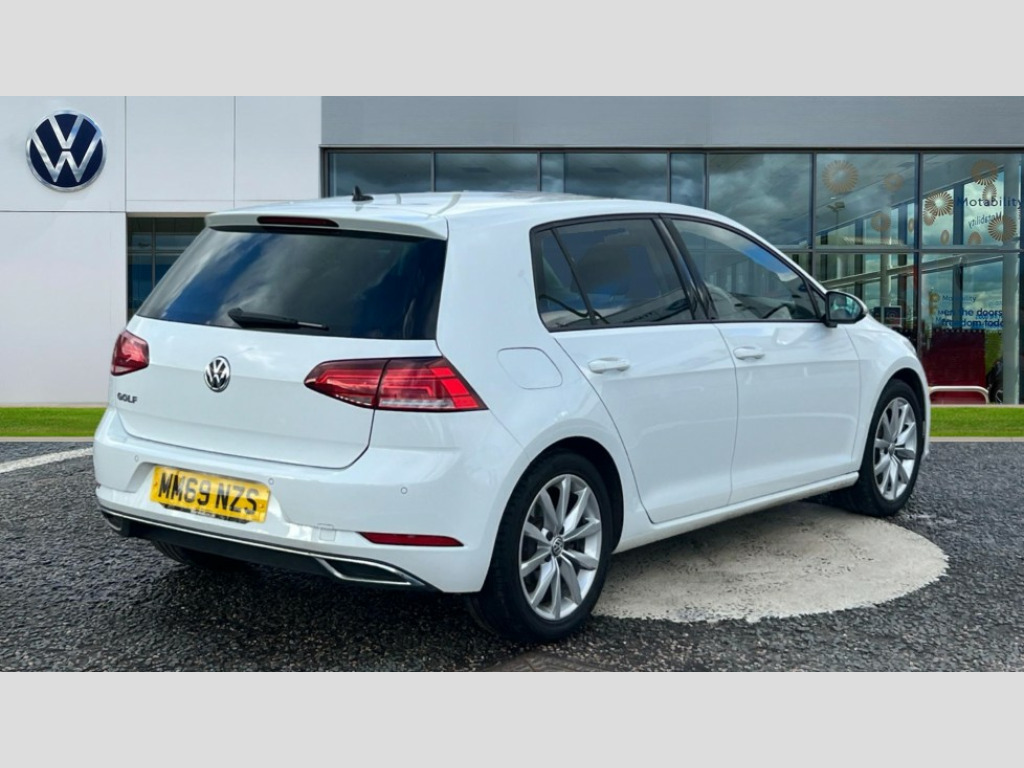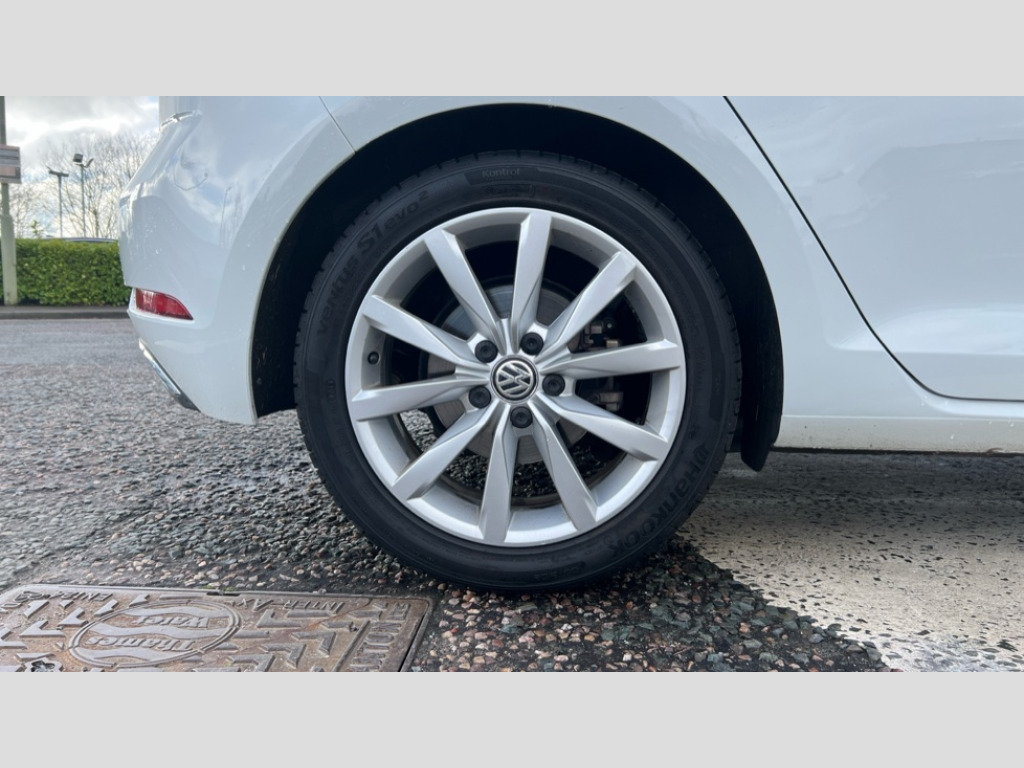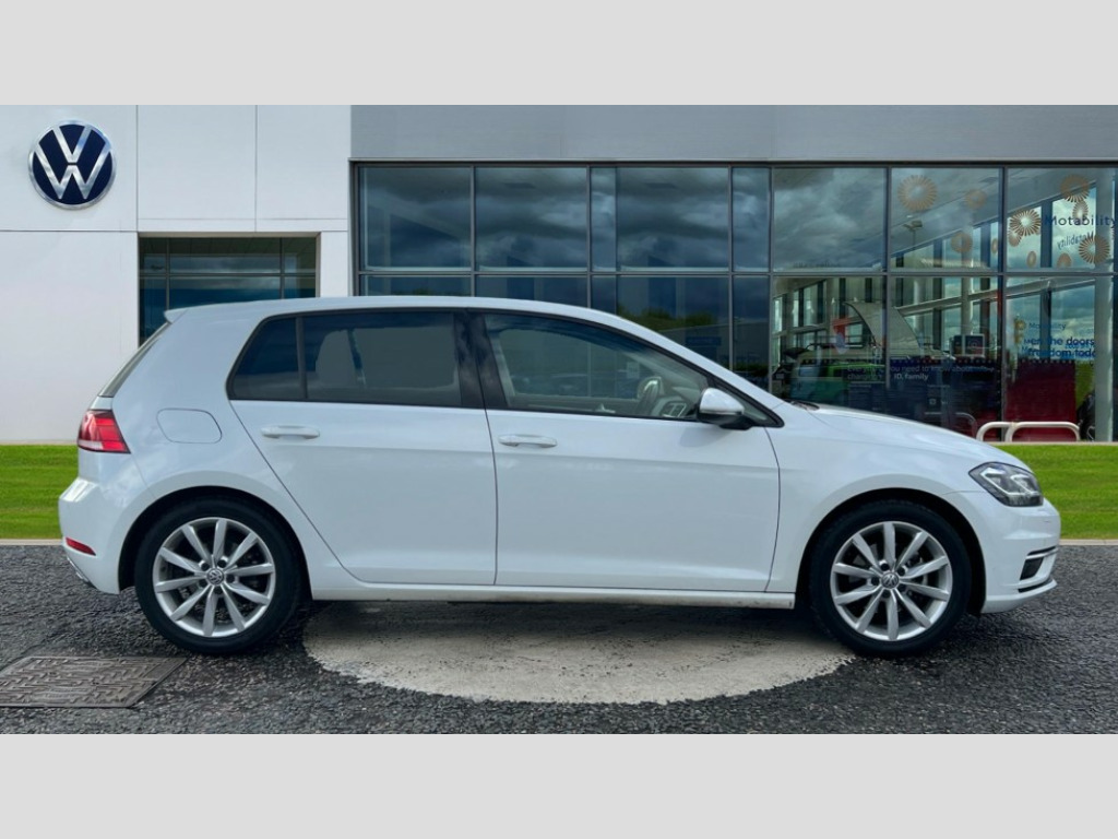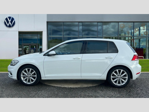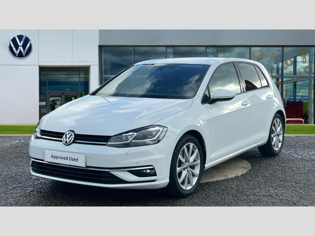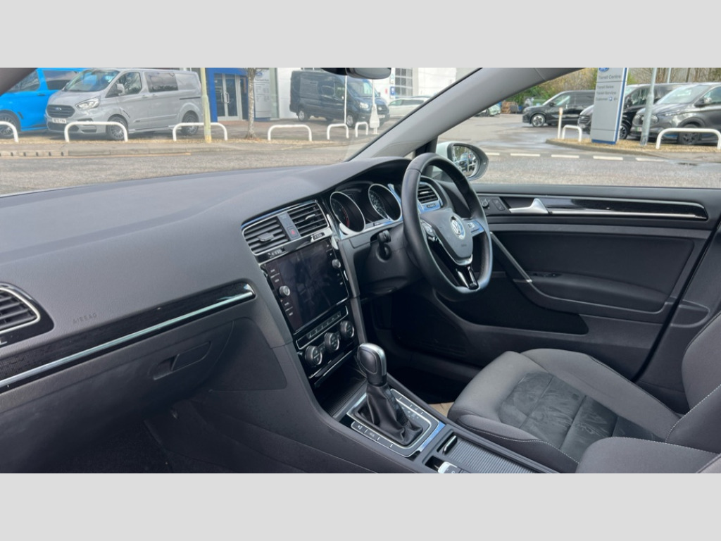 Volkswagen Golf 1.5 TSI EVO 150 GT Edition 5dr DSG 'Lights On' Reminder warning buzzer, ACC - Adaptive cruise control with front assist, forward collision warning, distance monitoring, city emergency brake and speed limiter, Bluetooth telephone and audio connection for compatible devices, Brake pad wear indicator warning light, Driver alert system, Driving Mode Selection with four preset modes - Eco, normal, sport or individual modes, Multifunction computer with visual gear change recommendation for fuel consumption, Power assisted speed sensitive electro-mechanical steering, Push tank flap, Speed limit display, Speedo, rev counter, electronic odometer, trip, service interval display, exterior temperature and fuel gauge, Stop/start system, Think blue trainer driver tips and journey analysis, Warning buzzer and light for front seatbelts unfastened, Battery regeneration during braking, XDS electronic differential lock, Composition media system, DAB Digital radio receiver, Driver Personalisation profile selection, MP3/WMA compatability, Multi device interface (MDI) via USB connection, Premium USB cable in choice of either Apple or Android smartphone compatibility, SMS Functionality, Title and cover art display, USB and SD card connectivity, Volkswagen media control, Black front air intake and radiator grille with chrome insert, Black rear diffuser, Body colour bumpers, Body colour door handles, Body colour door mirrors with integrated indicators, Chrome trimmed front air intake surrounds, Dusk sensor + automatic driving lights, Electric front windows, Electric rear windows, Electrically adjustable and heated door mirrors, Fully galvanised body, Heated rear windscreen, High level 3rd brake light incorporating LED Technology, LED front fog lights with static cornering light function, Range adjustable headlights via infotainment system with LED daytime running lights, Rear fog lamp, Rear number plate lights incorporating LED technology, Rear tinted glass 65% light absorbing from B pillar backwards, Rear window aerial, Rear window wash/wipe with intermittent wipe, Reflectors in all doors, Tailgate with integrated rear roof spoiler, Windscreen wipers/ intermittent wipe + 4 position delay, 12V socket in luggage compartment, 3 rear headrests, 4 load lashing points in luggage compartment, 60/40 split folding rear seat backrest, Bag hook in luggage compartment x 2, Climate control - 2 zone electronic air conditioning with automatic air recirculation and allergy filter, Cooled glovebox, Cover for storage compartment in centre, Dust/pollen filter, Front + rear carpet mats, Front centre armrest with storage compartment and two rear air vents, Front seat back storage pockets, Grab handles front x 2, rear x 2 with integrated coat hooks, Height and reach adjustable steering wheel, Illuminated vanity mirrors, Instrument lighting white adjustable panel illumination, Interior light delay, Isofix preparation for 2 rear child seats, Load through provision with rear centre armrest and cupholders x2, Luggage compartment lighting, Overhead storage box, Pearl grey headlining, Storage box in luggage compartment, Storage compartment in roof console with cover, Storage compartments in centre console, Storage compartments in front doors, Storage compartments in rear doors, Stowable luggage compartment cover, Sun visors, Variable boot floor, height adjustable and removable, Ambient lighting pack - Golf, Convenience Pack - Golf, Mirror pack - Golf, Winter pack - Golf, 3 rear three point seatbelts, Airbags - Driver's and front passenger's, curtain airbag, Driver's knee, front side impact and passenger's airbag deactivation switch, Anti-lock Braking System (ABS) with Hydraulic Brake Assist (HBA), Automatic post collision braking system, Child locks on rear doors, Driver/Passenger optimised head restraints, Electronic parking brake with auto hold, Electronic stability control (ESC) including Electronic differential lock (EDL) and ASR (Traction control) with deactivation via infotainment system, Front ventilated disc brakes and rear disc brakes, Pre crash preventive occupant protection, Three point height adjustable front seatbelts with tensioners, Tyre pressure loss indicator, Alarm with interior protection and deactivation via infotainment system, Electronic engine immobiliser, Chrome plated air vent surround, Chrome plated electric mirror adjustment switch surround, Chrome-plated light switch surround, Piano black decorative inserts in centre console, Tumbler decorative inserts, Steel space saver spare wheel