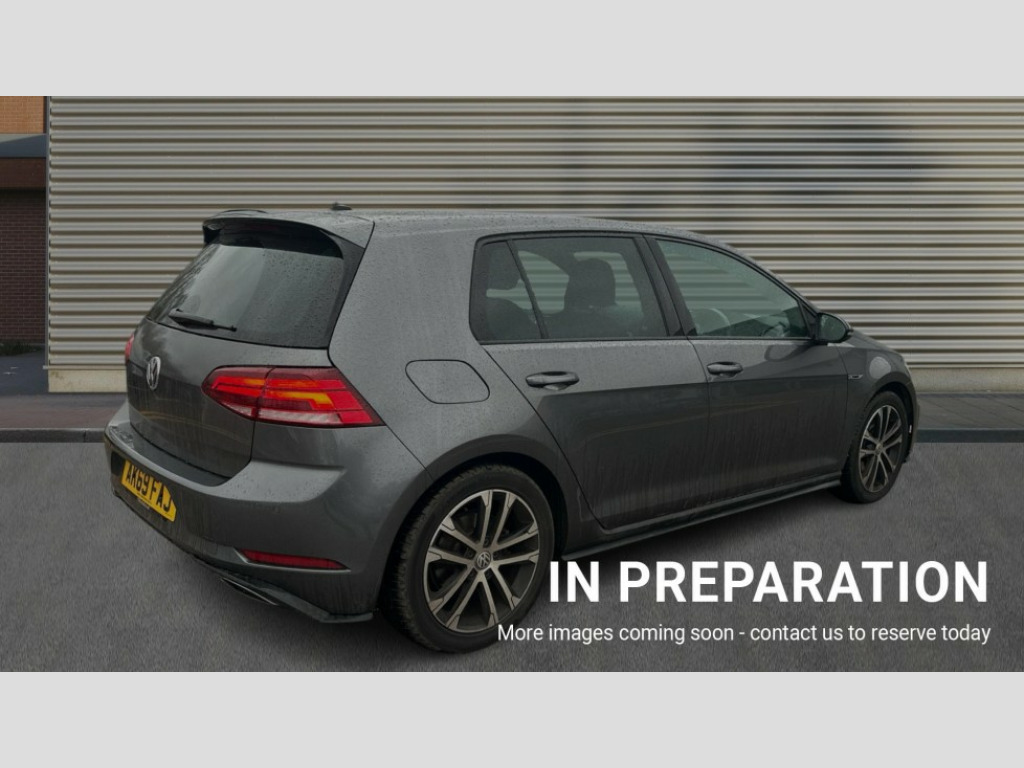 Volkswagen Golf 1.5 TSI EVO 150 R-Line Edition 5dr DSG 'Lights On' Reminder warning buzzer, ACC - Adaptive cruise control with front assist, forward collision warning, distance monitoring, city emergency brake and speed limiter, Bluetooth telephone and audio connection for compatible devices, Brake pad wear indicator warning light, Driver alert system, Driving Mode Selection with four preset modes - Eco, normal, sport or individual modes, Instrument cluster in white, Multifunction computer with visual gear change recommendation for fuel consumption, Power assisted speed sensitive electro-mechanical steering, Push tank flap, Speed limit display, Speedo, rev counter, electronic odometer, trip, service interval display, exterior temperature and fuel gauge, Startup screen with R-Line logo, Stop/start system, Think blue trainer driver tips and journey analysis, Warning buzzer and light for front seatbelts unfastened, Battery regeneration during braking, XDS electronic differential lock, Composition media system, DAB Digital radio receiver, Driver Personalisation profile selection, MP3/WMA compatability, Multi device interface (MDI) with USB connection, Premium USB cable in choice of either Apple or Android smartphone compatibility, SMS Functionality, USB and SD card connectivity, Black front air intake and radiator grille with chrome insert, Body colour bumpers, Body colour door handles, Body colour door mirrors with integrated indicators, Body colour rear roof spoiler, Dusk sensor + automatic driving lights, Electric front windows, Electric rear windows, Electrically adjustable and heated door mirrors, Fully galvanised body, Glossy black R-Line specific louver ventilation, Heated rear windscreen, High level 3rd brake light incorporating LED Technology, LED front fog lights with static cornering light function, Left and right chrome effect trapezoid dummy exhaust tailpipe surrounds, Radiator grille with R-Line logo, Range adjustable headlights via infotainment system with LED daytime running lights, Rear diffuser, Rear fog lamp, Rear number plate lights incorporating LED technology, Rear tinted glass 65% light absorbing from B pillar backwards, Rear window aerial, Rear window wash/wipe with intermittent wipe, Reflectors in all doors, Remote electrically foldable door mirrors, door mirror puddle lights and reverse activated kerb-view adjustment on passengers door mirror, Shiny black aerofoil downside, Sill extensions, Stainless steel door sill protection, Unique R Line badging, Windscreen wipers/ intermittent wipe + 4 position delay, 12V socket in luggage compartment, 3 rear headrests, 4 load lashing points in luggage compartment, 60/40 split folding rear seat backrest, Bag hook in luggage compartment x 2, Black decorative sleeve on gear handles, Black headlining, Black roof lining, Cooled glovebox, Dust/pollen filter, Embosseed R line logo on front sport seat backrest, Front + rear carpet mats, Front centre armrest with storage compartment and two rear air vents, Front seat back storage pockets, Grab handles front x 2, rear x 2 with integrated coat hooks, Height and reach adjustable steering wheel, Illuminated vanity mirrors, Instrument lighting white adjustable panel illumination, Interior light delay, Isofix preparation for 2 rear child seats, Leather gear knob and handbrake grip, Load through provision with rear centre armrest and cupholders x2, Luggage compartment lighting, Multifunction sports leather steering wheel with R-Line logo and decorative seams in crystal grey including paddle shift, Overhead storage box, Stainless steel pedals, Storage box in luggage compartment, Storage compartment in roof console with cover, Storage compartments in front doors, Storage compartments in rear doors, Stowable luggage compartment cover, Sun visors, Variable boot floor, height adjustable and removable, Ambient lighting pack - Golf, Convenience Pack - Golf, Light and Sight pack - Golf, Mirror pack - Golf, R Line Styling pack - Golf, 3 rear three point seatbelts, Airbags - Driver's and front passenger's, curtain airbag, Driver's knee, front side impact and passenger's airbag deactivation switch, Anti-lock Braking System (ABS) with Hydraulic Brake Assist (HBA), Automatic post collision braking system, Child locks on rear doors, Driver/Passenger optimised head restraints, Electronic parking brake with auto hold, Electronic stability control (ESC) including Electronic differential lock (EDL) and ASR (Traction control) with deactivation via infotainment system, Front ventilated disc brakes and rear disc brakes, Pre crash preventive occupant protection, Three point height adjustable front seatbelts with tensioners, Tyre pressure loss indicator, Alarm with interior protection and deactivation via infotainment system, Electronic engine immobiliser, Chrome plated air vent surround, Chrome plated electric mirror adjustment switch surround, Chrome-plated light switch surround, Dark Diamond decorative inserts in dash and door panels, Piano black decorative inserts in centre console, Steel space saver spare wheel