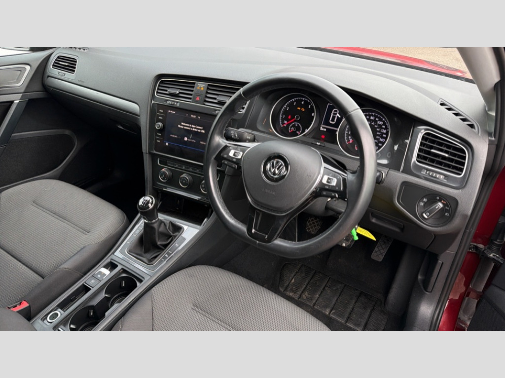 Volkswagen Golf 1.5 TSI EVO Match 5dr 'Lights On' Reminder warning buzzer, ACC - Adaptive cruise control with front assist, forward collision warning, distance monitoring, city emergency brake and speed limiter, Bluetooth telephone and audio connection for compatible devices, Brake pad wear indicator warning light, Driver alert system, Driver profile selection, Driving Mode Selection with four preset modes - Eco, normal, sport or individual modes, Instrument cluster in white, Multifunction computer with visual gear change recommendation for fuel consumption, Power assisted speed sensitive electro-mechanical steering, Push tank flap, Speed limit display, Speedo, rev counter, electronic odometer, trip, service interval display, exterior temperature and fuel gauge, Stop/start system, Warning buzzer and light for front seatbelts unfastened, Battery regeneration during braking, XDS electronic differential lock, Composition media system, DAB Digital radio receiver, Driver Personalisation profile selection, MP3/WMA compatability, Multi device interface (MDI) with USB connection, Personalisation 1.1 profile for media, Premium USB cable in choice of either Apple or Android smartphone compatibility, SD card slot, SMS Functionality, USB and SD card connectivity, Black front air intake and radiator grille with chrome insert, Black rear diffuser, Body colour bumpers, Body colour door handles, Body colour door mirrors with integrated indicators, Dusk sensor + automatic driving lights, Electric front windows, Electric rear windows, Electrically adjustable and heated door mirrors, Fully galvanised body, Heated rear windscreen, Hidden exhaust pipe, High level 3rd brake light incorporating LED Technology, LED daytime running lights, LED front fog lights with static cornering light function, Rear fog lamp, Rear tinted glass 65% light absorbing from B pillar backwards, Rear window aerial, Rear window wash/wipe with intermittent wipe, Reflectors in all doors, Tailgate with integrated rear roof spoiler, Windscreen wipers/ intermittent wipe + 4 position delay, 12V socket in luggage compartment, 3 rear headrests, 4 load lashing points in luggage compartment, 60/40 split folding rear seat backrest, Auto fold down lever in rear seat backrest, Bag hook in luggage compartment x 2, Cooled glovebox, Cupholder cover, Dust/pollen filter, Front and rear reading lights incorporating LED technology, Front centre armrest with storage compartment and two rear air vents, Front seat back storage pockets, Grab handles front x 2, rear x 2 with integrated coat hooks, Height and reach adjustable steering wheel, Illuminated vanity mirrors, Instrument lighting white adjustable panel illumination, Interior light delay, Isofix preparation for 2 rear child seats, Load through provision with rear centre armrest and cupholders x2, Luggage compartment lighting, Overhead storage box, Passenger underseat drawer, Pearl grey headlining, Storage box in luggage compartment, Storage compartment in roof console with cover, Storage compartments in centre console, Storage compartments in front doors, Storage compartments in rear doors, Stowable luggage compartment cover, Sun visors, Variable boot floor, height adjustable and removable, Convenience Pack - Golf, Light and Sight pack - Golf, Mirror pack - Golf, 3 rear three point seatbelts, Airbags - Driver's and front passenger's, curtain airbag, Driver's knee, front side impact and passenger's airbag deactivation switch, Anti-lock Braking System (ABS) with Hydraulic Brake Assist (HBA), Automatic post collision braking system, Child locks on rear doors, Driver/Passenger optimised head restraints, Electronic parking brake with auto hold, Electronic stability control (ESC) including Electronic differential lock (EDL) and ASR (Traction control) with deactivation via infotainment system, Front ventilated disc brakes and rear disc brakes, Pre crash preventive occupant protection, Three point height adjustable front seatbelts with tensioners, Tyre pressure loss indicator, Alarm with interior protection and deactivation via infotainment system, Electronic engine immobiliser, Remote central locking with 2 remote folding keys, Brushed dark silver decorative inserts in dash and door panels, Chrome plated air vent surround, Chrome plated electric mirror adjustment light switch surround, Polar night black centre console, Steel space saver spare wheel