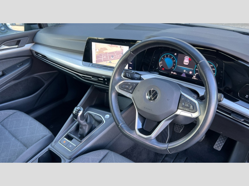 Volkswagen Golf 1.5 TSI Life 5dr Adaptive cruise control (ACC) with speed limiter and front assist (reacting to vehicles pedestrians and cyclists), Car2X communication, Digital cockpit pro - 10.25" high resolution TFT dash display screen with customizable menus and information, Driver alert system, Dynamic road sign display, eCall - Emergency call service for SOS calls to emergency response, Lane assist, Mobile phone interface with wireless inductive charging function, Power assisted speed sensitive steering, Speedo, rev counter, electronic odometer, trip, service interval display, exterior temperature and fuel gauge, Start/Stop function, USB-C ports in the front and rear centre console with increased charging performance, Warning buzzer and light for front seatbelts unfastened, Wireless app connect, Petrol Particulate Filter, XDS electronic differential lock for improved traction and handling, Premium USB cable in choice of either Apple or Android smartphone compatibility, Ambient lighting, exterior illuminated styling elements at the sides, Auto dimming rear view mirror, Automatic headlamp activation with Coming home and Leaving home feature, Automatic headlights, Body colour bumpers, Body colour door handles, Body colour door mirrors with integrated indicators, Body colour rear roof spoiler, Dynamic headlight range control, Electrically heated and adjustable door mirrors with memory feature, Front and rear electric windows, Heat insulating glass windscreen, Heated rear windscreen, High level 3rd brake light, Highway light, LED daytime running lights, LED headlights incorporating turn signals, LED License plate illumination, Rain sensor, Rear fog light on one side and reversing lights on both sides, Rear lights incorporating LED technology, Rear side wing doors, Rear windscreen washer and wiper with interval delay, Welcome light, 10 colour interior ambient lighting, 12V socket in front centre console, 12V socket in luggage compartment, 3 rear head restraints, 3 seat bench in 2nd row, Drivers and front passengers sun visors with vanity mirrors, Front centre armrest with storage compartment, Front cupholders x 2, Front passenger seat, Front passenger seat lumbar adjustment, Front reading lights x 2 incorporating LED technology, Glovebox, Height adjustable passenger seat, Height and reach adjustable steering wheel, Isofix child seat preparation for 2 rear child seats and front passenger seat, Luggage compartment lighting, Maze cloth upholstery, Removable luggage compartment cover, Split folding backrest with centre armrest and unsplit rear seat bench, Storm grey roof lining in recycled material, Woven fabric storage compartments in front and rear doors, 3 point height adj front seatbelts + pretensioners, 3 rear three point seatbelts, ABS, Child locks on rear doors, Driver and front passenger airbag with front passenger airbag deactivation, Drivers and front passengers safety optimised head restraints, Electronic parking brake with auto hold, ESC (Electronic Stability Control), Extended pedestrian protection measures, Front centre airbag, Front disc brakes, Front side airbags with curtain airbags, Rear disc brakes, Two tone horn, Tyre pressure monitoring system, Alarm with interior protection and deactivation via infotainment system, Electronic engine immobiliser, High gloss black centre console, Nature cross brushed decorative inserts, Soul dashboard