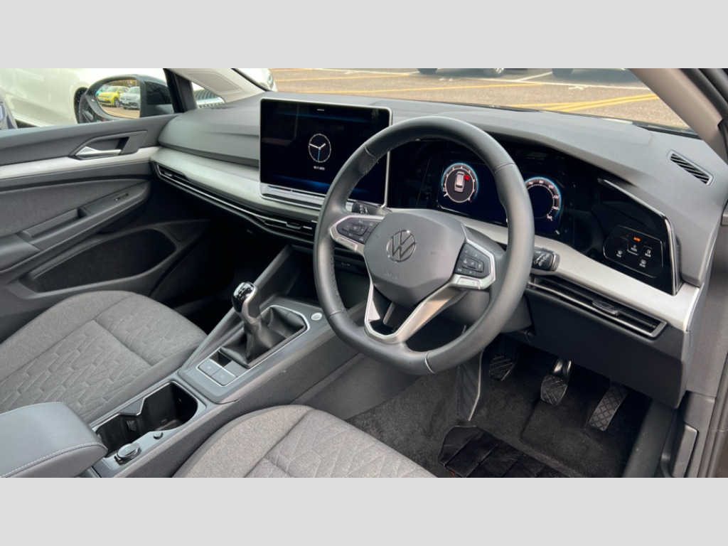 Volkswagen Golf 1.5 TSI Life 5dr Activated carbon canister, Adaptive cruise control (ACC) with speed limiter and front assist (reacting to vehicles pedestrians and cyclists), Advanced driver attention and drowsiness monitor, Car2X intelligent vehicle networking, Discover media navigation system, Driver alert system, Dynamic road sign display, E-Sim card for online connectivity, eCall emergency call system, Infotainment system with scalable module options Version 2, Multi-color Digital cockpit pro, selection of different info profile possible, Multifunction camera for distance control, Oncoming vehicle braking when turning including swerve support, Power assisted speed sensitive steering, Speedo, rev counter, electronic odometer, trip, service interval display, exterior temperature and fuel gauge, Voice assistant and voice enhancer with chat GPT, Warning signal and warning light for front and rear seatbelts not fastened, We connect plus preparation, We connect preparation, Wireless app connect, Start-stop system with battery regeneration (recuperation - energy recovery during braking), XDS electronic differential lock for improved traction and handling, 12.9" infotainment display, 2 USB C ports in front, 2 USB charging sockets on the centre console in the rear charging capacity upto 45W, Comfort telephony + wireless charging, without wireless aerial connection, DAB radio, Diversity antenna for FM reception, Gaming platform via car app, Mobile phone interface with inductive charging feature, 4 speed front wiper/interval delay, Auto headlights, Automatic headlamp activation with Coming home and Leaving home feature, Body colour door handles, Body colour door mirrors, Body colour rear roof spoiler, Chrome plated radiator grille inserts and light switch surrounds, Electrically heated and adjustable door mirrors with memory feature, Exterior mirrors convex on the left and aspherical on the right, Front and rear electric windows, Front windscreen washers, Heat insulating windshield made of laminated glass, High level 3rd brake light, Illuminated door handles, LED License plate illumination, LED separate daytime running light, Rear exhaust tailpipe, Rear fog light on one side and reversing lights on both sides, Rear side wing doors, Rear windscreen washer and wiper with interval delay, Remote electrically foldable door mirrors, puddle lights and reverse activated passenger's door mirror, Standard bumpers, Welcome light with surround lighting, 12V socket in front centre console, 12V socket in luggage compartment, 3 rear head restraints, 3 seat bench in 2nd row, Front centre armrest with storage compartment, Front cupholders x 2, Glovebox, Height and reach adjustable steering wheel, Isofix child seat preparation for 2 rear child seats and front passenger seat, Leather gearshift handle, Luggage compartment lighting, Rear cupholder and loadthough, Removable luggage compartment cover, Single front passenger seat, Split folding backrest with centre armrest and unsplit rear seat bench, Standard pedal cluster, Storm black instrument panel, Storm grey roof lining, Sun visors with illuminated vanity mirrors, 3 point height adj front seatbelts + pretensioners, 3 rear three point seatbelts, ABS, Autonomous emergency braking front assist with pedestrian and cyclist monitoring, Child locks on rear doors, Driver and front passenger airbag with front passenger airbag deactivation, Drivers and front passengers safety optimised head restraints, Electronic parking brake with auto hold, ESC (Electronic Stability Control), Extended pedestrian protection measures, Front disc brakes, Rear disc brakes, Two tone horn, Tyre pressure monitoring system, Volkswagen roadside assistance, Anti theft wheel bolts, Electronic engine immobiliser, Chrome plated air vent surround, Nature cross brushed decorative inserts for dashboard and front door panels