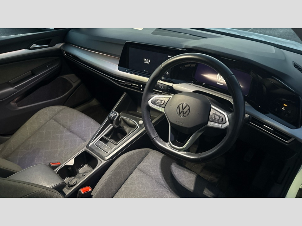 Volkswagen Golf 1.5 TSI Life 5dr Adaptive cruise control (ACC) with speed limiter and front assist (reacting to vehicles pedestrians and cyclists), Car2X communication, Digital cockpit pro - 10.25" high resolution TFT dash display screen with customizable menus and information, Driver alert system, Dynamic road sign display, eCall - Emergency call service for SOS calls to emergency response, Lane assist, Mobile phone interface with wireless inductive charging function, Multifunction camera for distance control, Power assisted speed sensitive steering, Speedo, rev counter, electronic odometer, trip, service interval display, exterior temperature and fuel gauge, Start/Stop function, USB-C ports in the front and rear centre console with increased charging performance, Warning buzzer and light for front seatbelts unfastened, Wireless app connect, Petrol Particulate Filter, XDS electronic differential lock for improved traction and handling, Premium USB cable in choice of either Apple or Android smartphone compatibility, Ambient lighting, exterior illuminated styling elements at the sides, Auto dimming rear view mirror, Automatic headlamp activation with Coming home and Leaving home feature, Automatic headlights, Body colour bumpers, Body colour door handles, Body colour door mirrors with integrated indicators, Body colour rear roof spoiler, Dynamic headlight range control, Electrically heated and adjustable door mirrors with memory feature, Front and rear electric windows, Heat insulating glass windscreen, Heated rear windscreen, High level 3rd brake light, Highway light, LED daytime running lights, LED headlights incorporating turn signals, LED License plate illumination, Rain sensor, Rear fog light on one side and reversing lights on both sides, Rear lights incorporating LED technology, Rear side wing doors, Rear windscreen washer and wiper with interval delay, Welcome light, 10 colour interior ambient lighting, 12V socket in front centre console, 12V socket in luggage compartment, 3 rear head restraints, 3 seat bench in 2nd row, Drivers and front passengers sun visors with vanity mirrors, Front centre armrest with storage compartment, Front cupholders x 2, Front passenger seat, Front passenger seat lumbar adjustment, Front reading lights x 2 incorporating LED technology, Glovebox, Height adjustable passenger seat, Height and reach adjustable steering wheel, Isofix child seat preparation for 2 rear child seats and front passenger seat, Luggage compartment lighting, Maze cloth upholstery, Removable luggage compartment cover, Split folding backrest with centre armrest and unsplit rear seat bench, Storm grey roof lining in recycled material, Woven fabric storage compartments in front and rear doors, 3 point height adj front seatbelts + pretensioners, 3 rear three point seatbelts, ABS, Child locks on rear doors, Driver and front passenger airbag with front passenger airbag deactivation, Drivers and front passengers safety optimised head restraints, Electronic parking brake with auto hold, ESC (Electronic Stability Control), Extended pedestrian protection measures, Front centre airbag, Front disc brakes, Front side airbags with curtain airbags, Rear disc brakes, Two tone horn, Tyre pressure monitoring system, Alarm with interior protection and deactivation via infotainment system, Electronic engine immobiliser, High gloss black centre console, Nature cross brushed decorative inserts, Soul dashboard
