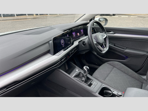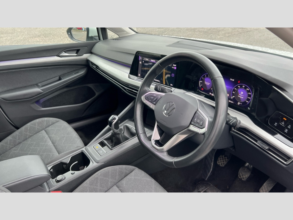 Volkswagen Golf 1.5 TSI Life 5dr Adaptive cruise control (ACC) with speed limiter and front assist (reacting to vehicles pedestrians and cyclists), Car2X communication, Digital cockpit pro - 10.25" high resolution TFT dash display screen with customizable menus and information, Driver alert system, Dynamic road sign display, eCall - Emergency call service for SOS calls to emergency response, Lane assist, Mobile phone interface with wireless inductive charging function, Multifunction camera for distance control, Power assisted speed sensitive steering, Speedo, rev counter, electronic odometer, trip, service interval display, exterior temperature and fuel gauge, Start/Stop function, USB-C ports in the front and rear centre console with increased charging performance, Warning buzzer and light for front seatbelts unfastened, Wireless app connect, Petrol Particulate Filter, XDS electronic differential lock for improved traction and handling, Premium USB cable in choice of either Apple or Android smartphone compatibility, Ambient lighting, exterior illuminated styling elements at the sides, Auto dimming rear view mirror, Automatic headlamp activation with Coming home and Leaving home feature, Automatic headlights, Body colour bumpers, Body colour door handles, Body colour door mirrors with integrated indicators, Body colour rear roof spoiler, Dynamic headlight range control, Electrically heated and adjustable door mirrors with memory feature, Front and rear electric windows, Heat insulating glass windscreen, Heated rear windscreen, High level 3rd brake light, Highway light, LED daytime running lights, LED headlights incorporating turn signals, LED License plate illumination, Rain sensor, Rear fog light on one side and reversing lights on both sides, Rear lights incorporating LED technology, Rear side wing doors, Rear windscreen washer and wiper with interval delay, Welcome light, 10 colour interior ambient lighting, 12V socket in front centre console, 12V socket in luggage compartment, 3 rear head restraints, 3 seat bench in 2nd row, Drivers and front passengers sun visors with vanity mirrors, Front centre armrest with storage compartment, Front cupholders x 2, Front passenger seat, Front passenger seat lumbar adjustment, Front reading lights x 2 incorporating LED technology, Glovebox, Height adjustable passenger seat, Height and reach adjustable steering wheel, Isofix child seat preparation for 2 rear child seats and front passenger seat, Luggage compartment lighting, Maze cloth upholstery, Removable luggage compartment cover, Split folding backrest with centre armrest and unsplit rear seat bench, Storm grey roof lining in recycled material, Woven fabric storage compartments in front and rear doors, 3 point height adj front seatbelts + pretensioners, 3 rear three point seatbelts, ABS, Child locks on rear doors, Driver and front passenger airbag with front passenger airbag deactivation, Drivers and front passengers safety optimised head restraints, Electronic parking brake with auto hold, ESC (Electronic Stability Control), Extended pedestrian protection measures, Front centre airbag, Front disc brakes, Front side airbags with curtain airbags, Rear disc brakes, Two tone horn, Tyre pressure monitoring system, Alarm with interior protection and deactivation via infotainment system, Electronic engine immobiliser, High gloss black centre console, Nature cross brushed decorative inserts, Soul dashboard