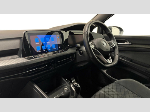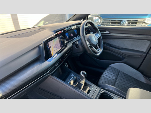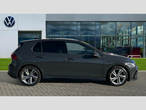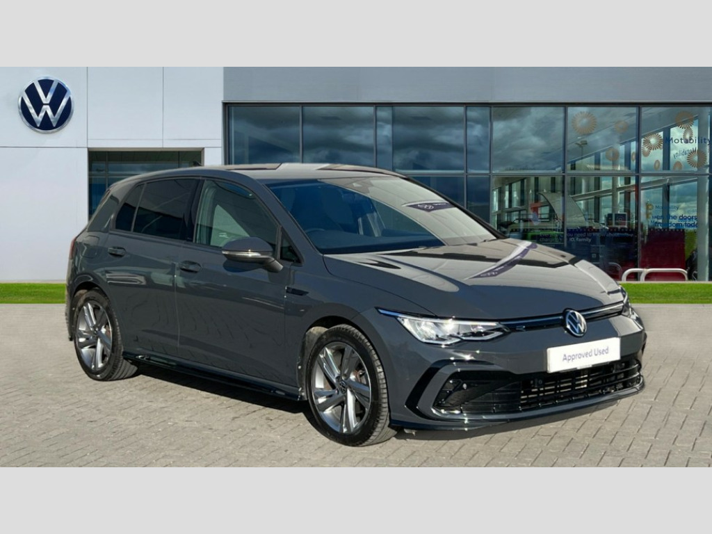 Volkswagen Golf 1.5 TSI R-Line 5dr Adaptive cruise control (ACC) with speed limiter and front assist (reacting to vehicles pedestrians and cyclists), Car2X communication, Digital cockpit pro - 10.25" high resolution TFT dash display screen with customizable menus and information, Driver alert system, Driver profile selection, Dynamic road sign display, eCall - Emergency call service for SOS calls to emergency response, Lane assist, Mobile phone interface with wireless inductive charging function, Progressive steering, Speedo, rev counter, electronic odometer, trip, service interval display, exterior temperature and fuel gauge, Start/Stop function, USB-C ports in the front and rear centre console with increased charging performance, Warning buzzer and light for front seatbelts unfastened, Wireless app connect, Petrol Particulate Filter, XDS electronic differential lock for improved traction and handling, Premium USB cable in choice of either Apple or Android smartphone compatibility, Ambient lighting, exterior illuminated styling elements at the sides, Auto dimming rear view mirror, Automatic headlamp activation with Coming home and Leaving home feature, Automatic headlights, Body colour door handles, Body colour door mirrors with integrated indicators, Body colour rear roof spoiler, Dynamic headlight range control, Electrically heated and adjustable door mirrors with memory feature, Front and rear electric windows, Heat insulating glass windscreen, Heated rear windscreen, High level 3rd brake light, Highway light, LED daytime running lights, LED headlights incorporating turn signals, LED License plate illumination, R Line body coloured bumpers, Rain sensor, Rear fog light on one side and reversing lights on both sides, Rear lights incorporating LED technology, Rear side wing doors, Rear tinted glass 65% light absorbing from B pillar backwards, Rear windscreen washer and wiper with interval delay, Welcome light, 12V socket in front centre console, 12V socket in luggage compartment, 3 rear head restraints, 3 seat bench in 2nd row, Ambient lighting - Customisable 30 colour ambient lighting, Black roof lining, Brushed stainless steel pedals, Chrome plated surround to electric mirror button, window switch and air vent surrounds, Drivers and front passengers sun visors with vanity mirrors, Front + rear carpet mats, Front centre armrest with storage compartment, Front cupholders x 2, Front passenger seat, Front reading lights x 2 incorporating LED technology, Front seat lumbar support adjuster, Front sports seats, Glovebox, Height adjustable front seats, Height and reach adjustable steering wheel, Isofix child seat preparation for 2 rear child seats and front passenger seat, Luggage compartment lighting, R Line door and side trim panel, R Line front seats integrated head restraints, R-Line leather wrapped multi function sports heated steering wheel, Removable luggage compartment cover, Sardegna cloth upholstery with front and outer rear seats Art Velour inner sides of bolsters, Split folding backrest with centre armrest and unsplit rear seat bench, Woven fabric storage compartments in front and rear doors, 3 point height adj front seatbelts + pretensioners, 3 rear three point seatbelts, ABS, Child locks on rear doors, Driver and front passenger airbag with front passenger airbag deactivation, Drivers and front passengers safety optimised head restraints, Electronic parking brake with auto hold, ESC (Electronic Stability Control), Extended pedestrian protection measures, Front and rear passengers curtain airbag system including front side airbags, Front disc brakes, Rear disc brakes, Two tone horn, Tyre pressure monitoring system, Alarm with interior protection and deactivation via infotainment system, Electronic engine immobiliser, Carbon grey decorative inserts in dash and front door trim panels, High gloss black centre console, Soul dashboard