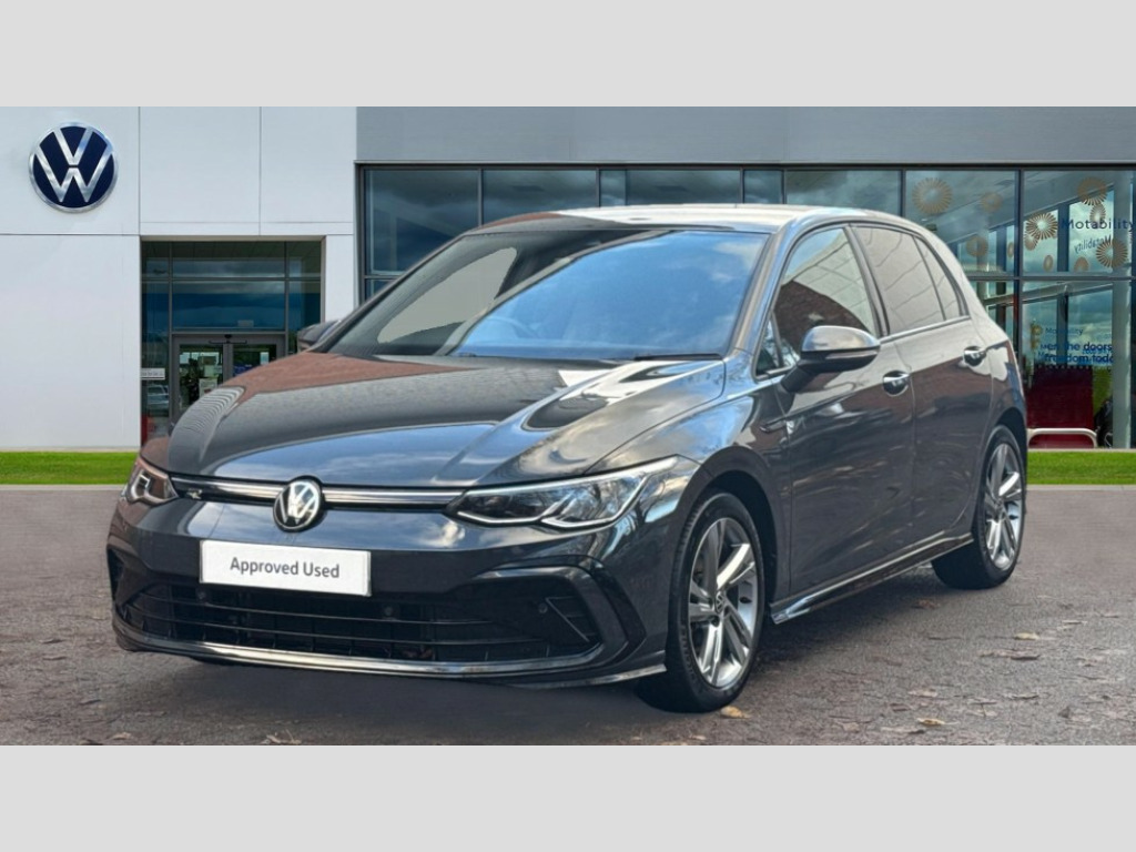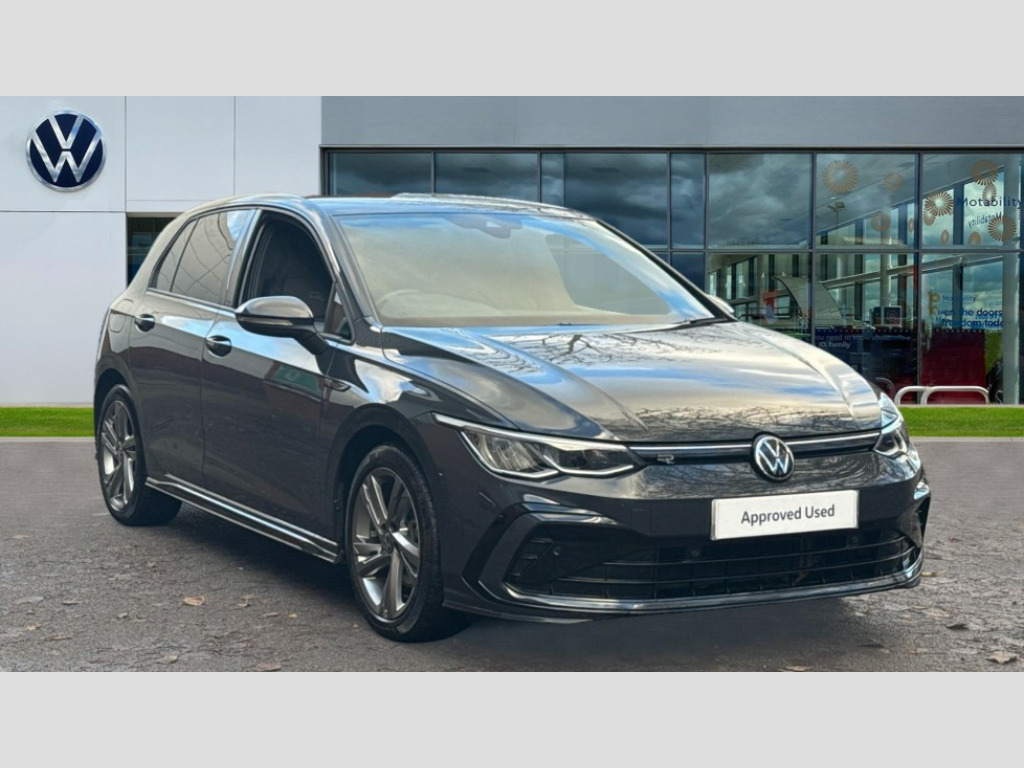Volkswagen Golf 1.5 TSI R-Line 5dr Adaptive cruise control (ACC) with speed limiter and front assist (reacting to vehicles pedestrians and cyclists), Car2X communication, Digital cockpit pro - 10.25" high resolution TFT dash display screen with customizable menus and information, Driver alert system, Driver profile selection, Dynamic road sign display, eCall - Emergency call service for SOS calls to emergency response, Lane assist, Mobile phone interface with wireless inductive charging function, Progressive steering, Speedo, rev counter, electronic odometer, trip, service interval display, exterior temperature and fuel gauge, Start/Stop function, USB-C ports in the front and rear centre console with increased charging performance, Warning buzzer and light for front seatbelts unfastened, Wireless app connect, Petrol Particulate Filter, XDS electronic differential lock for improved traction and handling, Premium USB cable in choice of either Apple or Android smartphone compatibility, Ambient lighting, exterior illuminated styling elements at the sides, Auto dimming rear view mirror, Automatic headlamp activation with Coming home and Leaving home feature, Automatic headlights, Body colour door handles, Body colour door mirrors with integrated indicators, Body colour rear roof spoiler, Dynamic headlight range control, Electrically heated and adjustable door mirrors with memory feature, Front and rear electric windows, Heat insulating glass windscreen, Heated rear windscreen, High level 3rd brake light, Highway light, LED daytime running lights, LED headlights incorporating turn signals, LED License plate illumination, R Line body coloured bumpers, Rain sensor, Rear fog light on one side and reversing lights on both sides, Rear lights incorporating LED technology, Rear side wing doors, Rear tinted glass 65% light absorbing from B pillar backwards, Rear windscreen washer and wiper with interval delay, Welcome light, 12V socket in front centre console, 12V socket in luggage compartment, 3 rear head restraints, 3 seat bench in 2nd row, Ambient lighting - Customisable 30 colour ambient lighting, Black roof lining, Brushed stainless steel pedals, Chrome plated surround to electric mirror button, window switch and air vent surrounds, Drivers and front passengers sun visors with vanity mirrors, Front + rear carpet mats, Front centre armrest with storage compartment, Front cupholders x 2, Front passenger seat, Front reading lights x 2 incorporating LED technology, Front seat lumbar support adjuster, Front sports seats, Glovebox, Height adjustable front seats, Height and reach adjustable steering wheel, Isofix child seat preparation for 2 rear child seats and front passenger seat, Luggage compartment lighting, R Line door and side trim panel, R Line front seats integrated head restraints, R-Line leather wrapped multi function sports heated steering wheel, Removable luggage compartment cover, Sardegna cloth upholstery with front and outer rear seats Art Velour inner sides of bolsters, Split folding backrest with centre armrest and unsplit rear seat bench, Woven fabric storage compartments in front and rear doors, 3 point height adj front seatbelts + pretensioners, 3 rear three point seatbelts, ABS, Child locks on rear doors, Driver and front passenger airbag with front passenger airbag deactivation, Drivers and front passengers safety optimised head restraints, Electronic parking brake with auto hold, ESC (Electronic Stability Control), Extended pedestrian protection measures, Front and rear passengers curtain airbag system including front side airbags, Front disc brakes, Rear disc brakes, Two tone horn, Tyre pressure monitoring system, Alarm with interior protection and deactivation via infotainment system, Electronic engine immobiliser, Carbon grey decorative inserts in dash and front door trim panels, High gloss black centre console, Soul dashboard