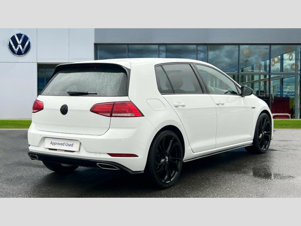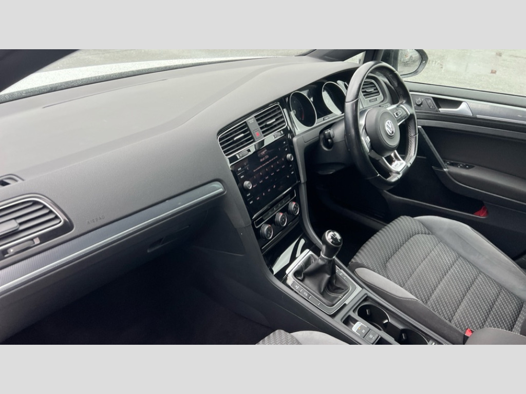 Volkswagen Golf 2.0 TDI R-Line 5dr 'Lights On' Reminder warning buzzer, ACC - Adaptive cruise control with front assist, forward collision warning, distance monitoring, city emergency brake and speed limiter, Bluetooth telephone and audio connection for compatible devices, Brake pad wear indicator warning light, Driver alert system, Driver profile selection, Driving Mode Selection with four preset modes - Eco, normal, sport or individual modes, Instrument cluster in white, Misfuelling protection device, Multifunction computer with visual gear change recommendation for fuel consumption, Power assisted speed sensitive electro-mechanical steering, Push tank flap, Speed limit display, Speedo, rev counter, electronic odometer, trip, service interval display, exterior temperature and fuel gauge, Startup screen with R-Line logo, Stop/start system, Warning buzzer and light for front seatbelts unfastened, Battery regeneration during braking, Diesel particulate filter, Lowered sports suspension, XDS electronic differential lock, Composition media system, DAB Digital radio receiver, MP3/WMA compatability, Multi device interface (MDI) with USB connection, Premium USB cable in choice of either Apple or Android smartphone compatibility, SD card slot, SMS Functionality, USB and SD card connectivity, Black front air intake and radiator grille with chrome insert, Body colour bumpers, Body colour door handles, Body colour door mirrors with integrated indicators, Body colour rear roof spoiler, Dusk sensor + automatic driving lights, Electric front windows, Electric rear windows, Electrically adjustable and heated door mirrors, Fully galvanised body, Glossy black R-Line specific louver ventilation, Heated rear windscreen, High level 3rd brake light incorporating LED Technology, LED daytime running lights, Left and right chrome effect trapezoid dummy exhaust tailpipe surrounds, Radiator grille with R-Line logo, Rear fog lamp, Rear tinted glass 65% light absorbing from B pillar backwards, Rear window aerial, Rear window wash/wipe with intermittent wipe, Reflectors in all doors, Shiny black aerofoil downside, Sill extensions, Sporty diffuser painted black and non-visible exhaust tailpipes, Stainless steel door sill protection, Windscreen wipers/ intermittent wipe + 4 position delay, 12V socket in luggage compartment, 3 rear headrests, 4 load lashing points in luggage compartment, 60/40 split folding rear seat backrest, Bag hook in luggage compartment x 2, Black headlining, Cooled glovebox, Dust/pollen filter, Front + rear carpet mats, Front centre armrest with storage compartment and two rear air vents, Front seat back storage pockets, Grab handles front x 2, rear x 2 with integrated coat hooks, Height and reach adjustable steering wheel, Illuminated vanity mirrors, Instrument lighting white adjustable panel illumination, Interior light delay, Isofix preparation for 2 rear child seats, Leather gear knob and handbrake grip, Load through provision with rear centre armrest and cupholders x2, Luggage compartment lighting, Multifunction sports leather steering wheel with R-Line logo and decorative seams in crystal grey, Overhead storage box, R Line badge, Stainless steel pedals, Storage box in luggage compartment, Storage compartment in roof console with cover, Storage compartments in front doors, Storage compartments in rear doors, Stowable luggage compartment cover, Sun visors, Variable boot floor, height adjustable and removable, Ambient lighting pack - Golf, Convenience Pack - Golf, Light and Sight pack - Golf, Mirror pack - Golf, R Line Styling pack - Golf, 3 rear three point seatbelts, Airbags - Driver's and front passenger's, curtain airbag, Driver's knee, front side impact and passenger's airbag deactivation switch, Anti-lock Braking System (ABS) with Hydraulic Brake Assist (HBA), Automatic post collision braking system, Child locks on rear doors, Driver/Passenger optimised head restraints, Electronic parking brake with auto hold, Electronic stability control (ESC) including Electronic differential lock (EDL) and ASR (Traction control) with deactivation via infotainment system, Front ventilated disc brakes and rear disc brakes, Pre crash preventive occupant protection, Three point height adjustable front seatbelts with tensioners, Tyre pressure loss indicator, Alarm with interior protection and deactivation via infotainment system, Electronic engine immobiliser, Remote central locking with 2 remote folding keys, Chrome plated air vent surround, Chrome plated electric mirror adjustment light switch surround, Dark Diamond decorative inserts in dash and door panels, Piano black centre console, Steel space saver spare wheel