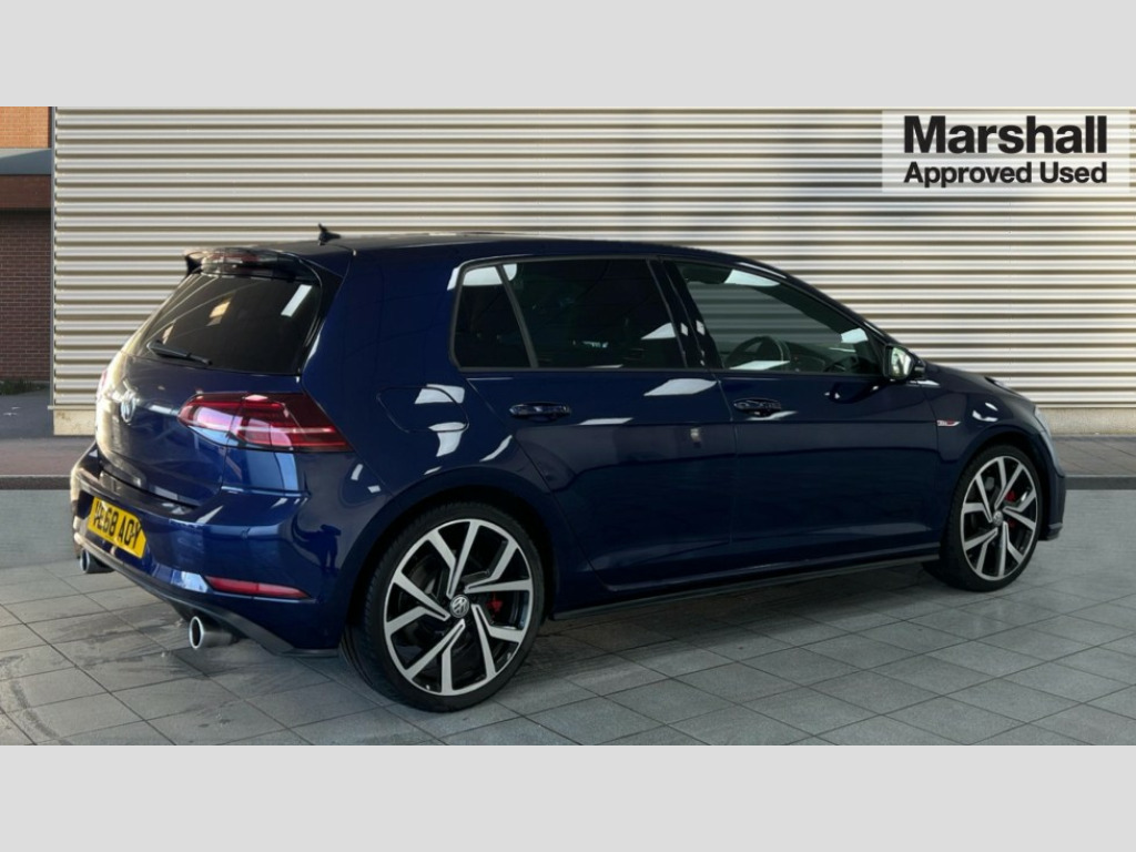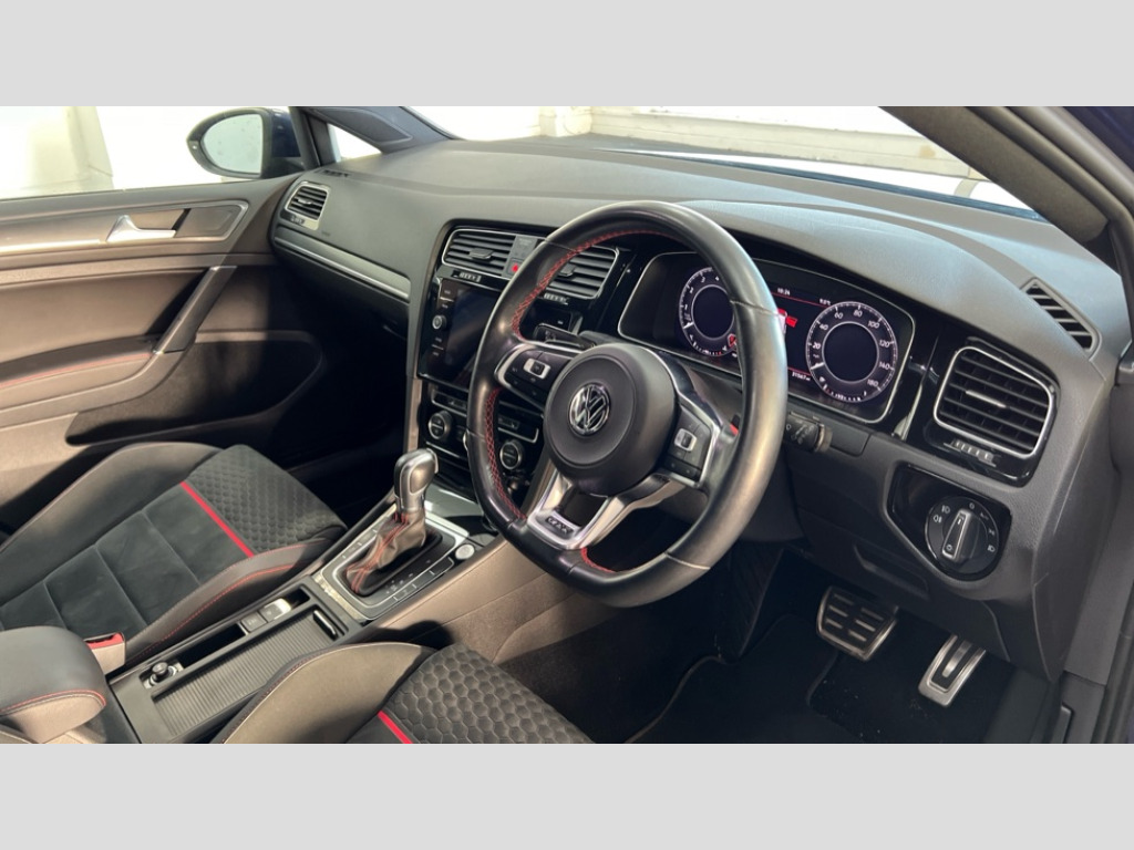 Volkswagen Golf 2.0 TSI 245 GTI Performance 5dr DSG 'Lights On' Reminder warning buzzer, ACC - Adaptive cruise control with front assist, forward collision warning, distance monitoring, city emergency brake and speed limiter, Active information display - 12.3" high resolution TFT display, Bluetooth telephone and audio connection for compatible devices, Brake pad wear indicator warning light, Car information display, Driver alert system, Driver profile selection, Driving Mode Selection with four preset modes - Eco, normal, sport or individual modes, Front assist, radar sensor controlled distance monitor, city emergency braking + predictive pedestrian protection, Front assistant collision mitigation, Instrument cluster in white, Multifunction computer with visual gear change recommendation for fuel consumption, Power assisted speed sensitive electro-mechanical steering, Rear view camera, Speedo, rev counter, electronic odometer, trip, service interval display, exterior temperature and fuel gauge, Stop/start system, Ultrasonic front and rear optical and audible parking sensors, Warning buzzer and light for front seatbelts unfastened, Battery regeneration during braking, Limited slip differential, Lowered sports suspension, Composition media system, DAB Digital radio receiver, MDI multi device interface, MP3/WMA compatability, Multi device interface (MDI) with USB connection, Premium USB cable in choice of either Apple or Android smartphone compatibility, SD card slot, SMS Functionality, Title and cover art display, 4 X 20W output, USB connection and socket, USB and SD card connectivity, Volkswagen media control, 3D-LED tinted rear light clusters with indicator sweep function, Automatic dimming rear view mirror/rain sensor, Black rear diffuser, Body colour door handles, Body colour door mirrors with integrated indicators, Body colour rear roof spoiler, Body colour sports bumpers, Chrome trimmed front air intake surrounds, Darkened rear light clusters, Electric front windows, Electric rear windows, Electrically adjustable and heated door mirrors, Extended sill strips flared, Glavanised body, Heated rear windscreen, High level 3rd brake light incorporating LED Technology, Honeycomb radiator grille - black, LED front fog lights, Range adjustable headlights via infotainment system with LED daytime running lights, Rear fog lamp, Rear number plate lights incorporating LED technology, Rear window aerial, Rear window wash/wipe with intermittent wipe, Reflectors in all doors, Remote electrically foldable door mirrors, door mirror puddle lights and reverse activated kerb-view adjustment on passengers door mirror, Twin exhaust tailpipe, Windscreen wipers/ intermittent wipe + 4 position delay, 12V socket in luggage compartment, 3 rear headrests, 4 load lashing points in luggage compartment, 60/40 split folding rear seat backrest, Bag hook in luggage compartment x 2, Black roof lining, Climate control - 2 zone electronic air conditioning with automatic air recirculation and allergy filter, Cooled glovebox, Dust/pollen filter, Front + rear carpet mats, Front centre armrest with storage compartment and two rear air vents, Front footwell lights, Front reading lights, Front seat back storage pockets, Grab handles front x 2, rear x 2 with integrated coat hooks, Height and reach adjustable steering wheel, Illuminated door sills, Illuminated vanity mirrors, Instrument lighting white adjustable panel illumination, Interior light delay, Isofix preparation for 2 rear child seats, LED front and rear reading lights, Load through provision with rear centre armrest and cupholders x2, Luggage compartment light, Multi-function leather steering wheel with red stitching, Multifunction leather steering wheel with leather trimmed gear knob including paddle shift, Overhead storage box, Stainless steel pedals, Storage box in luggage compartment, Storage compartment in roof console with cover, Storage compartments in front doors, Storage compartments in rear doors, Stowable luggage compartment cover, Sun visors, Three spoke multi-function leather trimmed steering wheel and gearknob, Variable boot floor, height adjustable and removable, Ambient lighting pack - Golf, Convenience Pack - Golf, Light and Sight pack - Golf, Mirror pack - Golf, 3 rear three point seatbelts, Airbags - Driver's and front passenger's, curtain airbag, Driver's knee, front side impact and passenger's airbag deactivation switch, Anti-lock Braking System (ABS) with Hydraulic Brake Assist (HBA), Automatic post collision braking system, Child locks on rear doors, Driver/Passenger optimised head restraints, Electronic parking brake with auto hold, Electronic stability control (ESC) including Electronic differential lock (EDL) and ASR (Traction control) with deactivation via infotainment system, Pre crash preventive occupant protection, Red brake calipers, Three point height adjustable front seatbelts with tensioners, Tyre pressure loss indicator, Uprated front disc brakes + calipers, Alarm with interior protection and deactivation via infotainment system, Electronic engine immobiliser, Keyless entry, Remote central locking with 2 remote folding keys, Chrome plated air vent surround, Chrome plated electric mirror adjustment light switch surround, Honeycomb black decorative inserts, Piano black centre console, Space saver spare wheel