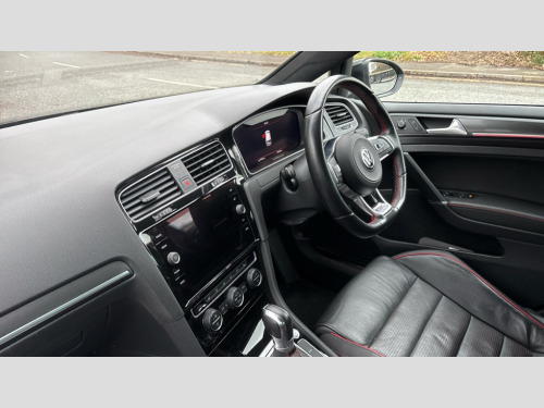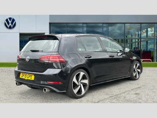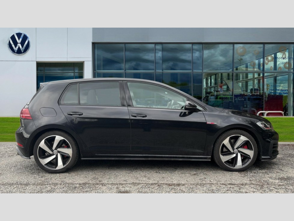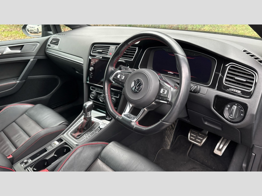 Volkswagen Golf 2.0 TSI 245 GTI Performance 5dr DSG 'Lights On' Reminder warning buzzer, ACC - Adaptive cruise control with front assist, forward collision warning, distance monitoring, city emergency brake and speed limiter, Bluetooth telephone and audio connection for compatible devices, Brake pad wear indicator warning light, Driver alert system, Driver profile selection, Driving Mode Selection with four preset modes - Eco, normal, sport or individual modes, Instrument cluster in white, Multifunction computer with visual gear change recommendation for fuel consumption, Power assisted speed sensitive electro-mechanical steering, Push tank flap, Rear view camera, Speedo, rev counter, electronic odometer, trip, service interval display, exterior temperature and fuel gauge, Stop/start system, Warning buzzer and light for front seatbelts unfastened, Battery regeneration during braking, Limited slip differential, Lowered sports suspension, XDS electronic differential lock, Composition media system, DAB Digital radio receiver, MP3/WMA compatability, Premium USB cable in choice of either Apple or Android smartphone compatibility, SD card slot, SMS Functionality, Volkswagen media control, 3D-LED tinted rear light clusters with indicator sweep function, Black rear diffuser, Body colour door handles, Body colour door mirrors with integrated indicators, Body colour rear roof spoiler, Body colour sports bumpers, Electric front windows, Electric rear windows, Electrically adjustable and heated door mirrors, Fully galvanised body, GTI logo in red on front and back, GTI logo lettering on front wings on right and left, Heated rear windscreen, High level 3rd brake light incorporating LED Technology, Honeycomb radiator grille - black, LED daytime running lights, LED front fog lights with static cornering light function, Rear fog lamp, Rear window aerial, Rear window wash/wipe with intermittent wipe, Reflectors in all doors, Shiny black aerofoil downside, Sill extensions, Twin exhaust tailpipe, Windscreen wipers/ intermittent wipe + 4 position delay, 12V socket in luggage compartment, 3 rear headrests, 4 load lashing points in luggage compartment, 60/40 split folding rear seat backrest, Bag hook in luggage compartment x 2, Black headlining, Climate control - 2 zone electronic air conditioning with automatic air recirculation and allergy filter, Cooled glovebox, Dust/pollen filter, Front + rear carpet mats, Front centre armrest with storage compartment and two rear air vents, Front seat back storage pockets, Grab handles front x 2, rear x 2 with integrated coat hooks, Height and reach adjustable steering wheel, Illuminated door sills, Illuminated vanity mirrors, Instrument lighting white adjustable panel illumination, Interior light delay, Isofix preparation for 2 rear child seats, Leather gear knob and handbrake grip, Load through provision with rear centre armrest and cupholders x2, Luggage compartment lighting, Multifunction leather steering wheel with GTI logo and selector lever boot grip with red stitching including paddle shift, Overhead storage box, Stainless steel pedals, Storage box in luggage compartment, Storage compartment in roof console with cover, Storage compartments in front doors, Storage compartments in rear doors, Stowable luggage compartment cover, Sun visors, Variable boot floor, height adjustable and removable, Ambient lighting pack - Golf, Convenience Pack - Golf, Light and Sight pack - Golf, Mirror pack - Golf, 3 rear three point seatbelts, Airbags - Driver's and front passenger's, curtain airbag, Driver's knee, front side impact and passenger's airbag deactivation switch, Anti-lock Braking System (ABS) with Hydraulic Brake Assist (HBA), Automatic post collision braking system, Child locks on rear doors, Driver/Passenger optimised head restraints, Electronic parking brake with auto hold, Electronic stability control (ESC) including Electronic differential lock (EDL) and ASR (Traction control) with deactivation via infotainment system, Front ventilated disc brakes and rear disc brakes, Pre crash preventive occupant protection, Red brake calipers, Three point height adjustable front seatbelts with tensioners, Tyre pressure loss indicator, Alarm with interior protection and deactivation via infotainment system, Electronic engine immobiliser, Keyless entry with start/stop button on centre console, Remote central locking with 2 remote folding keys, Chrome plated air vent surround, Chrome plated electric mirror adjustment light switch surround, Honeycomb black decorative inserts, Piano black centre console, Steel space saver spare wheel