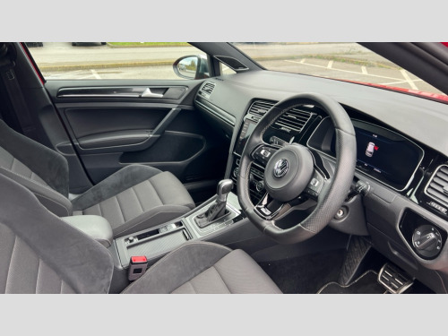 Volkswagen Golf 2.0 TSI 310 R 5dr 4MOTION DSG 'Lights On' Reminder warning buzzer, 8" touch screen, Adaptive Cruise Control with pedestrian detection and speed limiter, App-Connect, Bluetooth hands free telephone connection, Brake pad wear indicator warning light, Driver alert system, Driver profile selection, Exterior temperature gauge, Front assistant collision mitigation, Instrument cluster in white, Multifunction computer, Progressive power assisted steering, Rev counter, Trip and service interval display, Ultrasonic front and rear optical and audible parking sensors, Warning buzzer and light for front seatbelts unfastened, Anti-tramp function, Limited slip differential, Lowered sports suspension, CD/MP3/WMA, USB and SD card reader, aux-in, Composition media system, DAB Digital radio, 3D-LED-SBBR with sweeping indicator, Auto dimming rear view mirror, Automatic coming/leaving home lighting function, Automatic headlights, Black rear diffuser, Body colour door handles, Body colour rear roof spoiler, Body colour sports bumpers, Electric front windows, Electric rear windows, Electrically adjustable and heated door mirrors, Heated rear windscreen, Honeycomb radiator grille - black, LED daytime running lights, LED rear lights, Rain sensor, Rear windscreen washer and wiper with interval delay, 12V socket in luggage compartment, 3 rear headrests, 3 spoke steering wheel, 60/40 split folding rear seat, Air conditioning - 2 zone electronic climate control, Bag hook in luggage compartment, Black headlining, Boot lashing points, Chrome pedals, Cooled glovebox, Courtesy light delay, Cover for storage compartment in centre, Dust/pollen filter, Front + rear carpet mats, Front centre armrest with storage box and rear air vents, Front passenger seat height adjust, Front seat back storage pockets, Gearshift paddles, Grab handles, Height adjustable driver's seat, Height/reach adjust steering wheel, Illuminated door sills, Illuminated vanity mirrors, Isofix preparation for 2 rear child seats, Load through provision with rear centre armrest and cupholders x2, Luggage compartment cover, Luggage compartment lighting, Multifunction leather steering wheel with grey stitching leather trimmed gear knob including paddle shift, Overhead storage box, Storage box in luggage compartment, Storage compartments in doors, Sun visors, Variable boot floor, height adjustable and removable, Ambient lighting pack - Golf, Mirror pack - Golf, 3 point height adj front seatbelts + pretensioners, 3 rear 3 point seatbelts, ABS, Automatic post collision braking, Black brake calipers, Child locks on rear doors, Driver/Front Passenger airbags, Driver/Passenger whiplash optimised head restraints, Drivers knee airbag, Electronic parking brake with auto hold, ESP with EDL + ASR, Front and rear curtain airbags, Front passenger airbag deactivation, Front side airbags, Pre crash system, Tyre pressure monitor, Alarm with interior protection, Electronic engine immobiliser, Remote central locking with 2 remote folding keys, Carbon touch decorative inserts, Chrome-plated light switch surround, Piano black centre console, Space saver spare wheel