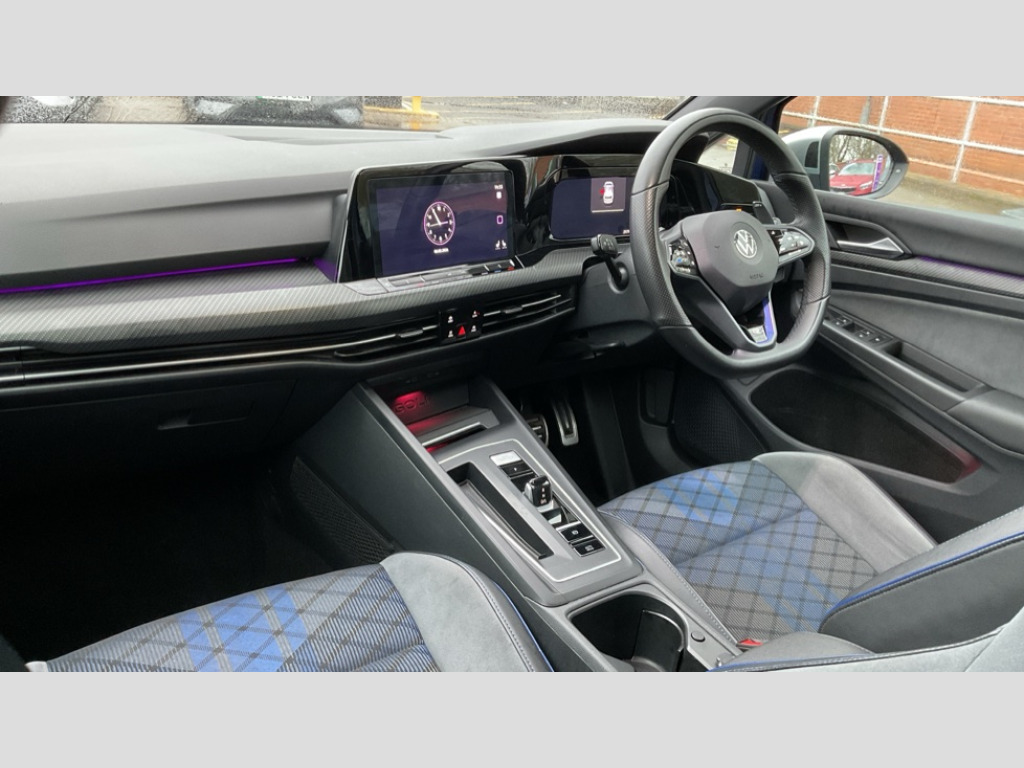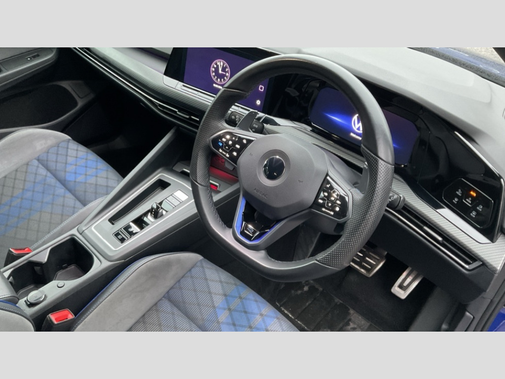 Volkswagen Golf 2.0 TSI 320 R 4Motion 5dr DSG Adaptive cruise control (ACC) with speed limiter and front assist (reacting to vehicles pedestrians and cyclists), Car2X communication, Digital cockpit pro - 10.25" high resolution TFT dash display screen with customizable menus and information, Driver alert system, Dynamic road sign display, eCall - Emergency call service for SOS calls to emergency response, Lane assist, Lane change assistant, Mobile phone interface with wireless inductive charging function, PAS, Speedo, rev counter, electronic odometer, trip, service interval display, exterior temperature and fuel gauge, Start/Stop function, Travel assist with emergency side assist with electrically foldable door mirrors, Warning buzzer and light for front seatbelts unfastened, Wireless app connect, 4Motion 4 wheel driver, Front differential lock, Petrol Particulate Filter, XDS electronic differential lock for improved traction and handling, Premium USB cable in choice of either Apple or Android smartphone compatibility, Ambient lighting, exterior illuminated styling elements at the sides, Auto dimming rear view mirror, Automatic headlamp activation with Coming home and Leaving home feature, Automatic headlights, Body colour bumpers, Body colour door handles, Body colour rear roof spoiler, Front and rear electric windows, Heat insulating glass windscreen, Heated rear windscreen, High level 3rd brake light, Highway light, Illuminated front grille, IQ.Light - LED Matrix headlights, dynamic headlight control with advanced high beam control matrix dipped main beam + LED DRL + 22 LED lights, LED front fog lights with 5 honeycomb design, LED License plate illumination, LED rear combination lamp inlcuding dynamic turn signal, Matt chrome effect door mirrors with integrated indicators, Rain sensor, Rear fog light on one side and reversing lights on both sides, Rear side wing doors, Rear tinted glass 65% light absorbing from B pillar backwards, Rear windscreen washer and wiper with interval delay, Remote electrically heated, adjustable and foldable door mirrors, including door mirror puddle lights and reverse activated kerb-view adjustment on pa, Welcome light, 12V socket in front centre console, 12V socket in luggage compartment, 3 rear head restraints, 3 seat bench in 2nd row, 3 zone climate with controls in the rear, Aluminium gear knob, Ambient lighting - Customisable 30 colour ambient lighting, Black roof lining, Brushed stainless steel pedals, Centre console, Chrome plated surround to electric mirror button, window switch and air vent surrounds, Drivers and front passengers sun visors with vanity mirrors, Front + rear carpet mats, Front centre armrest with storage compartment, Front cupholders x 2, Front passenger seat, Front reading lights x 2 incorporating LED technology, Front seat lumbar support adjuster, Front sports seats, Glovebox, Height adjustable front seats, Height and reach adjustable steering wheel, Isofix child seat preparation for 2 rear child seats and front passenger seat, Luggage compartment lighting, R leather wrapped multi function sports heated steering wheel with extended paddle shift, Removable luggage compartment cover, Split folding backrest with centre armrest and unsplit rear seat bench, Woven fabric storage compartments in front and rear doors, R styling pack - Golf, 3 point height adj front seatbelts + pretensioners, 3 rear three point seatbelts, ABS, Blue brake callipers in front with R logo, Child locks on rear doors, Driver and front passenger airbag with front passenger airbag deactivation, Drivers and front passengers safety optimised head restraints, Electronic parking brake with auto hold, ESC (Electronic Stability Control), Extended pedestrian protection measures, Front and rear passengers curtain airbag system including front side airbags, Front disc brakes, Rear disc brakes, Two tone horn, Tyre pressure monitoring system, Alarm with interior protection and deactivation via infotainment system, Electronic engine immobiliser, Keyless entry with start/stop button on centre console, Black metal chrome decorative inserts in dash and front door trim panels, Soul dashboard, Tyre mobility kit Includes 12V compressor and tyre sealant