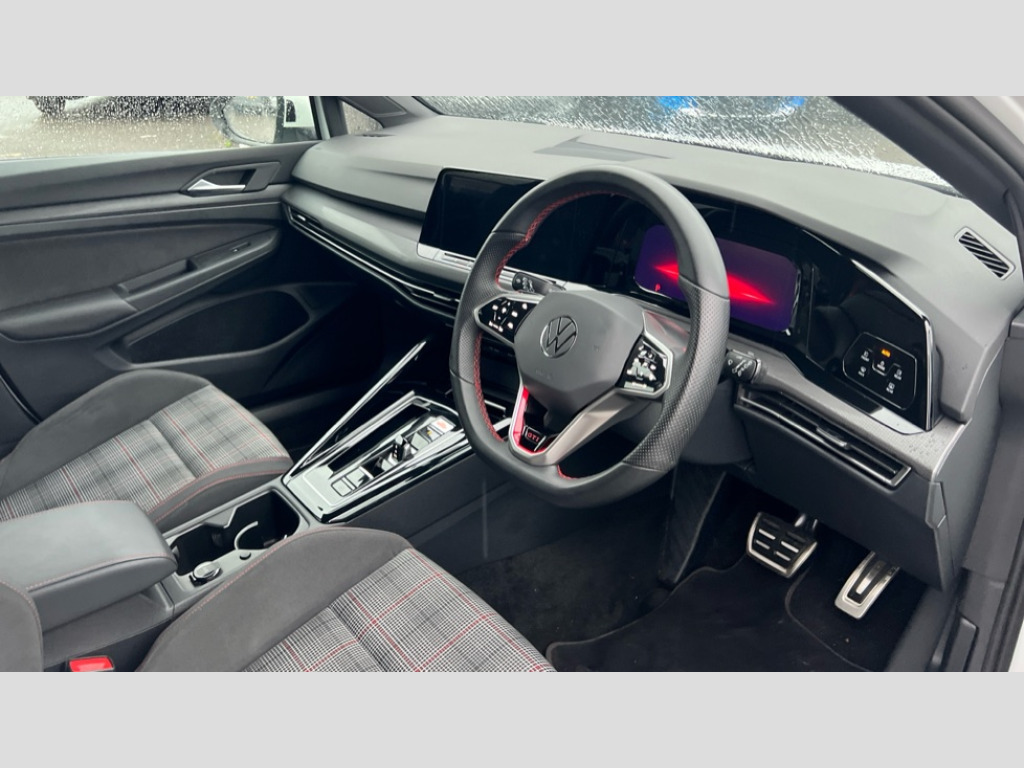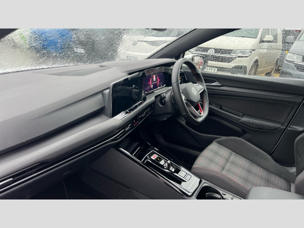 Volkswagen Golf 2.0 TSI GTI 5dr DSG Adaptive cruise control (ACC) with speed limiter and front assist (reacting to vehicles pedestrians and cyclists), Car2X communication, Digital cockpit pro - 10.25" high resolution TFT dash display screen with customizable menus and information, Driver alert system, Dynamic road sign display, eCall - Emergency call service for SOS calls to emergency response, Lane assist, Lane change assistant, Mobile phone interface with wireless inductive charging function, Multifunction camera for distance control, PAS, Speedo, rev counter, electronic odometer, trip, service interval display, exterior temperature and fuel gauge, Start/Stop function, Travel assist with emergency side assist with electrically foldable door mirrors, USB-C ports in the front and rear centre console with increased charging performance, Warning buzzer and light for front seatbelts unfastened, Wireless app connect, Front differential lock, Petrol Particulate Filter, XDS electronic differential lock for improved traction and handling, Premium USB cable in choice of either Apple or Android smartphone compatibility, Ambient lighting, exterior illuminated styling elements at the sides, Auto dimming rear view mirror, Automatic headlamp activation with Coming home and Leaving home feature, Automatic headlights, Body colour bumpers, Body colour door handles, Body colour door mirrors with integrated indicators, Body colour rear roof spoiler, Chrome plated tailpipes (1 either side), Front and rear electric windows, GTI style bumpers, Heat insulating glass windscreen, Heated rear windscreen, High level 3rd brake light, Highway light, Illuminated front grille, IQ.Light - LED Matrix headlights, dynamic headlight control with advanced high beam control matrix dipped main beam + LED DRL + 22 LED lights, LED front fog lights with 5 honeycomb design, LED License plate illumination, LED rear combination lamp inlcuding dynamic turn signal, Rain sensor, Rear fog light on one side and reversing lights on both sides, Rear side wing doors, Rear tinted glass 65% light absorbing from B pillar backwards, Rear windscreen washer and wiper with interval delay, Remote electrically heated, adjustable and foldable door mirrors, including door mirror puddle lights and reverse activated kerb-view adjustment on pa, Welcome light, 12V socket in front centre console, 12V socket in luggage compartment, 3 rear head restraints, 3 seat bench in 2nd row, 3 zone climate with controls in the rear, Aluminium gear knob, Ambient lighting - Customisable 30 colour ambient lighting, Brushed stainless steel pedals, Chrome plated surround to electric mirror button, window switch and air vent surrounds, Drivers and front passengers sun visors with vanity mirrors, Front + rear carpet mats, Front centre armrest with storage compartment, Front cupholders x 2, Front passenger seat, Front reading lights x 2 incorporating LED technology, Front seat lumbar support adjuster, Front sports seats, Glovebox, GTI logo on backrest, Height adjustable front seats, Height and reach adjustable steering wheel, Isofix child seat preparation for 2 rear child seats and front passenger seat, Leather wrapped multifunction sports heated steering wheel with red stitiching + paddle shift, Leatherette door armrests and centre armrest, Luggage compartment lighting, Removable luggage compartment cover, Soul black instrument panel, Soul black roof lining, Split folding backrest with centre armrest and unsplit rear seat bench, Woven fabric storage compartments in front and rear doors, 3 point height adj front seatbelts + pretensioners, 3 rear three point seatbelts, ABS, Child locks on rear doors, Driver and front passenger airbag with front passenger airbag deactivation, Drivers and front passengers safety optimised head restraints, Electronic parking brake with auto hold, ESC (Electronic Stability Control), Extended pedestrian protection measures, Front and rear passengers curtain airbag system including front side airbags, Front centre airbag, Front disc brakes, Front side airbags with curtain airbags, Rear disc brakes, Two tone horn, Tyre pressure monitoring system, Alarm with interior protection and deactivation via infotainment system, Electronic engine immobiliser, Keyless entry with start/stop button on centre console, Black metal chrome decorative inserts in dash and front door trim panels, High gloss black centre console