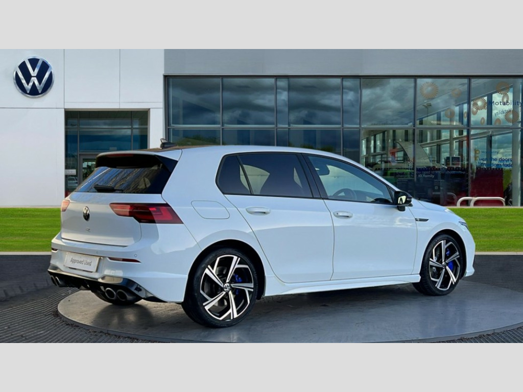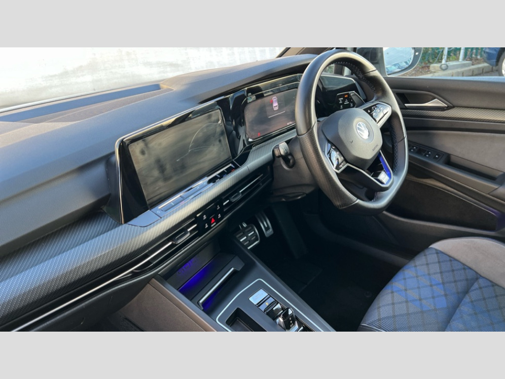 Volkswagen Golf 2.0 TSI 320 R 4Motion 5dr DSG Adaptive cruise control (ACC) with speed limiter and front assist (reacting to vehicles pedestrians and cyclists), Car2X communication, Digital cockpit pro - 10.25" high resolution TFT dash display screen with customizable menus and information, Driver alert system, Dynamic road sign display, eCall - Emergency call service for SOS calls to emergency response, Lane assist, Lane change assistant, Mobile phone interface with wireless inductive charging function, PAS, Speedo, rev counter, electronic odometer, trip, service interval display, exterior temperature and fuel gauge, Start/Stop function, Travel assist with emergency side assist with electrically foldable door mirrors, Warning buzzer and light for front seatbelts unfastened, Wireless app connect, 4Motion 4 wheel driver, Front differential lock, Petrol Particulate Filter, XDS electronic differential lock for improved traction and handling, Premium USB cable in choice of either Apple or Android smartphone compatibility, Ambient lighting, exterior illuminated styling elements at the sides, Auto dimming rear view mirror, Automatic headlamp activation with Coming home and Leaving home feature, Automatic headlights, Body colour bumpers, Body colour door handles, Body colour rear roof spoiler, Front and rear electric windows, Heat insulating glass windscreen, Heated rear windscreen, High level 3rd brake light, Highway light, Illuminated front grille, IQ.Light - LED Matrix headlights, dynamic headlight control with advanced high beam control matrix dipped main beam + LED DRL + 22 LED lights, LED front fog lights with 5 honeycomb design, LED License plate illumination, LED rear combination lamp inlcuding dynamic turn signal, Matt chrome effect door mirrors with integrated indicators, Rain sensor, Rear fog light on one side and reversing lights on both sides, Rear side wing doors, Rear tinted glass 65% light absorbing from B pillar backwards, Rear windscreen washer and wiper with interval delay, Remote electrically heated, adjustable and foldable door mirrors, including door mirror puddle lights and reverse activated kerb-view adjustment on pa, Welcome light, 12V socket in front centre console, 12V socket in luggage compartment, 3 rear head restraints, 3 seat bench in 2nd row, 3 zone climate with controls in the rear, Aluminium gear knob, Ambient lighting - Customisable 30 colour ambient lighting, Black roof lining, Brushed stainless steel pedals, Centre console, Chrome plated surround to electric mirror button, window switch and air vent surrounds, Drivers and front passengers sun visors with vanity mirrors, Front + rear carpet mats, Front centre armrest with storage compartment, Front cupholders x 2, Front passenger seat, Front reading lights x 2 incorporating LED technology, Front seat lumbar support adjuster, Front sports seats, Glovebox, Height adjustable front seats, Height and reach adjustable steering wheel, Isofix child seat preparation for 2 rear child seats and front passenger seat, Luggage compartment lighting, R leather wrapped multi function sports heated steering wheel with extended paddle shift, Removable luggage compartment cover, Split folding backrest with centre armrest and unsplit rear seat bench, Woven fabric storage compartments in front and rear doors, R styling pack - Golf, 3 point height adj front seatbelts + pretensioners, 3 rear three point seatbelts, ABS, Blue brake callipers in front with R logo, Child locks on rear doors, Driver and front passenger airbag with front passenger airbag deactivation, Drivers and front passengers safety optimised head restraints, Electronic parking brake with auto hold, ESC (Electronic Stability Control), Extended pedestrian protection measures, Front and rear passengers curtain airbag system including front side airbags, Front disc brakes, Rear disc brakes, Two tone horn, Tyre pressure monitoring system, Alarm with interior protection and deactivation via infotainment system, Electronic engine immobiliser, Keyless entry with start/stop button on centre console, Black metal chrome decorative inserts in dash and front door trim panels, Soul dashboard, Tyre mobility kit Includes 12V compressor and tyre sealant