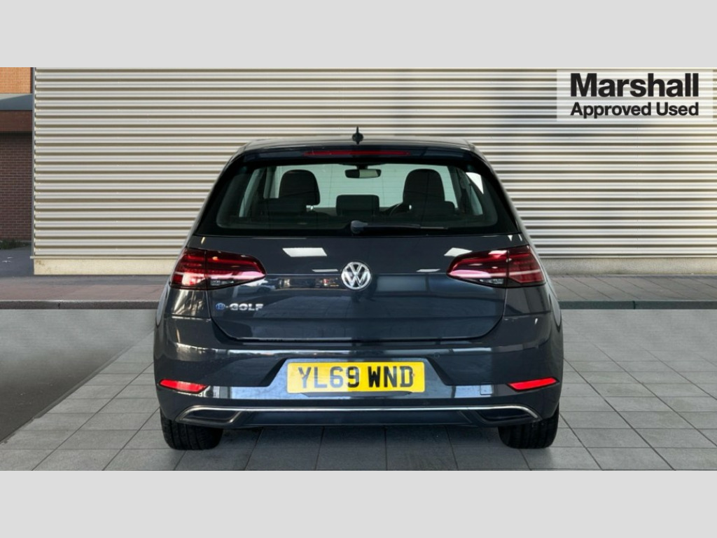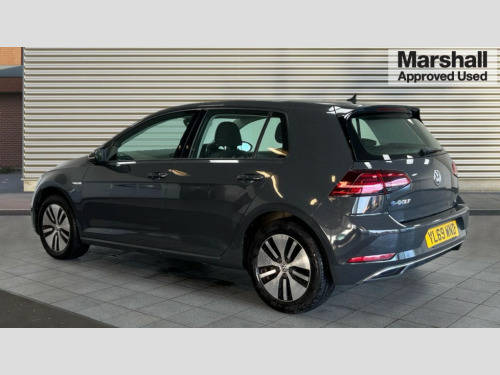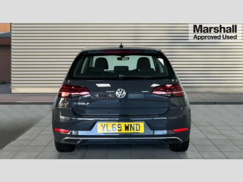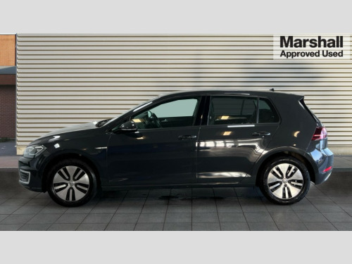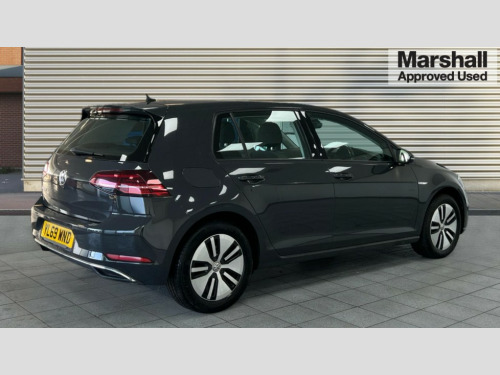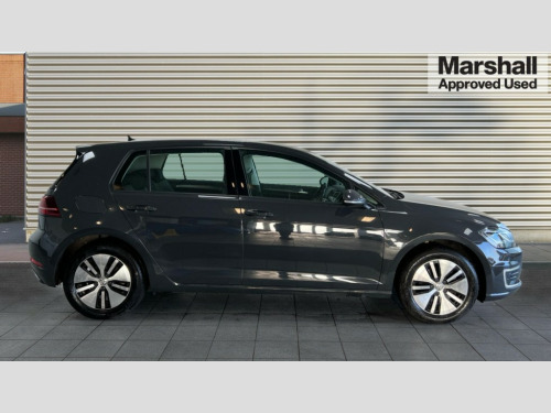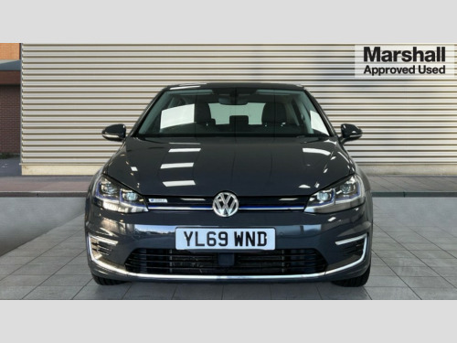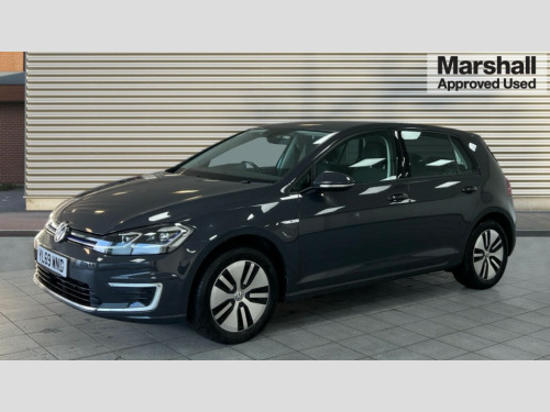 Volkswagen Golf 99kW e-Golf 35kWh 5dr Auto 'Lights On' Reminder warning buzzer, ACC - Adaptive cruise control with front assist, forward collision warning, distance monitoring, city emergency brake and speed limiter, Bluetooth telephone and audio connection for compatible devices, Brake pad wear indicator warning light, Driver alert system, Driving Mode Selection with four preset modes - Eco, normal, sport or individual modes, Multifunction computer with visual gear change recommendation for fuel consumption, Power assisted speed sensitive electro-mechanical steering, Speed limit display, Speedo, rev counter, electronic odometer, trip, service interval display, exterior temperature and fuel gauge, Stop/start system, Think blue trainer driver tips and journey analysis, Unique e-Golf instrument cluster, Warning buzzer and light for front seatbelts unfastened, Battery regeneration during braking, Two charging cables 32amp for wallbox/chargepoints (mode 3) and 10amp mains charge cable (mode 2), XDS electronic differential lock, Composition media system, DAB Digital radio receiver, Driver Personalisation profile selection, MP3/WMA compatability, Multi device interface (MDI) via USB connection, Premium USB cable in choice of either Apple or Android smartphone compatibility, SMS Functionality, Title and cover art display, USB and SD card connectivity, 3D-LED tinted rear light clusters with indicator sweep function, Black front air intake and radiator grille with chrome insert, Black rear diffuser, Body colour door handles, Body colour door mirrors with integrated indicators, Body colour rear roof spoiler, Dusk sensor + automatic driving lights, Electric front windows, Electric rear windows, Electrically adjustable and heated door mirrors, Fully galvanised body, Heated rear windscreen, High level 3rd brake light incorporating LED Technology, No visible rear tailpipe, Rear fog lamp, Rear window aerial, Rear window wash/wipe with intermittent wipe, Reflectors in all doors, Sill extensions, Unique e golf radiator grille with blue stripe, Unique e-Golf badging, Unique front C Signature LED daytime running light, Uniquely shaped front/rear bumpers, Windscreen wipers/ intermittent wipe + 4 position delay, 12V socket in luggage compartment, 3 rear headrests, 4 load lashing points in luggage compartment, 60/40 split folding rear seat backrest, Bag hook in luggage compartment x 2, Climate control - 2 zone electronic air conditioning with automatic air recirculation and allergy filter, Cooled glovebox, Cover for storage compartment in centre, Dust/pollen filter, Front centre armrest with storage compartment and two rear air vents, Front comfort seats with height and lumbar adjustment, Front seat back storage pockets, Grab handles front x 2, rear x 2 with integrated coat hooks, Height and reach adjustable steering wheel, Illuminated vanity mirrors, Interior light delay, Isofix preparation for 2 rear child seats, Load through provision with rear centre armrest and cupholders x2, Luggage compartment lighting, Overhead storage box, Pearl grey headlining, Storage box in luggage compartment, Storage compartment in roof console with cover, Storage compartments in centre console, Storage compartments in front doors, Storage compartments in rear doors, Stowable luggage compartment cover, Sun visors, Three spoke multifunction leather steering wheel with e-golf logo and blue stitching including gear knob gaiter, Variable boot floor, height adjustable and removable, Convenience Pack - Golf, Mirror pack - Golf, 3 rear three point seatbelts, Airbags - Driver's and front passenger's, curtain airbag, Driver's knee, front side impact and passenger's airbag deactivation switch, Anti-lock Braking System (ABS) with Hydraulic Brake Assist (HBA), Automatic post collision braking system, Child locks on rear doors, Driver/Passenger optimised head restraints, Electronic parking brake with auto hold, Electronic stability control (ESC) including Electronic differential lock (EDL) and ASR (Traction control) with deactivation via infotainment system, Front ventilated disc brakes and rear disc brakes, Pre crash preventive occupant protection, Three point height adjustable front seatbelts with tensioners, Tyre pressure loss indicator, Alarm with interior protection and deactivation via infotainment system, Electronic engine immobiliser, Brushed dark silver decorative inserts in dash and door panels, Chrome plated air vent surround, Chrome-plated light switch surround, Polar night black decorative inserts in centre console, Tyre repair kit