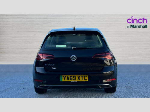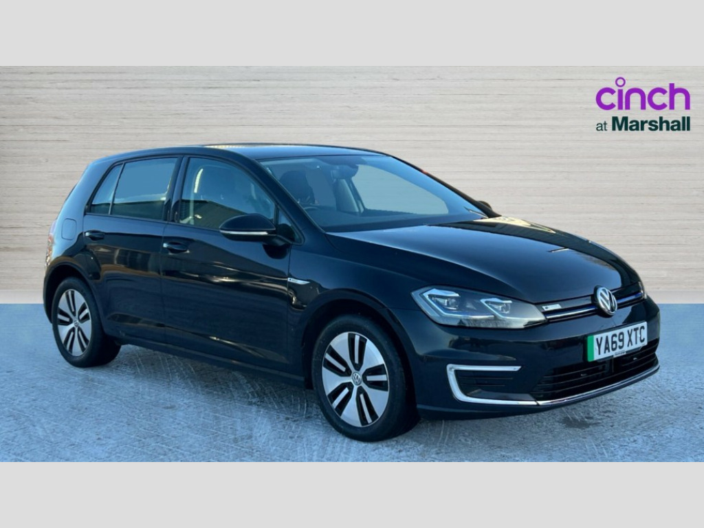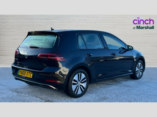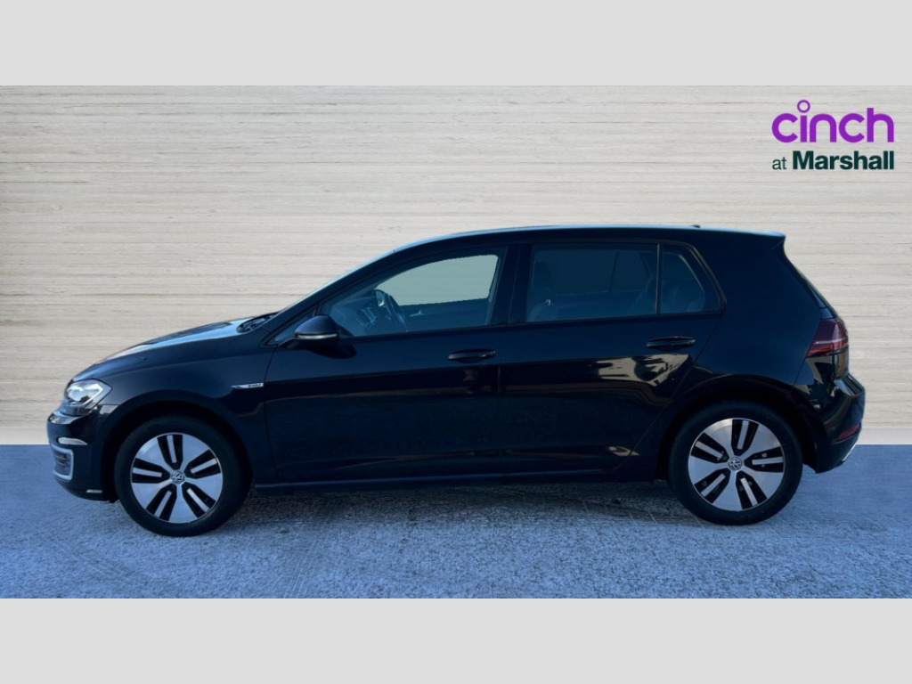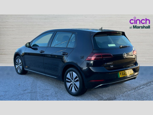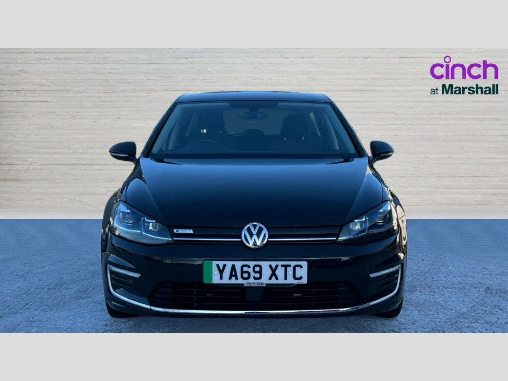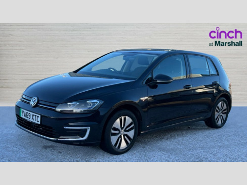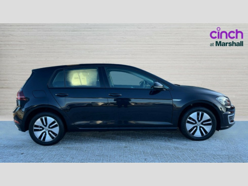 Volkswagen Golf 99kW e-Golf 35kWh 5dr Auto 'Lights On' Reminder warning buzzer, ACC - Adaptive cruise control with front assist, forward collision warning, distance monitoring, city emergency brake and speed limiter, Bluetooth telephone and audio connection for compatible devices, Brake pad wear indicator warning light, Driver alert system, Driving Mode Selection with four preset modes - Eco, normal, sport or individual modes, Multifunction computer with visual gear change recommendation for fuel consumption, Power assisted speed sensitive electro-mechanical steering, Speed limit display, Speedo, rev counter, electronic odometer, trip, service interval display, exterior temperature and fuel gauge, Stop/start system, Think blue trainer driver tips and journey analysis, Unique e-Golf instrument cluster, Warning buzzer and light for front seatbelts unfastened, Battery regeneration during braking, Two charging cables 32amp for wallbox/chargepoints (mode 3) and 10amp mains charge cable (mode 2), XDS electronic differential lock, Composition media system, DAB Digital radio receiver, Driver Personalisation profile selection, MP3/WMA compatability, Multi device interface (MDI) via USB connection, Premium USB cable in choice of either Apple or Android smartphone compatibility, SMS Functionality, Title and cover art display, USB and SD card connectivity, 3D-LED tinted rear light clusters with indicator sweep function, Black front air intake and radiator grille with chrome insert, Black rear diffuser, Body colour door handles, Body colour door mirrors with integrated indicators, Body colour rear roof spoiler, Dusk sensor + automatic driving lights, Electric front windows, Electric rear windows, Electrically adjustable and heated door mirrors, Fully galvanised body, Heated rear windscreen, High level 3rd brake light incorporating LED Technology, No visible rear tailpipe, Rear fog lamp, Rear window aerial, Rear window wash/wipe with intermittent wipe, Reflectors in all doors, Sill extensions, Unique e golf radiator grille with blue stripe, Unique e-Golf badging, Unique front C Signature LED daytime running light, Uniquely shaped front/rear bumpers, Windscreen wipers/ intermittent wipe + 4 position delay, 12V socket in luggage compartment, 3 rear headrests, 4 load lashing points in luggage compartment, 60/40 split folding rear seat backrest, Bag hook in luggage compartment x 2, Climate control - 2 zone electronic air conditioning with automatic air recirculation and allergy filter, Cooled glovebox, Cover for storage compartment in centre, Dust/pollen filter, Front centre armrest with storage compartment and two rear air vents, Front comfort seats with height and lumbar adjustment, Front seat back storage pockets, Grab handles front x 2, rear x 2 with integrated coat hooks, Height and reach adjustable steering wheel, Illuminated vanity mirrors, Interior light delay, Isofix preparation for 2 rear child seats, Load through provision with rear centre armrest and cupholders x2, Luggage compartment lighting, Overhead storage box, Pearl grey headlining, Storage box in luggage compartment, Storage compartment in roof console with cover, Storage compartments in centre console, Storage compartments in front doors, Storage compartments in rear doors, Stowable luggage compartment cover, Sun visors, Three spoke multifunction leather steering wheel with e-golf logo and blue stitching including gear knob gaiter, Variable boot floor, height adjustable and removable, Convenience Pack - Golf, Mirror pack - Golf, 3 rear three point seatbelts, Airbags - Driver's and front passenger's, curtain airbag, Driver's knee, front side impact and passenger's airbag deactivation switch, Anti-lock Braking System (ABS) with Hydraulic Brake Assist (HBA), Automatic post collision braking system, Child locks on rear doors, Driver/Passenger optimised head restraints, Electronic parking brake with auto hold, Electronic stability control (ESC) including Electronic differential lock (EDL) and ASR (Traction control) with deactivation via infotainment system, Front ventilated disc brakes and rear disc brakes, Pre crash preventive occupant protection, Three point height adjustable front seatbelts with tensioners, Tyre pressure loss indicator, Alarm with interior protection and deactivation via infotainment system, Electronic engine immobiliser, Brushed dark silver decorative inserts in dash and door panels, Chrome plated air vent surround, Chrome-plated light switch surround, Polar night black decorative inserts in centre console, Tyre repair kit