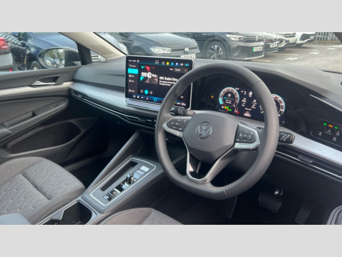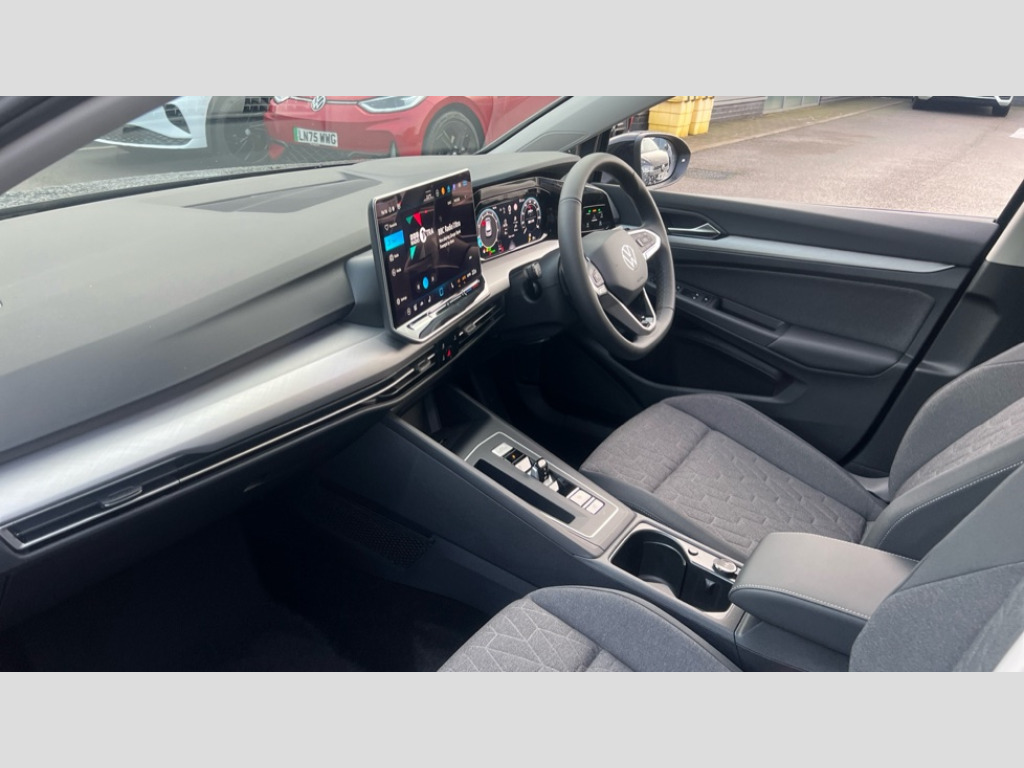 Volkswagen Golf 1.5 eTSI 150 Match 5dr DSG Activated carbon canister, Adaptive cruise control (ACC), Advanced driver attention and drowsiness monitor, Dynamic road sign display, E-Sim card for online connectivity, eCall emergency call system, Multi-color Digital cockpit pro, selection of different info profile possible, Multifunction front facing camera for distance control, Navigation system, Oncoming vehicle braking when turning including swerve support, Speed limiter, Speedo, rev counter, electronic odometer, trip, service interval display, exterior temperature and fuel gauge, Voice enhancer and voice control, Warning signal and warning light for front and rear seatbelts not fastened, We connect plus preparation, We connect preparation, Wireless app connect, Hybrid propulsion system, Petrol Particulate Filter, Start-stop system with battery regeneration (recuperation - energy recovery during braking), XDS electronic differential lock for improved traction and handling, 2 USB C ports in front, 2 USB charging sockets on the centre console in the rear charging capacity upto 45W, Digital radio reception (DAB), Diversity antenna for FM reception, Gaming platform via car app, Infotainment system with 12.9" display, Mobile phone interface with inductive charging feature, 3rd brake light, Automatic headlamp activation with Coming home and Leaving home feature, Body colour door handles, Body colour door mirrors, Exterior mirrors convex on the left and aspherical on the right, Front and rear electric windows, Heat insulating windshield made of laminated glass, LED separate daytime running light, Rear exhaust tailpipe, Rear fog light on one side and reversing lights on both sides, Rear side wing doors, Rear tinted glass 65% light absorbing from B pillar backwards, Rear windscreen washer and wiper with interval delay, Remote electrically foldable door mirrors, puddle lights and reverse activated passenger's door mirror, Standard bumpers, Welcome light with surround lighting, 12V socket in front centre console, 12V socket in luggage compartment, 3 rear head restraints, 3 seat bench in 2nd row, Chrome plated radiator grille inserts, air vent surrounds and light switch surrounds, Front centre armrest, Front head restraints, Front seat lumbar support adjuster, ISOFIX anchors for child seats on outer rear bench seats and on front passanger seat compatible for i-Size, Luggage compartment lighting, Manual height adjustable front passenger seat, Manually height adjustable driver seat, Plastic gear knob, Rear cupholder and loadthough, Single front passenger seat, Soul black instrument panel, Split folding backrest with centre armrest and unsplit rear seat bench, Standard pedal cluster, Storm grey roof lining, Sun visors with illuminated vanity mirrors, Technology park and comfort pro package - Golf Hatchback, 3 point height adj front seatbelts + pretensioners, 3 rear three point seatbelts, ABS, Autonomous emergency braking front assist with pedestrian and cyclist monitoring, Child locks on rear doors, Driver and front passenger airbag with front passenger airbag deactivation, Electronic parking brake with auto hold, ESC (Electronic Stability Control), Extended pedestrian protection measures, Hill start assist, Rear disc brakes, Two tone horn, Tyre pressure loss indicator, Volkswagen roadside assistance, Anti theft wheel bolts, Preparation for alcohol interlock, Nature cross brushed decorative inserts for dashboard and front door panels