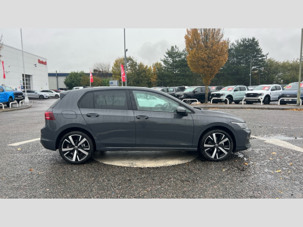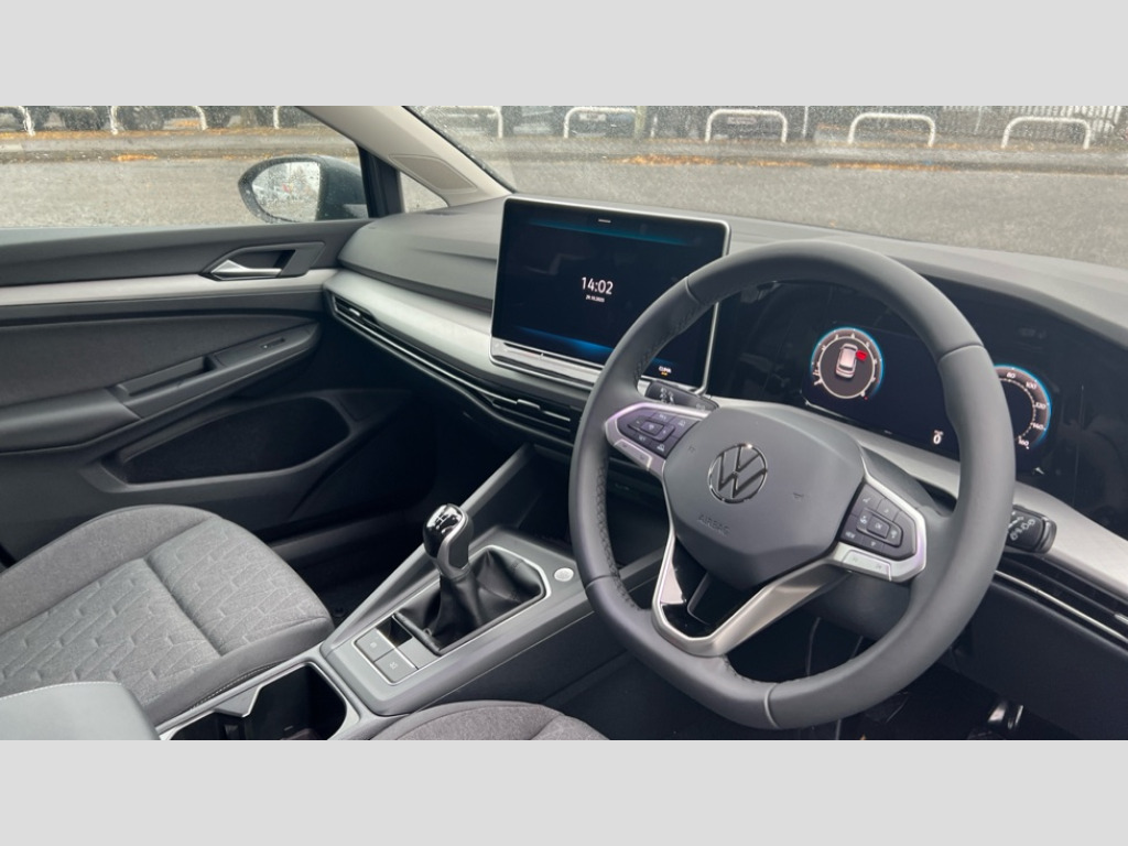 Volkswagen Golf 1.5 TSI 150 Match 5dr Activated carbon canister, Adaptive cruise control (ACC), Advanced driver attention and drowsiness monitor, Dynamic road sign display, E-Sim card for online connectivity, eCall emergency call system, Multi-color Digital cockpit pro, selection of different info profile possible, Multifunction front facing camera for distance control, Navigation system, Oncoming vehicle braking when turning including swerve support, Speed limiter, Speedo, rev counter, electronic odometer, trip, service interval display, exterior temperature and fuel gauge, Voice enhancer and voice control, Warning signal and warning light for front and rear seatbelts not fastened, We connect plus preparation, We connect preparation, Wireless app connect, Petrol Particulate Filter, Start-stop system with battery regeneration (recuperation - energy recovery during braking), XDS electronic differential lock for improved traction and handling, 2 USB C ports in front, 2 USB charging sockets on the centre console in the rear charging capacity upto 45W, Digital radio reception (DAB), Diversity antenna for FM reception, Gaming platform via car app, Infotainment system with 12.9" display, Mobile phone interface with inductive charging feature, 3rd brake light, Automatic headlamp activation with Coming home and Leaving home feature, Body colour door handles, Body colour door mirrors, Exterior mirrors convex on the left and aspherical on the right, Front and rear electric windows, Heat insulating windshield made of laminated glass, LED separate daytime running light, Rear exhaust tailpipe, Rear fog light on one side and reversing lights on both sides, Rear side wing doors, Rear tinted glass 65% light absorbing from B pillar backwards, Rear windscreen washer and wiper with interval delay, Remote electrically foldable door mirrors, puddle lights and reverse activated passenger's door mirror, Standard bumpers, Welcome light with surround lighting, 12V socket in front centre console, 12V socket in luggage compartment, 3 rear head restraints, 3 seat bench in 2nd row, Chrome plated radiator grille inserts, air vent surrounds and light switch surrounds, Front centre armrest, Front head restraints, ISOFIX anchors for child seats on outer rear bench seats and on front passanger seat compatible for i-Size, Leather gearshift handle, Luggage compartment lighting, Manual height adjustable front passenger seat, Rear cupholder and loadthough, Single front passenger seat, Soul black instrument panel, Split folding backrest with centre armrest and unsplit rear seat bench, Standard pedal cluster, Storm grey roof lining, Sun visors with illuminated vanity mirrors, Parking and comfort pack - Golf Estate/Hatchback, 3 point height adj front seatbelts + pretensioners, 3 rear three point seatbelts, ABS, Autonomous emergency braking front assist with pedestrian and cyclist monitoring, Child locks on rear doors, Driver and front passenger airbag with front passenger airbag deactivation, Electronic parking brake with auto hold, ESC (Electronic Stability Control), Extended pedestrian protection measures, Rear disc brakes, Two tone horn, Tyre pressure loss indicator, Volkswagen roadside assistance, Anti theft wheel bolts, Preparation for alcohol interlock, Nature cross brushed decorative inserts for dashboard and front door panels