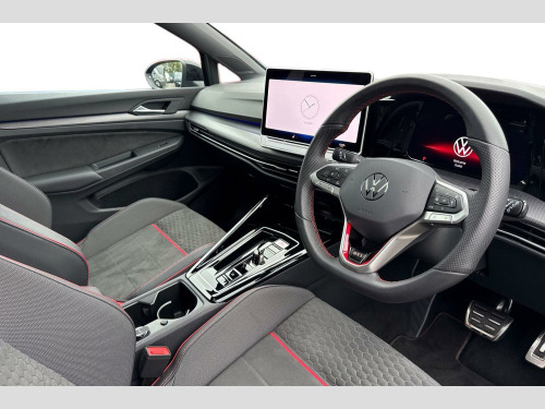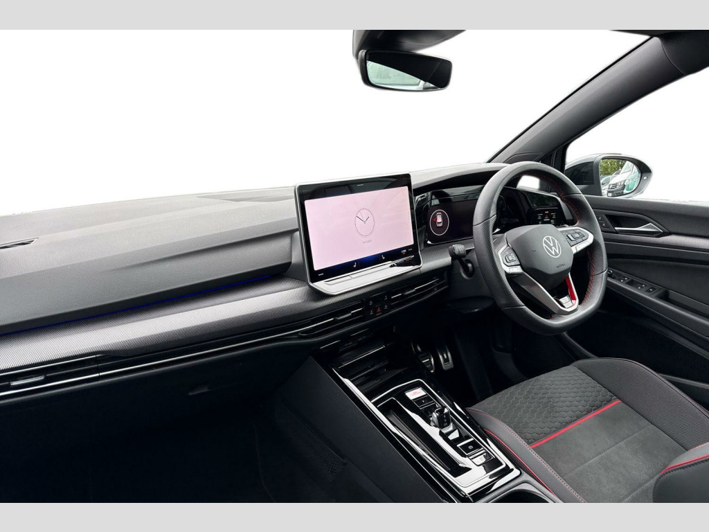 Adaptive chassis control DCC - driving profile selection, front and rear shock absorpotion, front disc brakes, R Performance 'Akrapovic' exhaust system, Tilting and sliding panoramic sunroof with 2X front and 2X rear LED reading lights, Black exterior Styling package with Matrix LED headlights - Golf, GTI performance pack with 19" Queenstown black diamond turned alloy wheels - Golf, 19" 'Queenstown' black diamond turned surface alloy wheels, Solid - Urano grey, Art velours cloth - Soul black/Tornado red with premium sport front seats, Front and rear electric windows, Heat insulating windshield made of laminated glass, Rain sensor, Rear windscreen washer and wiper with interval delay, Body colour door handles, Bumpers in "Clubsport", air intake in honeycomb structure, Nameplate 'GTI' set, Rear side wing doors, 3rd brake light, Automatic headlamp activation with Coming home and Leaving home feature, Front fog lamps and cornering light, LED separate daytime running light, Rear fog light on one side and reversing lights on both sides, Welcome light with surround lighting, ABS, Autonomous emergency braking front assist with pedestrian and cyclist monitoring, Electronic parking brake with auto hold, ESC (Electronic Stability Control), Front red brake calipers with GTI logo, Hill start assist, Rear disc brakes, Volkswagen roadside assistance, Activated carbon canister, Adaptive cruise control (ACC), Advanced driver attention and drowsiness monitor, Dynamic road sign display, Multifunction front facing camera for distance control, Oncoming vehicle braking when turning including swerve support, Preparation for light assist system, Side assist blind spot lane change system, rear traffic alert and exit warning system, Speed limiter, Auto dimming rear view mirror, Exterior mirrors convex on the left and aspherical on the right, Remote electrically foldable door mirrors, puddle lights and reverse activated passenger's door mirror, 3 point height adj front seatbelts + pretensioners, 3 rear three point seatbelts, Child locks on rear doors, Driver and front passenger airbag with front passenger airbag deactivation, Extended pedestrian protection measures, Two tone horn, Tyre pressure loss indicator, Front + rear black carpet mats, Air care climatronic 3 Zone automatic climate control with rear air conditioning control panel, 12V socket in front centre console, 12V socket in luggage compartment, Aluminium gearshift handle, Brushed stainless steel pedals, Chrome plated radiator grille inserts, air vent surrounds and light switch surrounds, Front centre armrest, Rear cupholder and loadthough, Soul black instrument panel, Soul black roof lining, 30 colour ambient lighting, illuminated center console storage compartment in front, Entry lights, Luggage compartment lighting, Front differential lock, Sun visors with illuminated vanity mirrors, E-Sim card for online connectivity, eCall emergency call system, We connect preparation, Wireless app connect, 2 USB C ports in front, 2 USB charging sockets on the centre console in the rear charging capacity upto 45W, Digital radio reception (DAB), Diversity antenna for FM reception, Gaming platform via car app, Infotainment system with 12.9" display, Mobile phone interface with inductive charging feature, Multi-color Digital cockpit pro, selection of different info profile possible, Navigation system, Speedo, rev counter, electronic odometer, trip, service interval display, exterior temperature and fuel gauge, Traffic jam assist, Voice enhancer and voice control, Warning signal and warning light for front and rear seatbelts not fastened, We connect plus preparation, Petrol Particulate Filter, Start-stop system with battery regeneration (recuperation - energy recovery during braking), Decorative inserts carbon grey for dashboard and front door trim panels, 3 rear head restraints, 3 seat bench in 2nd row, ISOFIX anchors for child seats on outer rear bench seats and on front passanger seat compatible for i-Size