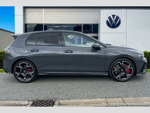 Vienna Leather - Soul Black-Tornado Red, 19in Alloy Wheels - Queenstown with Electronic Maximum Speed Limit to 270kmh includes Driving Modes Drift and Special with Large Spoiler and R Performance 'Akrapovic' Exhaust System - Rear Muffler in Titanium, GTI Clubsport Performance Pack, Exterior Styling Package Black Style with Matrix LED Headlights, Tilting and Sliding Panoramic Sunroof, Adaptive Chassis Control - DCC, Adaptive chassis control DCC - driving profile selection, front and rear shock absorpotion, front disc brakes, Tilting and sliding panoramic sunroof with 2X front and 2X rear LED reading lights, Black exterior Styling package with Matrix LED headlights - Golf, GTI performance pack with 19" Queenstown black diamond turned alloy wheels - Golf, Metallic - Dolphin grey, Vienna leather - Soul black/Tornado red, Front and rear electric windows, Heat insulating windshield made of laminated glass, Rain sensor, Rear windscreen washer and wiper with interval delay, Body colour door handles, Bumpers in "Clubsport", air intake in honeycomb structure, Illuminated lighting animation with wake up/goodbye scenario, Nameplate 'GTI' set, Rear side wing doors, 3rd brake light, Automatic headlamp activation with Coming home and Leaving home feature, Front fog lamps and cornering light, LED separate daytime running light, Rear fog light on one side and reversing lights on both sides, Welcome light with surround lighting, ABS, Autonomous emergency braking front assist with pedestrian and cyclist monitoring, Electronic parking brake with auto hold, ESC (Electronic Stability Control), Front red brake calipers with GTI logo, Hill start assist, Rear disc brakes, Volkswagen roadside assistance, Activated carbon canister, Adaptive cruise control (ACC), Advanced driver attention and drowsiness monitor, Dynamic road sign display, Multifunction front facing camera for distance control, Oncoming vehicle braking when turning including swerve support, Side assist blind spot lane change system, rear traffic alert and exit warning system, Speed limiter, Auto dimming rear view mirror, Exterior mirrors convex on the left and aspherical on the right, Remote electrically foldable door mirrors, puddle lights and reverse activated passenger's door mirror, 3 point height adj front seatbelts + pretensioners, 3 rear three point seatbelts, Child locks on rear doors, Driver and front passenger airbag with front passenger airbag deactivation, Extended pedestrian protection measures, Two tone horn, Tyre pressure loss indicator, Front + rear black carpet mats, Air care climatronic 3 Zone automatic climate control with rear air conditioning control panel, 12V socket in front centre console, 12V socket in luggage compartment, Aluminium gearshift handle, Brushed stainless steel pedals, Chrome plated radiator grille inserts, air vent surrounds and light switch surrounds, Front centre armrest, Rear cupholder and loadthough, Soul black instrument panel, Soul black roof lining, 30 colour ambient lighting, illuminated center console storage compartment in front, Entry lights, Luggage compartment lighting, Front differential lock, Sun visors with illuminated vanity mirrors, E-Sim card for online connectivity, eCall emergency call system, We connect preparation, Wireless app connect, 2 USB C ports in front, 2 USB charging sockets on the centre console in the rear charging capacity upto 45W, Digital radio reception (DAB), Diversity antenna for FM reception, Gaming platform via car app, Infotainment system with 12.9" display, Mobile phone interface with inductive charging feature, Multi-color Digital cockpit pro, selection of different info profile possible, Navigation system, Speedo, rev counter, electronic odometer, trip, service interval display, exterior temperature and fuel gauge, Traffic jam assist, Voice enhancer and voice control, Warning signal and warning light for front and rear seatbelts not fastened, We connect plus preparation, Petrol Particulate Filter, Start-stop system with battery regeneration (recuperation - energy recovery during braking), Decorative inserts carbon grey for dashboard and front door trim panels, 3 rear head restraints, 3 seat bench in 2nd row, ISOFIX anchors for child seats on outer rear bench seats and on front passanger seat compatible for i-Size, Single front passenger seat, Split folding backrest with centre armrest and unsplit rear seat bench, Dri