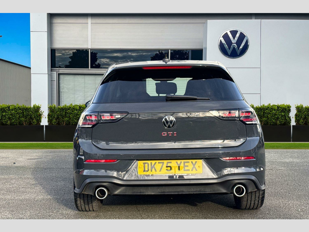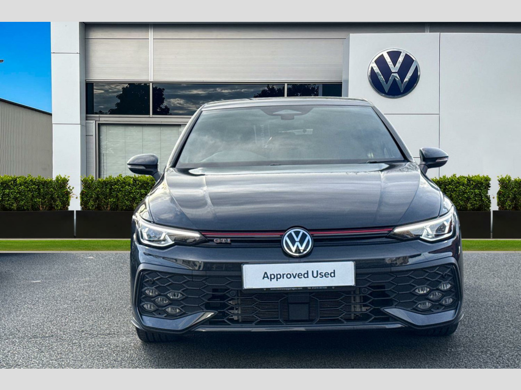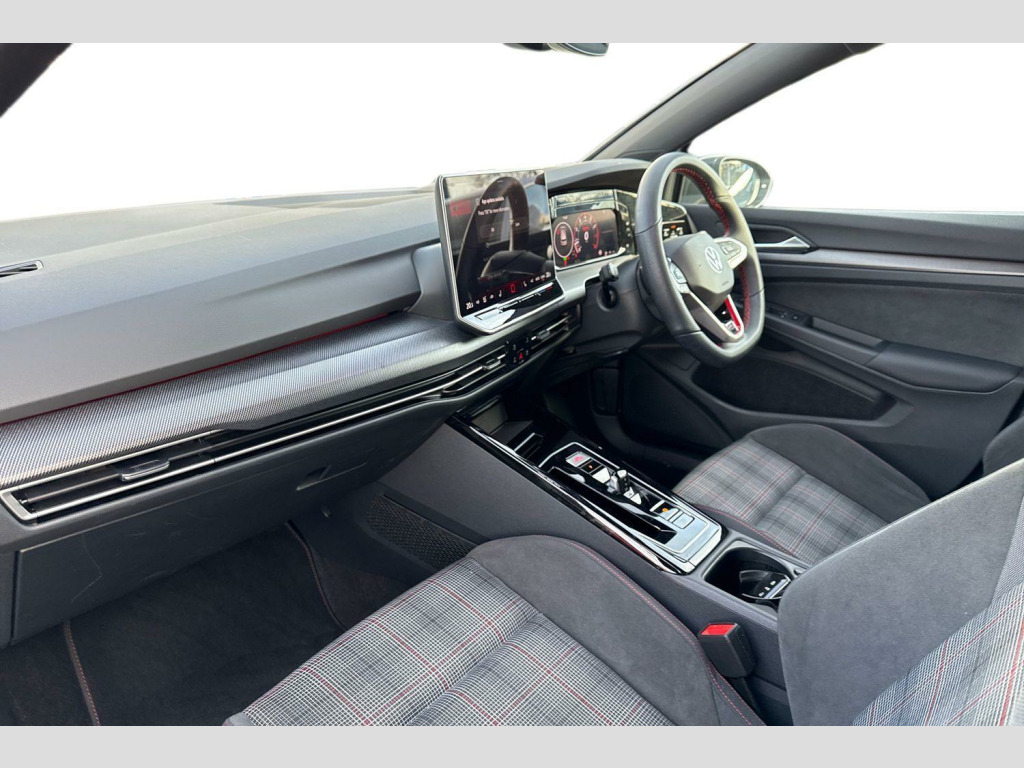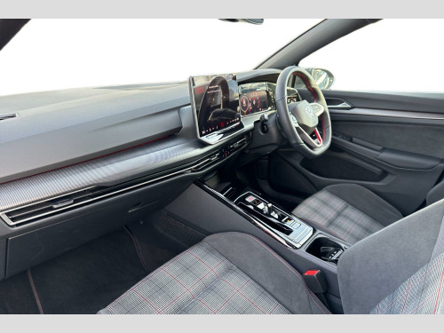 Solid paint, Rear view camera, Winter package - Golf DSG Estate/Hatchback, 18" Richmond alloy wheels with diamond-turned surface, Solid - Urano grey, Jacara cloth - Soul black/Tornado red, Front and rear electric windows, Heat insulating windshield made of laminated glass, Rain sensor, Rear windscreen washer and wiper with interval delay, Body colour door handles, Body coloured bumpers, air intake in honeycomb structure, Illuminated lighting animation with wake up/goodbye scenario, Nameplate 'GTI' set, Rear exhaust tailpipe, Rear side wing doors, 3rd brake light, Automatic headlamp activation with Coming home and Leaving home feature, Front fog lamps and cornering light, LED separate daytime running light, Rear fog light on one side and reversing lights on both sides, Welcome light with surround lighting, ABS, Autonomous emergency braking front assist with pedestrian and cyclist monitoring, Electronic parking brake with auto hold, ESC (Electronic Stability Control), Hill start assist, Rear disc brakes, Volkswagen roadside assistance, Activated carbon canister, Adaptive cruise control (ACC), Advanced driver attention and drowsiness monitor, Dynamic road sign display, Multifunction front facing camera for distance control, Oncoming vehicle braking when turning including swerve support, Side assist blind spot lane change system, rear traffic alert and exit warning system, Speed limiter, Auto dimming rear view mirror, Exterior mirrors convex on the left and aspherical on the right, Remote electrically foldable door mirrors, puddle lights and reverse activated passenger's door mirror, 3 point height adj front seatbelts + pretensioners, 3 rear three point seatbelts, Child locks on rear doors, Driver and front passenger airbag with front passenger airbag deactivation, Extended pedestrian protection measures, Two tone horn, Tyre pressure loss indicator, Front + rear black carpet mats, Air care climatronic 3 Zone automatic climate control with rear air conditioning control panel, 12V socket in front centre console, 12V socket in luggage compartment, Aluminium gearshift handle, Brushed stainless steel pedals, Chrome plated radiator grille inserts, air vent surrounds and light switch surrounds, Front centre armrest, Rear cupholder and loadthough, Soul black instrument panel, Soul black roof lining, 30 colour ambient lighting, illuminated center console storage compartment in front, Entry lights, Luggage compartment lighting, Front differential lock, Sun visors with illuminated vanity mirrors, E-Sim card for online connectivity, eCall emergency call system, We connect preparation, Wireless app connect, 2 USB C ports in front, 2 USB charging sockets on the centre console in the rear charging capacity upto 45W, Digital radio reception (DAB), Diversity antenna for FM reception, Gaming platform via car app, Infotainment system with 12.9" display, Mobile phone interface with inductive charging feature, Multi-color Digital cockpit pro, selection of different info profile possible, Navigation system, Speedo, rev counter, electronic odometer, trip, service interval display, exterior temperature and fuel gauge, Traffic jam assist, Voice enhancer and voice control, Warning signal and warning light for front and rear seatbelts not fastened, We connect plus preparation, Petrol Particulate Filter, Start-stop system with battery regeneration (recuperation - energy recovery during braking), Decorative inserts carbon grey for dashboard and front door trim panels, 3 rear head restraints, 3 seat bench in 2nd row, ISOFIX anchors for child seats on outer rear bench seats and on front passanger seat compatible for i-Size, Single front passenger seat, Split folding backrest with centre armrest and unsplit rear seat bench, Driver assistance pack - Golf Estate/Hatchback Auto, Technology park and comfort pro package - Golf Hatchback, Anti theft wheel bolts, Preparation for alcohol interlock, Sporty vehicle dynamics, Tool kit for tyre mobility set, Tyre mobility k