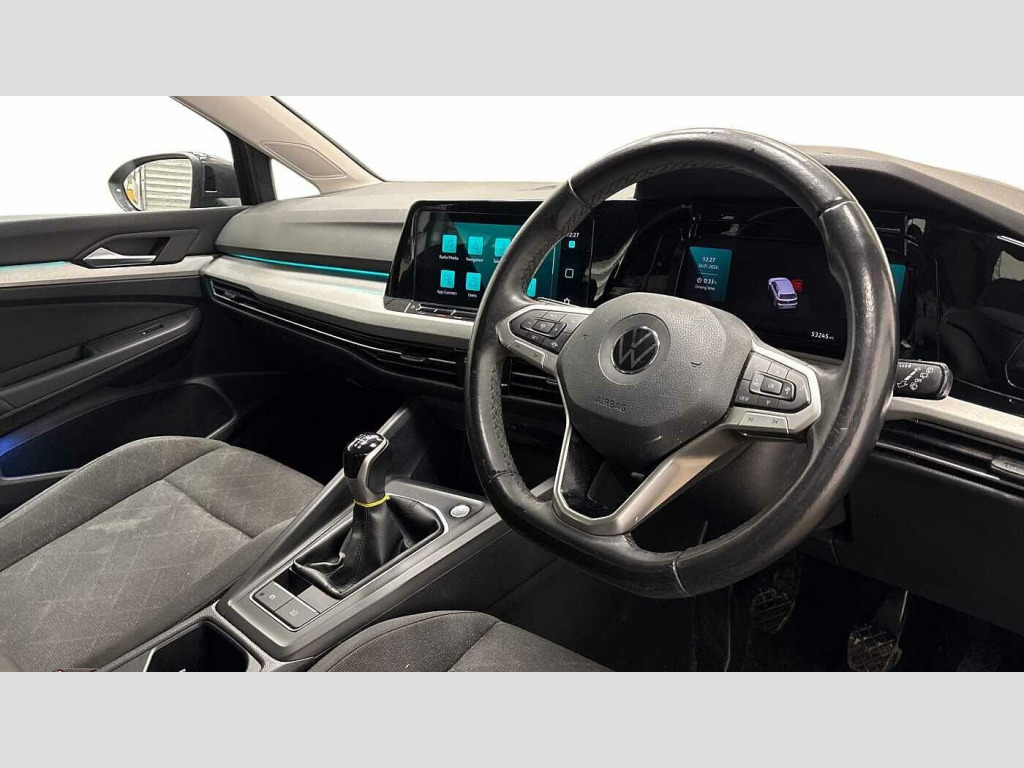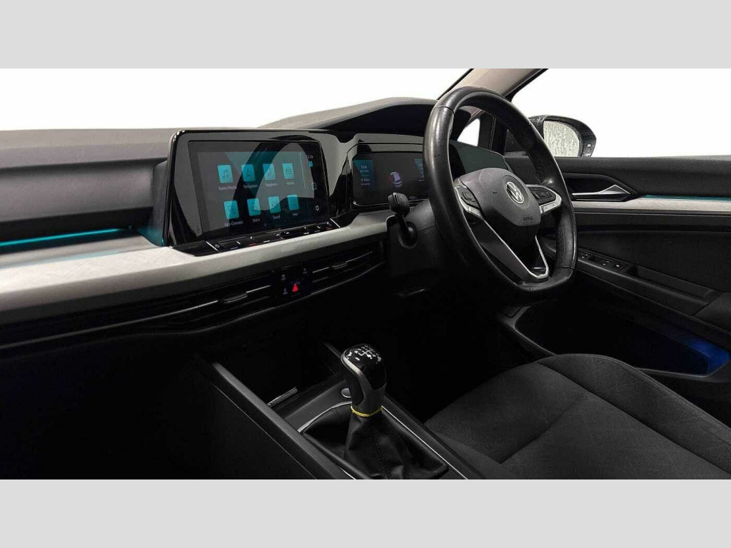 The Golf TSI Life boasts impressive performance, accelerating from 0 to 62 miles per hour in just 8.5 seconds, demonstrating its dynamic capability. This model also offers generous boot space, making it a practical choice for everyday use and longer journeys. These attributes combine to make this Volkswagen Golf a compelling option in its class. Front and rear electric windows, Heat insulating glass windscreen, Heated rear windscreen, Rain sensor, Rear windscreen washer and wiper with interval delay, Ambient lighting, exterior illuminated styling elements at the sides, Body colour bumpers, Body colour door handles, Body colour rear roof spoiler, Automatic headlamp activation with Coming home and Leaving home feature, High level 3rd brake light, Highway light, LED License plate illumination, Rear fog light on one side and reversing lights on both sides, Rear lights incorporating LED technology, Welcome light, ABS, Electronic parking brake with auto hold, ESC (Electronic Stability Control), Front disc brakes, Rear disc brakes, Adaptive cruise control (ACC) with speed limiter and front assist (reacting to vehicles pedestrians and cyclists), Driver alert system, Dynamic road sign display, Lane assist, Power assisted speed sensitive steering, Auto dimming rear view mirror, Body colour door mirrors with integrated indicators, Electrically heated and adjustable door mirrors with memory feature, 3 point height adj front seatbelts + pretensioners, 3 rear three point seatbelts, Driver and front passenger airbag with front passenger airbag deactivation, Drivers and front passengers safety optimised head restraints, Extended pedestrian protection measures, Front and rear passengers curtain airbag system including front side airbags, Two tone horn, Tyre pressure monitoring system, Car2X communication, Mobile phone interface with wireless inductive charging function, Wireless app connect, Premium USB cable in choice of either Apple or Android smartphone compatibility, Start/Stop function, Digital cockpit pro - 10.25" high resolution TFT dash display screen with customizable menus and information, eCall - Emergency call service for SOS calls to emergency response, Speedo, rev counter, electronic odometer, trip, service interval display, exterior temperature and fuel gauge, Warning buzzer and light for front seatbelts unfastened, Petrol Particulate Filter, Nature cross brushed decorative inserts, Soul dashboard, 3 rear head restraints, Front passenger seat lumbar adjustment, Height adjustable passenger seat, Isofix child seat preparation for 2 rear child seats and front passenger seat, Split folding backrest with centre armrest and unsplit rear seat bench, 12V socket in front centre console, 12V socket in luggage compartment, Centre console, Front centre armrest with storage compartment, Front cupholders x 2, Glovebox, Height and reach adjustable steering wheel, Maze cloth upholstery, Removable luggage compartment cover, Storm grey roof lining, Woven fabric storage compartments in front and rear doors, 10 colour interior ambient lighting, Front reading lights x 2 incorporating LED technology, Luggage compartment lighting, XDS electronic differential lock for improved traction and handling, Drivers and front passengers sun visors with vanity mirrors, Alarm with interior protection and deactivation via infotainment system, Electronic engine immobiliser
