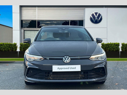 This 2022 Volkswagen Golf TSI R Line is a Volkswagen manufacturer approved vehicle, boasting a single owner from new. It features a responsive 1.5 litre petrol engine, meeting Euro 6 emission standards, and comes equipped with striking LED headlights that incorporate turn signals, along with a convenient mobile phone interface offering wireless inductive charging.