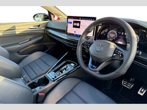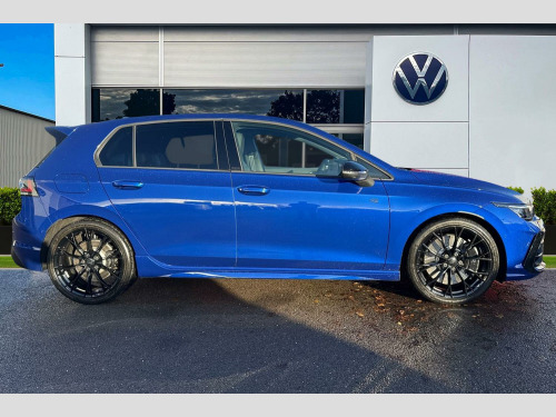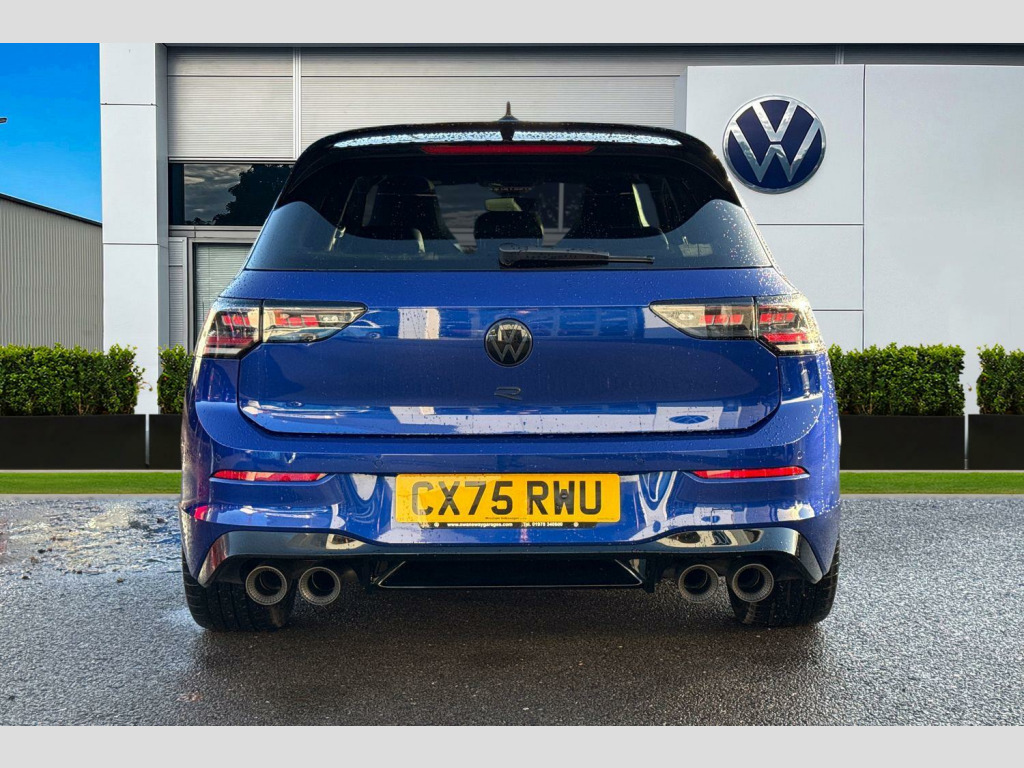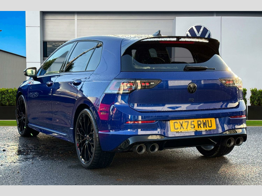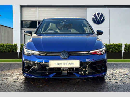 Perforated Carbon-Nappa Leather - Blue-Black, 19in Alloy Wheels - Warmenau Black, Sport Tyres - 235/35 R19, R-Performance Titanium Exhaust System, Decorative Inserts in Carbon for Dash and Front Door Trim Panels, Harman Kardon Digital Sound Package and Subwoofer, Curtain and Side Airbags in Front and Rear - Center Airbag, Tilting and Sliding Panoramic Sunroof, Winter Package 2, Adaptive Chassis Control - DCC, Area View and Rear-View Camera, Head Up Display, Folding Trailer Hitch with Electric Release, R Performance exhaust system, rear muffler in titanium, Adaptive chassis control DCC - driving profile selection, front and rear shock absorpotion, front disc brakes, Area view including rear view camera with front and rear view camera system and two side cameras, Curtain and side airbags in front and rear, center airbag, Tilting and sliding panoramic sunroof with 2X front and 2X rear LED reading lights, Harman/Kardon sound system including 12 channel digital amplifier, 480 watt output and 9 speakers plus subwoofer, Head up Display, Nappa leather upholstery pack - Golf, Winter package 2 - Golf Hatchback, Decorative inserts carbon grey for dashboard and front door trim panels, 19" 'Potenza Race' sports tyres, Premium - Lapiz blue, Folding trailer hitch with electric release, Nappa leather pack - Blue/Soul black, Front and rear electric windows, Heat insulating windshield made of laminated glass, Rain sensor, Rear tinted glass 65% light absorbing from B pillar backwards, Rear windscreen washer and wiper with interval delay, Black badge on B-pillar, Black strips on radiator grille and headlights, Body colour door handles, Darkened R Logos and VW logos in front, rear and on fender, Illuminated lighting animation with wake up/goodbye scenario, R name plate, Rear side wing doors, 3rd brake light, Automatic headlamp activation with Coming home and Leaving home feature, Darkened headlights, Front fog lamps and cornering light, LED matrix headlights with ambient light V2, advanced high beam, dynamic range contol with cornering, LED rear lamp with indicator, poor weather, LED separate daytime running light, Rear fog light on one side and reversing lights on both sides, Welcome light with surround lighting, ABS, Autonomous emergency braking front assist with pedestrian and cyclist monitoring, Electronic parking brake with auto hold, ESC (Electronic Stability Control), Front and rear black brake calipers with darkened R-logo, Hill start assist, Rear disc brakes, Volkswagen roadside assistance, Activated carbon canister, Adaptive cruise control (ACC), Advanced driver attention and drowsiness monitor, Dynamic road sign display, Electronic maximum speed limit increased to 270 km/h, includes driving Modes 'drift' and 'special', larger roof spolier and GPS laptimer + G-Meter, Multifunction front facing camera for distance control, Oncoming vehicle braking when turning including swerve support, Side assist blind spot lane change system, rear traffic alert and exit warning system, Speed limiter, Auto dimming rear view mirror, Black mirror caps, Exterior mirrors convex on the left and aspherical on the right, Remote electrically foldable door mirrors, puddle lights and reverse activated passenger's door mirror, 3 point height adj front seatbelts + pretensioners, 3 rear three point seatbelts, Child locks on rear doors, Driver and front passenger airbag with front passenger airbag deactivation, Extended pedestrian protection measures, Two tone horn, Tyre pressure loss indicator, Front + rear black carpet mats, Air care climatronic 3 Zone automatic climate control with rear air conditioning control panel, 12V socket in front centre console, 12V socket in luggage compartment, Aluminium gearshift handle, Brushed stainless steel pedals, Chrome plated radiator grille inserts, air vent surrounds and light switch surrounds, Front centre armrest, Rear cupholder and loadthough, Soul black instrument panel, Soul black roof lining, 30 colour ambient lighting, illuminated center console storage compartment in front, Entry lights, Luggage compartment lighting, All wheel drive - 4Motion, XDS electronic differential lock for improved traction and handling, Sun visors with illuminated vanity mirrors, E-Sim card for online connectivity, eCall emergency call system, We connect preparation, Wireless app connect, 2 USB C ports in front, 2 USB charging sockets on the centre console in the rear charging capacity upto 45W, Digital radio reception (DAB), Diversity antenna