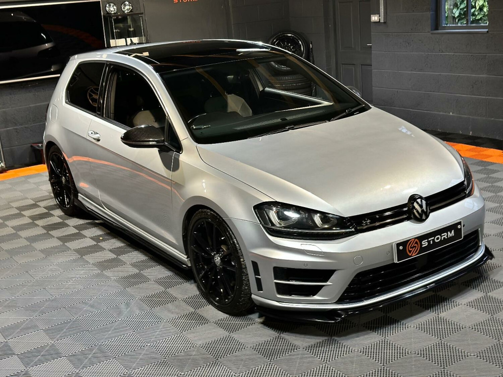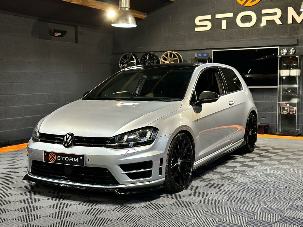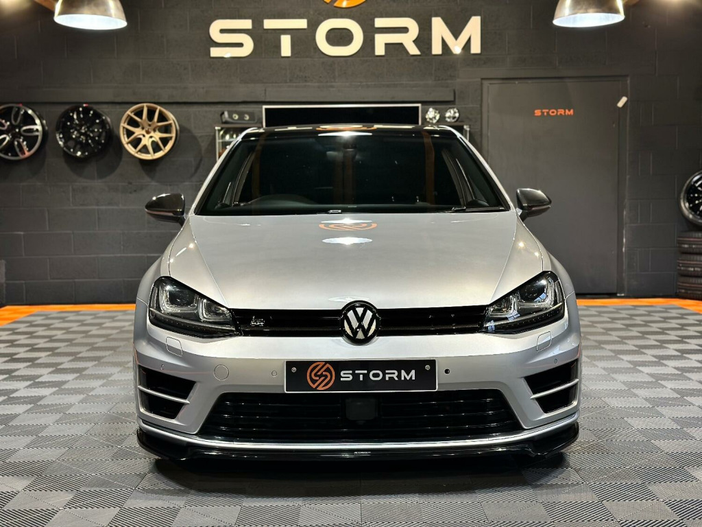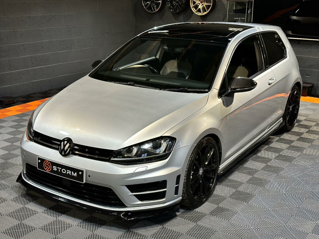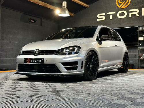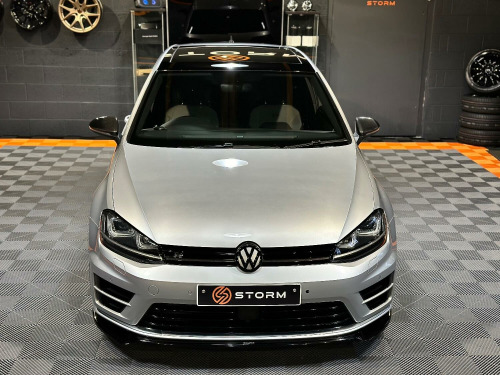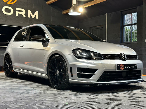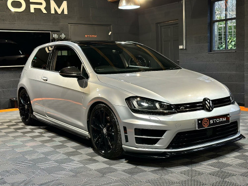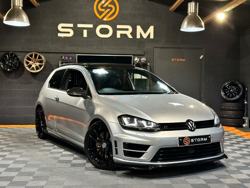 At Storm we are proud to be able to offer this absolutely stunning example of the Golf R. Finished in the very best colour of Bright Silver contrasted by the freshly refurbished 19 Pretoria Gloss Black Alloys and Storm design bodykit including side splitters, front splitter, rear spoiler and full de-chrome.This immaculate example really does turn heads. Supplied with a full service History and a clean MOT. Options include the rare Panoramic Glass Roof, Alcantara two tone seats, Newly refurbished Pretoria Alloys, Upgrade APPLE CARPLAY, Factory Carbon WinG Mirrors, Window tints to rear, Adaptive Cruise Control, Winter Pack, Heated Seats, Front and Rear Parking Sensors, Exhaust Res Delete. At Storm we can offer full finance facilities and would happily look at your part The vehicle specification displayed may not be the exact vehicle, please contact us or view vehicle to confirm the precise specification.