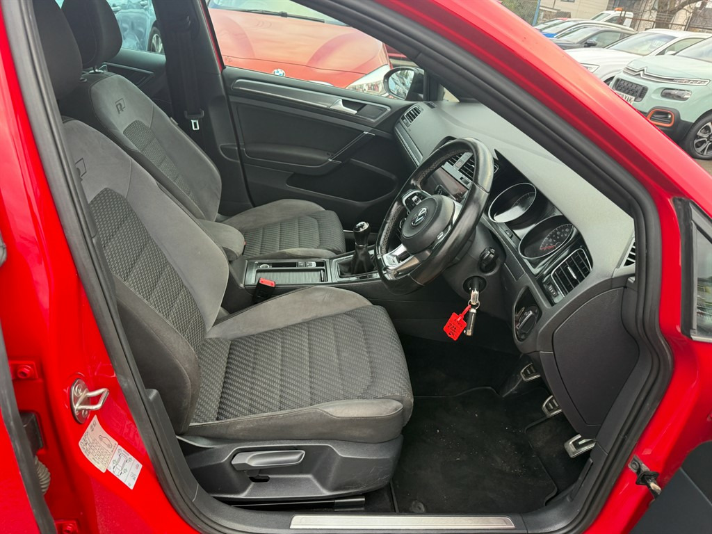 Volkswagen Golf 2.0 TDi R-Line in bright red. An absolutely gorgeous example here, in superb condition both inside and out, drives as good as it looks too. This 2017 model is powered by a fuel-efficient 2.0L diesel engine, ensuring you enjoy both performance and great fuel economy with a fuel consumption of to 76mpg. Its striking red colour adds a vibrant touch to its sleek design, making it a standout choice for any driver. Great spec too including Bluetooth Hands Free, Bluetooth Audio Streaming, DAB Radio, Cruise Control, Front & Rear Parking Sensors, A/C, Alloy Wheels etc. Don’t miss out on this incredible opportunity to own a Volkswagen Golf that truly has it all. Contact us to book a test drive today or call 02920885149. 12v Socket,Adjustable Steering Wheel,Air Conditioning,Alarm,Alloy Wheels,Anti Lock Brakes,Auto On Headlights,Aux Input,Bluetooth Audio Streaming,Bluetooth Telephone Hands Free,CD Radio,Central Locking,Cloth Upholstery,Cruise Control,DAB Radio,Cupholders,Driver Airbag,Electric & Heated Door Mirrors,Front & Rear Electric Windows,Front Fog Lights,Fuel Computer,Front Parking Sensor,Height Adjustable Drivers Seat,Immobiliser,ISOFIX,Passenger Airbag,Power Assisted Steering,Remote Central Locking,Split Folding Rear Seats,Traction Control,Trip Computer,Tyre Pressure Monitor,USB