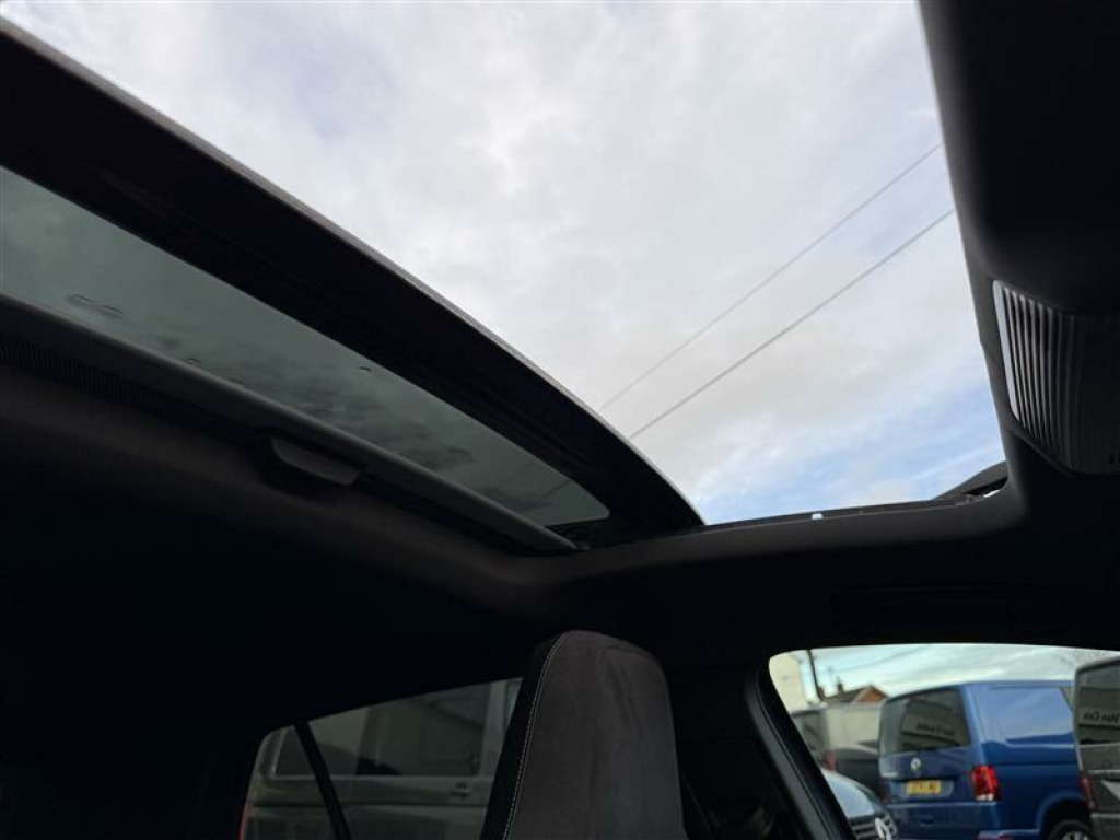 Moving inside, you'll find the interior to be fitted with sporty cloth seating. The rear seating area features a folding armrest with cupholders, vent controls and USB ports. Occupants can enjoy the openable panoramic sunroof. The cabin features a pair of sports seats with manual adjustment, wireless smartphone charger and USB ports, various storage compartments, multifunction steering wheel and touchscreen display. From this display you can access the climate controls alongside features such as navigation, FM/DAB radio, bluetooth connectivity for hands-free phone use and media streaming, and Apple Carplay/AndroidAuto.