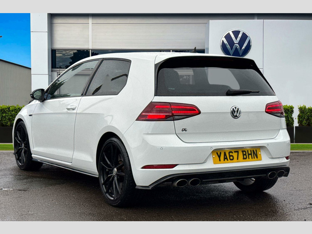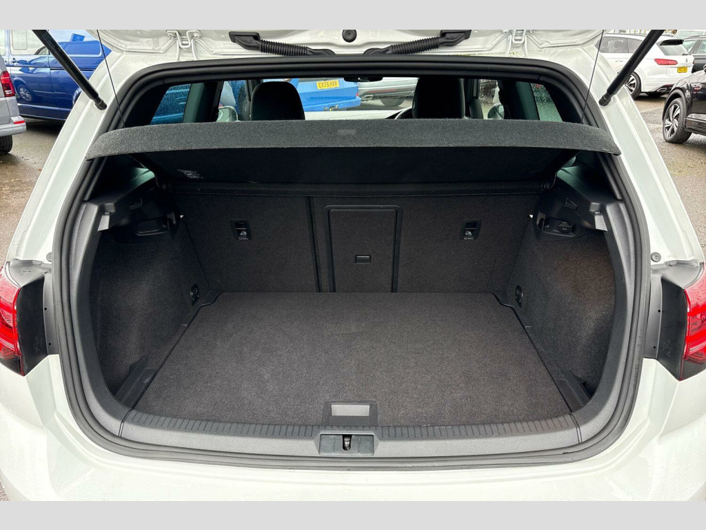 19in Alloy Wheels - Pretoria - Black, Gloss black door mirrors, 19" Pretoria black Alloy wheels, Solid - Pure white, Race cloth - Titan black, Electric front windows, Heated rear windscreen, Rain sensor, Rear windscreen washer and wiper with interval delay, Anti-tramp function, Lowered sports suspension, Black rear diffuser, Body colour door handles, Body colour rear roof spoiler, Body colour sports bumpers, Honeycomb radiator grille - black, 3D-LED-SBBR with sweeping indicator, Automatic coming/leaving home lighting function, Automatic headlights, LED daytime running lights, LED headlights with dynamic curve lighting, LED rear lights, ABS, Automatic post collision braking, Black brake calipers, Electronic parking brake with auto hold, ESP with EDL + ASR, Adaptive Cruise Control with pedestrian detection and speed limiter, Driver alert system, Driver profile selection, Front assistant collision mitigation, Progressive power assisted steering, Ultrasonic front and rear optical and audible parking sensors, Auto dimming rear view mirror, Electrically adjustable and heated door mirrors, 3 point height adj front seatbelts + pretensioners, 3 rear 3 point seatbelts, Child locks on rear doors, Driver/Front Passenger airbags, Driver/Passenger whiplash optimised head restraints, Drivers knee airbag, Front and rear curtain airbags, Front passenger airbag deactivation, Front side airbags, Pre crash system, Tyre pressure monitor, Front + rear carpet mats, Air conditioning - 2 zone electronic climate control, Dust/pollen filter, 12V socket in luggage compartment, 3 spoke steering wheel, Bag hook in luggage compartment, Black headlining, Boot lashing points, Chrome pedals, Cooled glovebox, Cover for storage compartment in centre, Front centre armrest with storage box and rear air vents, Gearshift paddles, Grab handles, Height/reach adjust steering wheel, Illuminated door sills, Load through provision with rear centre armrest and cupholders x2, Luggage compartment cover, Multifunction leather steering wheel with grey stitching leather trimmed gear knob including paddle shift, Overhead storage box, Storage box in luggage compartment, Storage compartments in doors, Variable boot floor, height adjustable and removable, Courtesy light delay, Luggage compartment lighting, Limited slip differential, Illuminated vanity mirrors, Sun visors, App-Connect, Bluetooth hands free telephone connection, CD/MP3/WMA, USB and SD card reader, aux-in, Composition media system, DAB Digital radio, 'Lights On' Reminder warning buzzer, 8" touch screen, Brake pad wear indicator warning light, Exterior temperature gauge, Instrument cluster in white, Multifunction computer, Rev counter, Trip and service interval display, Warning buzzer and light for front seatbelts unfastened, Carbon touch decorative inserts, Chrome-plated light switch surround, Piano black centre console, 3 rear headrests, 60/40 split folding rear seat, Easy entry slide seats (access to rear seats), Front passenger seat height adjust, Front seat back storage pockets, Height adjustable driver's seat, Isofix preparation for 2 rear child seats, Ambient lighting pack - Golf, Mirror pack - Golf, Alarm with interior protection, Electronic engine immobiliser, Remote central locking with 2 remote folding keys, Space saver spare wheel