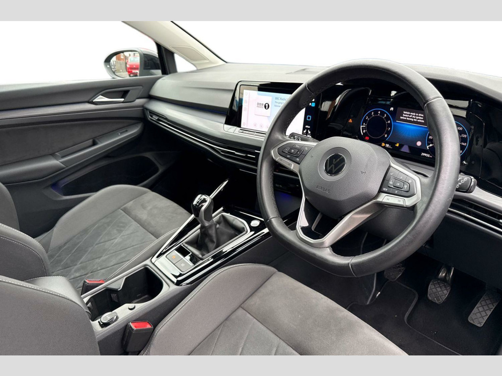 Winter Pack - Heated Steering Wheel, Winter pack including heated steering wheel - Golf, Metallic - Deep black pearl, Art velours cloth - Soul black- leatherette armrests, artvelours door inserts + front sports comfort seats with Microfibre sides of bolsters, Front and rear electric windows, Heat insulating glass windscreen, Heated rear windscreen, Rain sensor, Rear windscreen washer and wiper with interval delay, Ambient lighting, exterior illuminated styling elements at the sides, Body colour bumpers, Body colour door handles, Body colour rear roof spoiler, Illuminated front grille, Rear side wing doors, Automatic headlamp activation with Coming home and Leaving home feature, Automatic headlights, Dynamic headlight range control, Front fog lights with static cornering function and poor weather lighting, High level 3rd brake light, Highway light, LED daytime running lights, LED License plate illumination, LED Plus headlights with integrated cornering and poor weather light, Light assist - High beam assist ( Automatic sensing for switching between dipped and main beam), Rear fog light on one side and reversing lights on both sides, Rear lights incorporating LED technology, Welcome light, ABS, Electronic parking brake with auto hold, ESC (Electronic Stability Control), Front disc brakes, Rear disc brakes, Adaptive cruise control (ACC) with speed limiter and front assist (reacting to vehicles pedestrians and cyclists), Driver alert system, Dynamic road sign display, Lane assist, Lane change assist with Rear traffic alert, Power assisted speed sensitive steering, Auto dimming rear view mirror, Body colour door mirrors with integrated indicators, Remote electrically heated, adjustable and foldable door mirrors, including door mirror puddle lights and reverse activated kerb-view adjustment on pa, 3 point height adj front seatbelts + pretensioners, 3 rear three point seatbelts, Child locks on rear doors, Driver and front passenger airbag with front passenger airbag deactivation, Drivers and front passengers safety optimised head restraints, Exit warning, Extended pedestrian protection measures, Front centre airbag, Front side airbags with curtain airbags, Two tone horn, Tyre pressure monitoring system, Front + rear carpet mats, 3 zone climate with controls in the rear, Dust/pollen filter, 12V socket in front centre console, 12V socket in luggage compartment, Art Velour cloth upholstery with leatherette armrests, artvelours door inserts + front sports comfort seats with Microfibre sides of bolsters, Front centre armrest with storage compartment, Front cupholders x 2, Glovebox, Height and reach adjustable steering wheel, Removable luggage compartment cover, Storm grey roof lining, Three spoke leather trimmed multifunction steering wheel with gear knob, Woven fabric storage compartments in front and rear doors, Ambient lighting - Customisable 30 colour ambient lighting, Front and rear foot well interior light, Front reading lights x 2 incorporating LED technology, Luggage compartment lighting, XDS electronic differential lock for improved traction and handling, Drivers and front passengers sun visors with vanity mirrors, Car2X communication, Mobile phone interface with wireless inductive charging function, USB-C ports in the front and rear centre console with increased charging performance, Wireless app connect, Premium USB cable in choice of either Apple or Android smartphone compatibility, Start/Stop function, Digital cockpit pro - 10.25" high resolution TFT dash display screen with customizable menus and information, eCall - Emergency call service for SOS calls to emergency response, Speedo, rev counter, electronic odometer, trip, service interval display, exterior temperature and fuel gauge, Travel assist including side assist with electrically foldable door mirrors, Warning buzzer and light for front seatbelts unfastened, Petrol Particulate Filter, High gloss black centre console, Luxury brown wood decorative inserts, Soul dashboard, 3 rear head restraints, 3 seat be