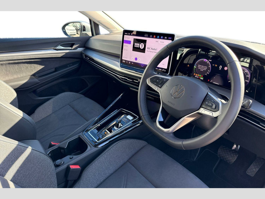 For more information regarding our flexible finance options or a personalised video, contact our sales team now. This car comes fully prepared to the Volkswagen Approved Used programme, with over £2,000 of additional customer benefits including minimum 12 months Warranty or remaining Manufacturers Warranty whichever is greater, 1 year Roadside Assistance, 142 Multi-Point Check and 30 Day or 1,000 Mile Exchange Agreement. Part Exchange & Finance Available subject to T&C's. Metallic - Oyster silver, Art velours cloth - Soul black, Front and rear electric windows, Heat insulating windshield made of laminated glass, Rear windscreen washer and wiper with interval delay, Body colour bumpers, Body colour door handles, Chrome trimmed front air intake surrounds, Chrome trims on the side window bottom, Rear exhaust tailpipe, Rear side wing doors, 3rd brake light, Automatic headlamp activation with Coming home and Leaving home feature, LED separate daytime running light, Rear fog light on one side and reversing lights on both sides, Welcome light with surround lighting, ABS, Autonomous emergency braking front assist with pedestrian and cyclist monitoring, Electronic parking brake with auto hold, ESC (Electronic Stability Control), Hill start assist, Rear disc brakes, Volkswagen roadside assistance, Activated carbon canister, Adaptive cruise control (ACC), Advanced driver attention and drowsiness monitor, Dynamic road sign display, Multifunction front facing camera for distance control, Oncoming vehicle braking when turning including swerve support, Preparation for light assist system, Side assist blind spot lane change system, rear traffic alert and exit warning system, Speed limiter, Body colour door mirrors, Exterior mirrors convex on the left and aspherical on the right, Remote electrically foldable door mirrors, puddle lights and reverse activated passenger's door mirror, 3 point height adj front seatbelts + pretensioners, 3 rear three point seatbelts, Child locks on rear doors, Driver and front passenger airbag with front passenger airbag deactivation, Extended pedestrian protection measures, Two tone horn, Tyre pressure loss indicator, Front + rear black carpet mats, Air care climatronic 3 Zone automatic climate control with rear air conditioning control panel, 12V socket in front centre console, 12V socket in luggage compartment, Chrome plated radiator grille inserts, air vent surrounds and light switch surrounds, Front centre armrest, Plastic gear knob, Rear cupholder and loadthough, Soul black instrument panel, Standard pedal cluster, Storm grey roof lining, Ambient lighting with 30 colour including LED light unit in front footwell with selectable light colour, Luggage compartment lighting, XDS electronic differential lock for improved traction and handling, Sun visors with illuminated vanity mirrors, E-Sim card for online connectivity, eCall emergency call system, We connect preparation, Wireless app connect, 2 USB C ports in front, 2 USB charging sockets on the centre console in the rear charging capacity upto 45W, 6 Speakers - 4 in front and 2 in rear with central speaker, Digital radio reception (DAB), Diversity antenna for FM reception, Gaming platform via car app, Infotainment system with 12.9" display, Mobile phone interface with inductive charging feature, Multi-color Digital cockpit pro, selection of different info profile possible, Navigation system, Speedo, rev counter, electronic odometer, trip, service interval display, exterior temperature and fuel gauge, Traffic jam assist, Voice enhancer and voice control, Warning signal and warning light for front and rear seatbelts not fastened, We connect plus preparation, Hybrid propulsion system, Start-stop system with battery regeneration (recuperation - energy recovery during braking), New brushed dark metal decorative inserts for dashboard and front door panels, 3 rear head restraints, 3 seat bench in 2nd row, ISOFIX anchors for child seats on outer rear bench seats and on front passanger seat compatible for i-Size, Single front passenger seat, Split folding backrest with centre armrest and unsplit rear seat bench, Driver assistance pack - Golf Estate/Hatchback Auto, Anti theft wheel bolts, Preparation for alcohol interlock, Charging cable Mode 2 Type 2 (10A), Charging cable mode 3, type 2 32 A, Tool kit for tyre mobility set, Tyre mobility kit Includes 12V compressor and tyre sealant