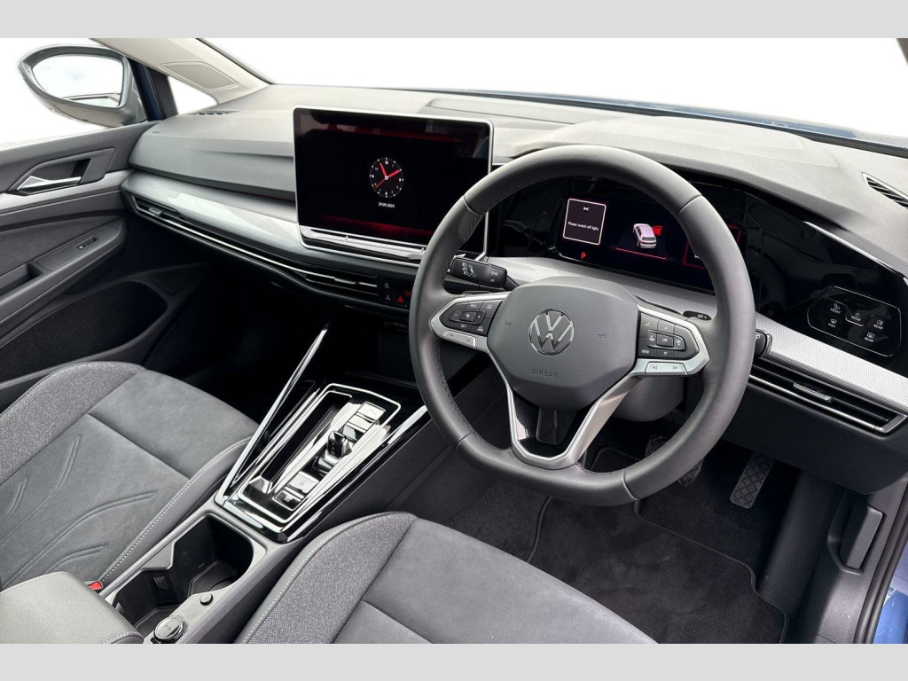 For more information regarding our flexible finance options or a personalised video, contact our sales team now. This car comes fully prepared to the Volkswagen Approved Used programme, with over £2,000 of additional customer benefits including minimum 12 months Warranty or remaining Manufacturers Warranty whichever is greater, 1 year Roadside Assistance, 142 Multi-Point Check and 30 Day or 1,000 Mile Exchange Agreement. Part Exchange & Finance Available subject to T&C's. Tilting and Sliding Panoramic Sunroof, Area View and Rear-View Camera, Technology Package Park and Comfort, Area view including rear view camera with front and rear view camera system and two side cameras, Tilting and sliding panoramic sunroof with 2X front and 2X rear LED reading lights, Technology park and comfort pro package - Golf Hatchback, Metallic - Anemone blue, Art velours cloth - Soul black, Front and rear electric windows, Heat insulating windshield made of laminated glass, Rear windscreen washer and wiper with interval delay, Body colour bumpers, Body colour door handles, Chrome trimmed front air intake surrounds, Chrome trims on the side window bottom, Rear exhaust tailpipe, Rear side wing doors, 3rd brake light, Automatic headlamp activation with Coming home and Leaving home feature, LED separate daytime running light, Rear fog light on one side and reversing lights on both sides, Welcome light with surround lighting, ABS, Autonomous emergency braking front assist with pedestrian and cyclist monitoring, Electronic parking brake with auto hold, ESC (Electronic Stability Control), Hill start assist, Rear disc brakes, Volkswagen roadside assistance, Activated carbon canister, Adaptive cruise control (ACC), Advanced driver attention and drowsiness monitor, Dynamic road sign display, Multifunction front facing camera for distance control, Oncoming vehicle braking when turning including swerve support, Preparation for light assist system, Side assist blind spot lane change system, rear traffic alert and exit warning system, Speed limiter, Body colour door mirrors, Exterior mirrors convex on the left and aspherical on the right, Remote electrically foldable door mirrors, puddle lights and reverse activated passenger's door mirror, 3 point height adj front seatbelts + pretensioners, 3 rear three point seatbelts, Child locks on rear doors, Driver and front passenger airbag with front passenger airbag deactivation, Extended pedestrian protection measures, Two tone horn, Tyre pressure loss indicator, Front + rear black carpet mats, Air care climatronic 3 Zone automatic climate control with rear air conditioning control panel, 12V socket in front centre console, 12V socket in luggage compartment, Chrome plated radiator grille inserts, air vent surrounds and light switch surrounds, Front centre armrest, Plastic gear knob, Rear cupholder and loadthough, Soul black instrument panel, Standard pedal cluster, Storm grey roof lining, Ambient lighting with 30 colour including LED light unit in front footwell with selectable light colour, Luggage compartment lighting, XDS electronic differential lock for improved traction and handling, Sun visors with illuminated vanity mirrors, E-Sim card for online connectivity, eCall emergency call system, We connect preparation, Wireless app connect, 2 USB C ports in front, 2 USB charging sockets on the centre console in the rear charging capacity upto 45W, 6 Speakers - 4 in front and 2 in rear with central speaker, Digital radio reception (DAB), Diversity antenna for FM reception, Gaming platform via car app, Infotainment system with 12.9" display, Mobile phone interface with inductive charging feature, Multi-color Digital cockpit pro, selection of different info profile possible, Navigation system, Speedo, rev counter, electronic odometer, trip, service interval display, exterior temperature and fuel gauge, Traffic jam assist, Voice enhancer and voice control, Warning signal and warning light for front and rear seatbelts not fastened, We connect plus preparation, Hybrid propulsion system, Start-stop system with battery regeneration (recuperation - energy recovery during braking), New brushed dark metal decorative inserts for dashboard and front door panels, 3 rear head restraints, 3 seat bench in 2nd row, ISOFIX anchors for child seats on outer rear bench seats and on front passanger seat compatible for i-Size, Single front passenger seat, Split folding backrest with centre armrest and unsplit rear seat bench, Driver assistance pack - Golf Estate/Hatchback Auto, Anti theft wheel bolts, Preparation fo